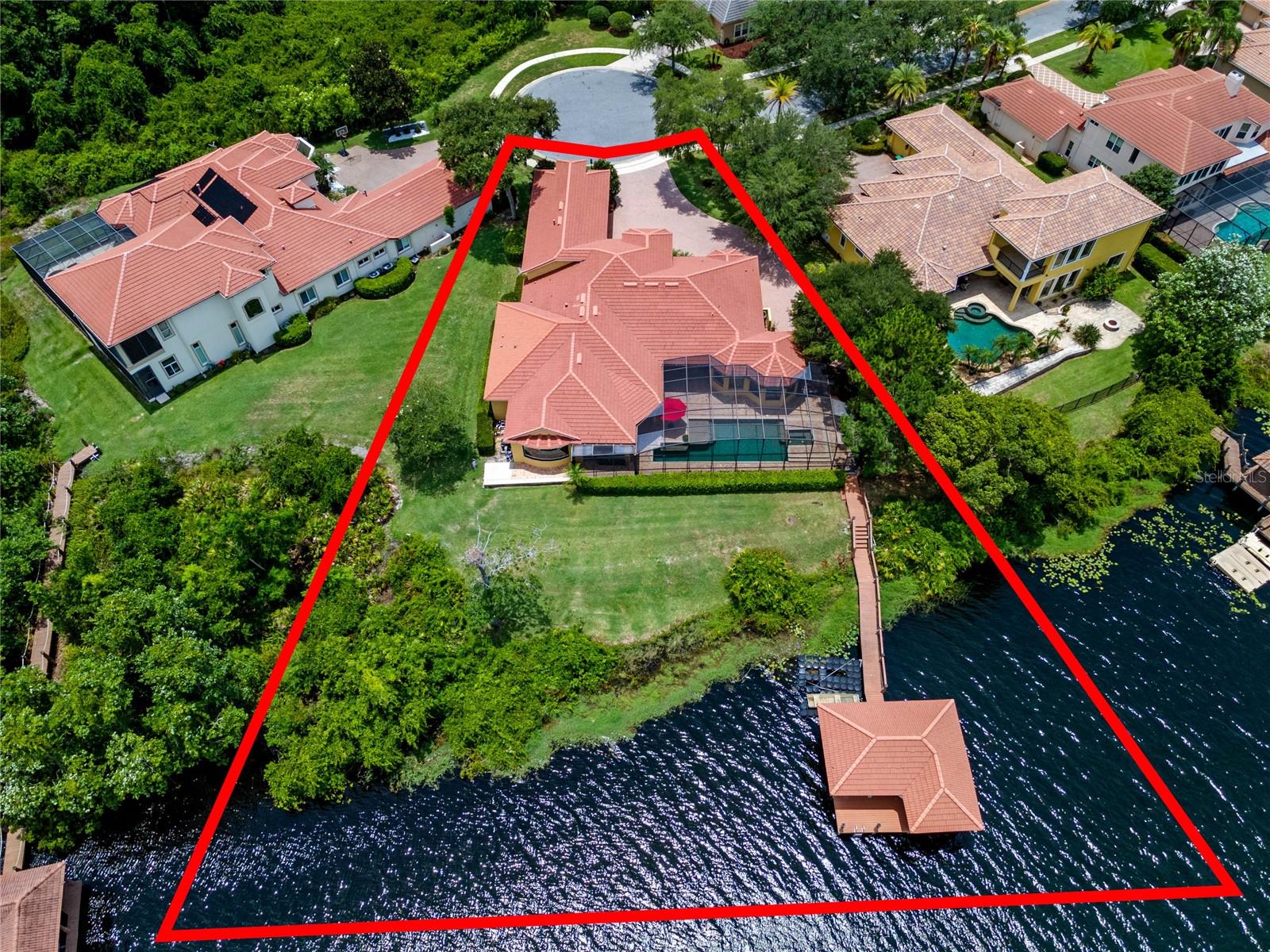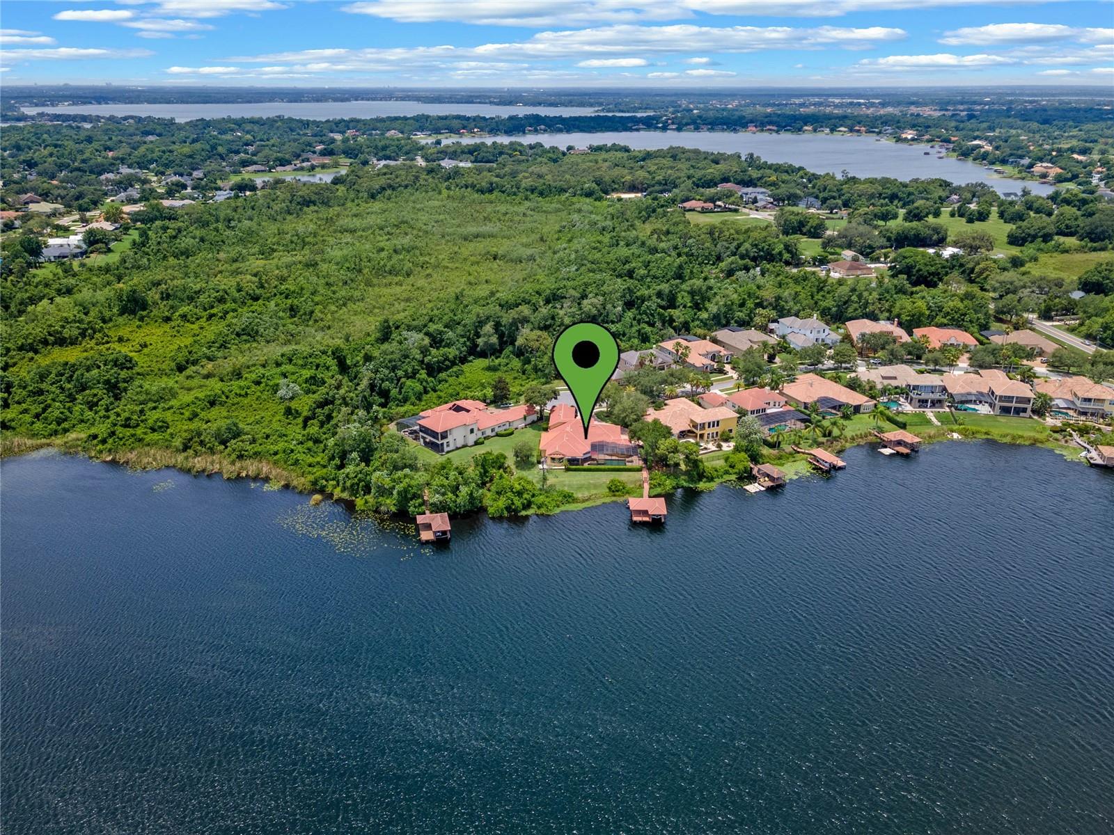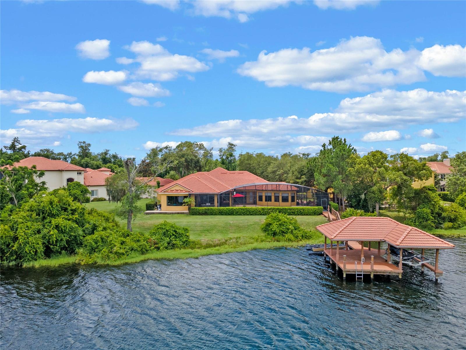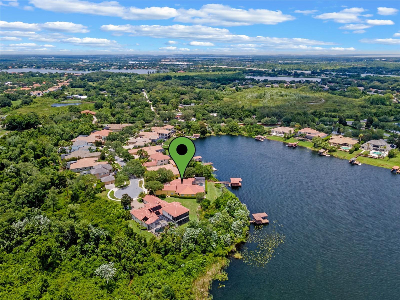 Luxurious Lakefront Oasis with Private Pool and Spa in Exclusive Windermere Community. Nestled within the prestigious gates of the Reserve at Belmere, this masterfully crafted Arthur Rutenberg estate graces the shimmering shores of Lake Whitney. Indulge in breathtaking sunsets from your own private retreat, complete with direct lake access, a private boat dock, and an expansive pool and spa designed for unparalleled relaxation, perfect for entertaining or serene Florida living, this home redefines sophistication and leisure in the heart of Windermere. As you approach this custom-designed home, you are welcomed by tropical landscaping, a durable and stylish tile roof, an expansive driveway, and a prime cul-de-sac location, offering both privacy and curb appeal. Step through the stately double front doors and into a grand marble foyer, where rich dark wood flooring and a stunning panorama of Lake Whitney immediately captivate your senses. Beyond the front office, the formal dining room, and the living room, an expansive and beautifully designed family living area awaits, seamlessly blending comfort with luxury. The gourmet kitchen is a masterpiece of design and functionality, featuring 42-inch custom cabinetry, gleaming granite countertops, and a suite of premium GE Monogram Stainless Steel Appliances, including a double oven, warming drawer, and a Wolf gas cooktop complemented by a Sub-Zero refrigerator. The backsplash adds a touch of artistry, while a wine refrigerator, expansive island with built-in storage, and elegant pendant lighting elevate the space. Adjacent, is a breakfast nook that offers unobstructed lake views. The family room showcases a blend of functionality and style, with custom-built cabinetry, tray ceiling, and 2 full walls of glass sliders that frame breathtaking views of the lake and provide seamless access to the outdoor living area. The screened lanai offers a spacious pool and spa, complemented by a summer kitchen featuring a natural gas grill, sink, and a wood-paneled ceiling—ideal for both grilling and relaxation. A pavered pathway leads to the private covered boat dock, which includes a tile roof and two jet ski pads, providing easy access to the water. Back inside, you’ll discover a game room/flex space with rich dark wood beam ceilings, and an expansive picture window that offers stunning lake views. The owner’s suite features a cozy sitting area, tray ceilings, and access to an adjoining private exercise room/office. The suite’s luxurious en-suite bathroom includes an island, garden tub, dbl vanity, and two spacious walk-in closets with custom shelving. Two of the secondary bedrooms are thoughtfully designed with separate adjacent rooms, perfect for creating personal spaces such as desks, reading areas, or vanity. Upstairs, you'll find a bonus room complete with a full bathroom, providing a flexible space for various uses. Additional highlights include crown molding, exquisite custom woodwork throughout, a central vacuum system, resurfaced and sealed pavers, and 3 A/C units (2 recently replaced units).The Reserve at Belmere offers guard gated access, a gym, tennis/basketball/volleyball courts, playground, fishing pier - plus A-rated schools. In addition to its picturesque topography, Lake Whitney offers stable water levels throughout both heavy rain and dry seasons with a depth ranging from 30 feet in the middle to 4 – 6 feet on its edges. Must see to appreciate the attention to detail on this custom home!