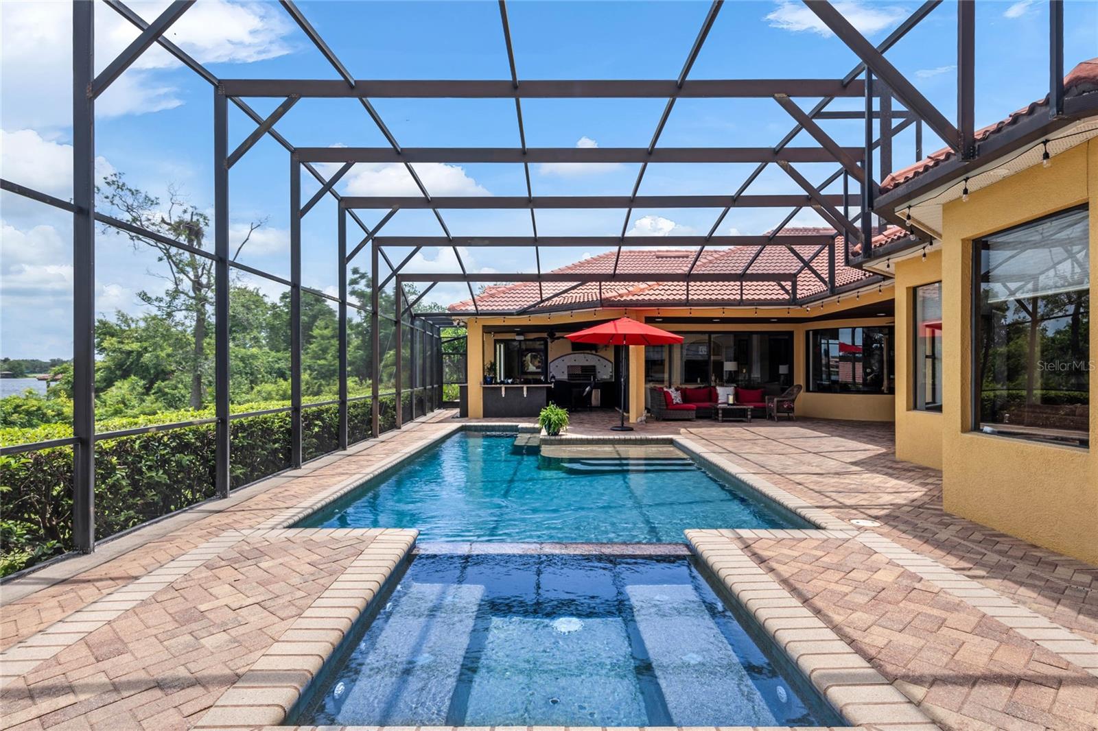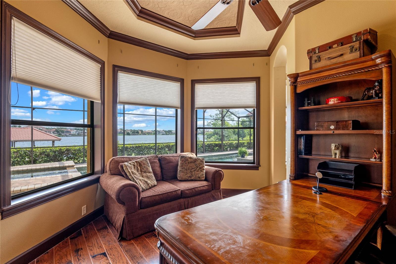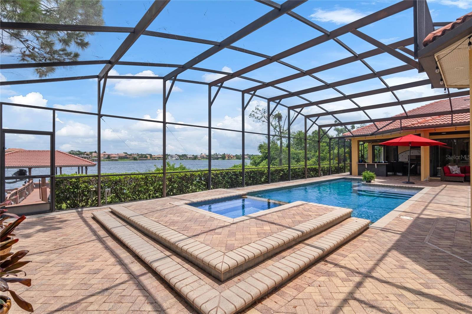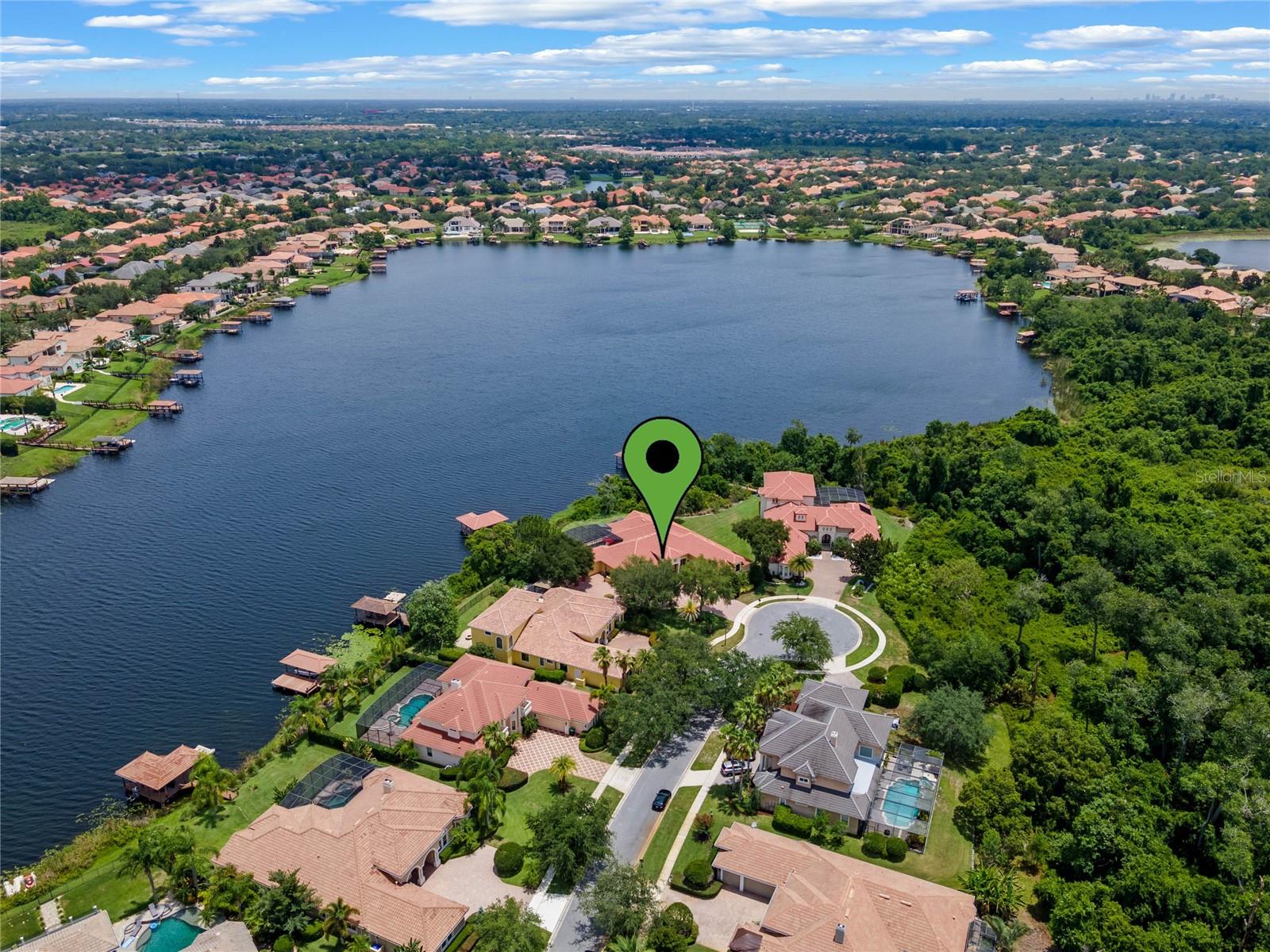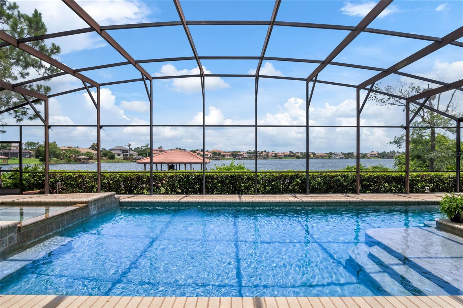 Luxurious Lakefront Oasis with Private Pool and Spa in Exclusive Windermere Community. Nestled within the prestigious gates of the Reserve at Belmere, this masterfully crafted Arthur Rutenberg estate graces the shimmering shores of Lake Whitney. Indulge in breathtaking sunsets from your own private retreat, complete with direct lake access, a private boat dock, and an expansive pool and spa designed for unparalleled relaxation, perfect for entertaining or serene Florida living, this home redefines sophistication and leisure in the heart of Windermere. As you approach this custom-designed home, you are welcomed by tropical landscaping, a durable and stylish tile roof, an expansive driveway, and a prime cul-de-sac location, offering both privacy and curb appeal. Step through the stately double front doors and into a grand marble foyer, where rich dark wood flooring and a stunning panorama of Lake Whitney immediately captivate your senses. Beyond the front office, the formal dining room, and the living room, an expansive and beautifully designed family living area awaits, seamlessly blending comfort with luxury. The gourmet kitchen is a masterpiece of design and functionality, featuring 42-inch custom cabinetry, gleaming granite countertops, and a suite of premium GE Monogram Stainless Steel Appliances, including a double oven, warming drawer, and a Wolf gas cooktop complemented by a Sub-Zero refrigerator. The backsplash adds a touch of artistry, while a wine refrigerator, expansive island with built-in storage, and elegant pendant lighting elevate the space. Adjacent, is a breakfast nook that offers unobstructed lake views. The family room showcases a blend of functionality and style, with custom-built cabinetry, tray ceiling, and 2 full walls of glass sliders that frame breathtaking views of the lake and provide seamless access to the outdoor living area. The screened lanai offers a spacious pool and spa, complemented by a summer kitchen featuring a natural gas grill, sink, and a wood-paneled ceiling—ideal for both grilling and relaxation. A pavered pathway leads to the private covered boat dock, which includes a tile roof and two jet ski pads, providing easy access to the water. Back inside, you’ll discover a game room/flex space with rich dark wood beam ceilings, and an expansive picture window that offers stunning lake views. The owner’s suite features a cozy sitting area, tray ceilings, and access to an adjoining private exercise room/office. The suite’s luxurious en-suite bathroom includes an island, garden tub, dbl vanity, and two spacious walk-in closets with custom shelving. Two of the secondary bedrooms are thoughtfully designed with separate adjacent rooms, perfect for creating personal spaces such as desks, reading areas, or vanity. Upstairs, you'll find a bonus room complete with a full bathroom, providing a flexible space for various uses. Additional highlights include crown molding, exquisite custom woodwork throughout, a central vacuum system, resurfaced and sealed pavers, and 3 A/C units (2 recently replaced units).The Reserve at Belmere offers guard gated access, a gym, tennis/basketball/volleyball courts, playground, fishing pier - plus A-rated schools. In addition to its picturesque topography, Lake Whitney offers stable water levels throughout both heavy rain and dry seasons with a depth ranging from 30 feet in the middle to 4 – 6 feet on its edges. Must see to appreciate the attention to detail on this custom home!
