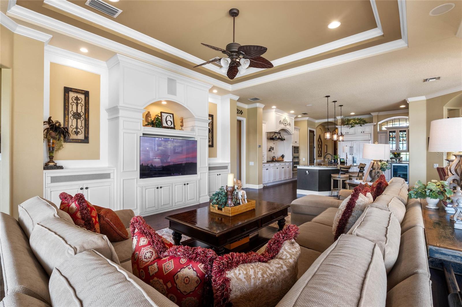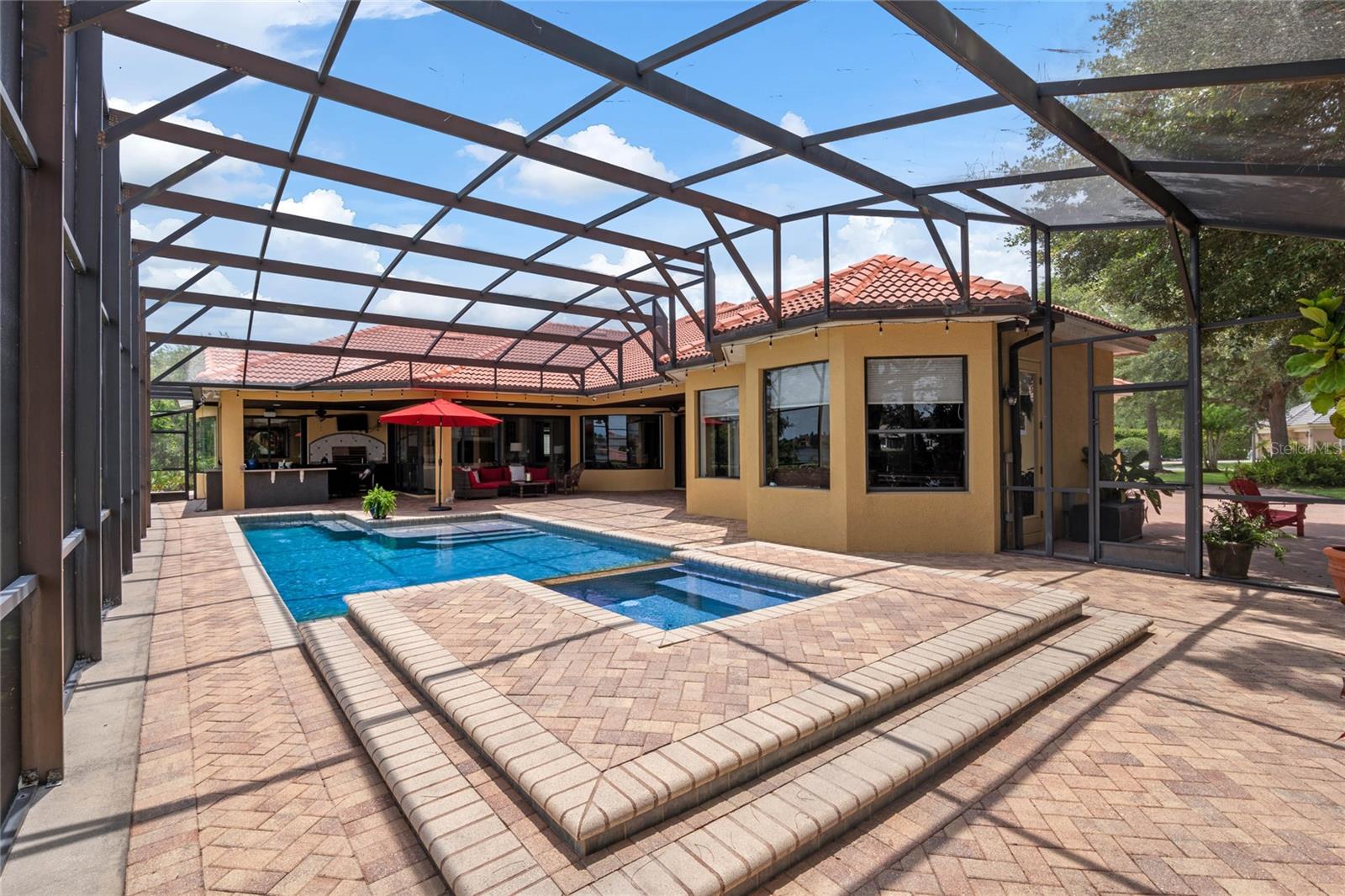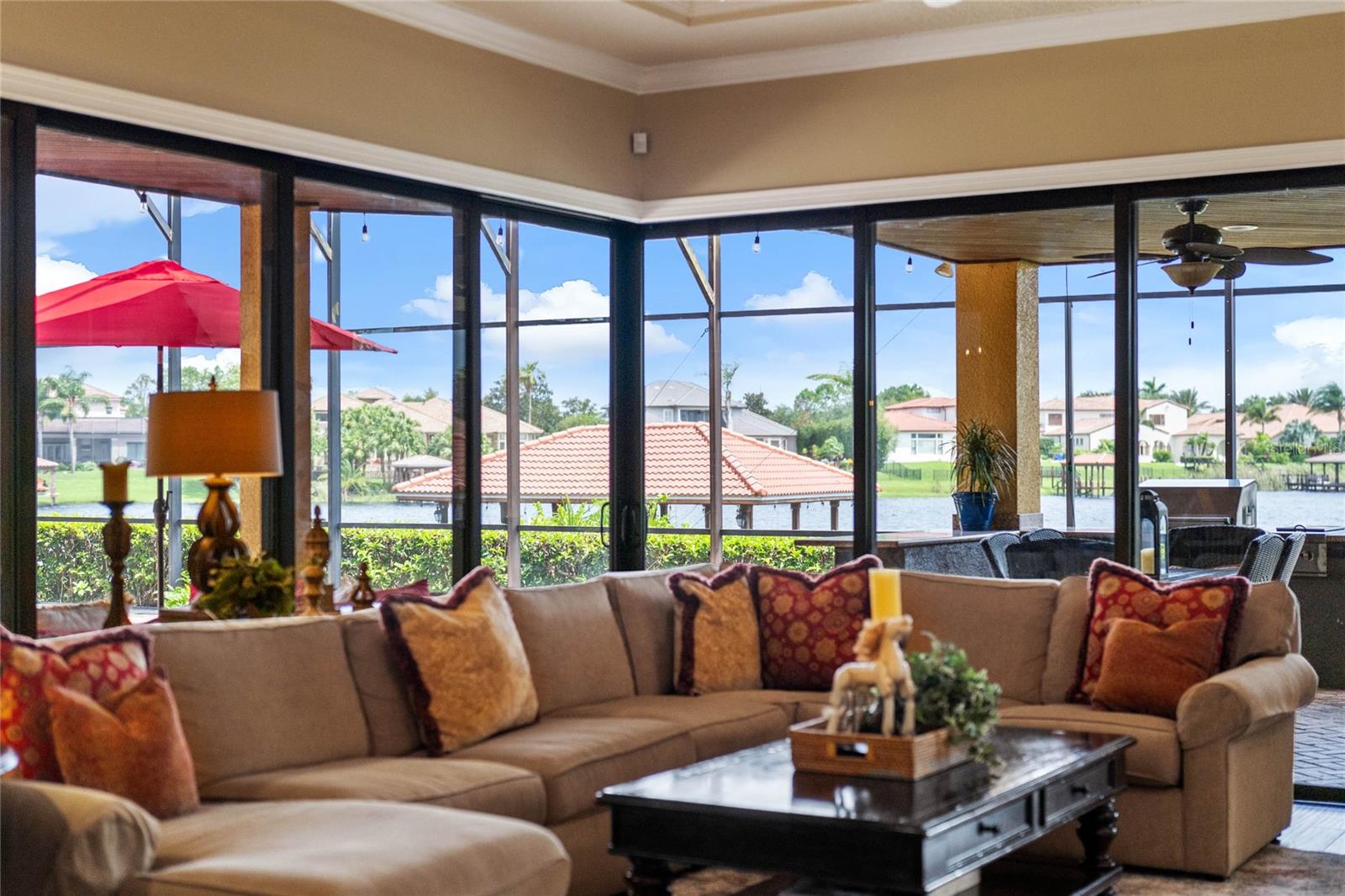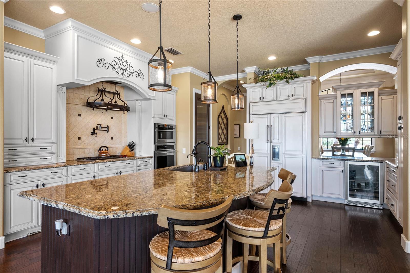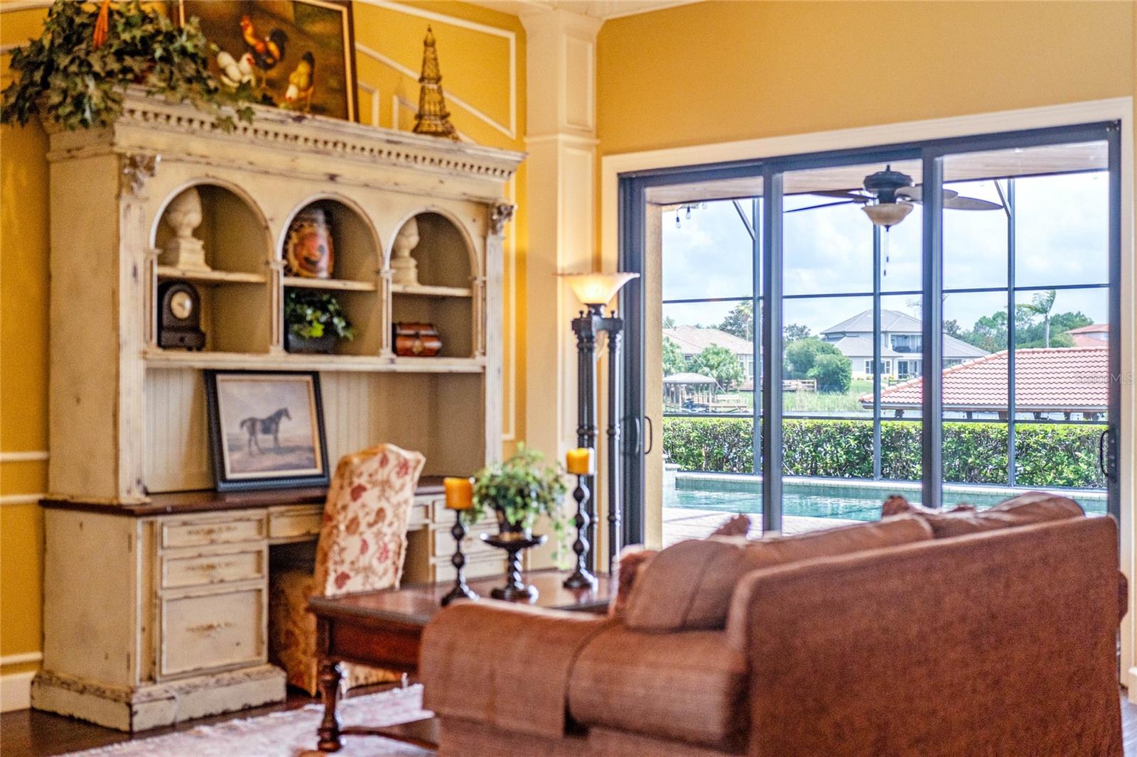 Luxurious Lakefront Oasis with Private Pool and Spa in Exclusive Windermere Community. Nestled within the prestigious gates of the Reserve at Belmere, this masterfully crafted Arthur Rutenberg estate graces the shimmering shores of Lake Whitney. Indulge in breathtaking sunsets from your own private retreat, complete with direct lake access, a private boat dock, and an expansive pool and spa designed for unparalleled relaxation, perfect for entertaining or serene Florida living, this home redefines sophistication and leisure in the heart of Windermere. As you approach this custom-designed home, you are welcomed by tropical landscaping, a durable and stylish tile roof, an expansive driveway, and a prime cul-de-sac location, offering both privacy and curb appeal. Step through the stately double front doors and into a grand marble foyer, where rich dark wood flooring and a stunning panorama of Lake Whitney immediately captivate your senses. Beyond the front office, the formal dining room, and the living room, an expansive and beautifully designed family living area awaits, seamlessly blending comfort with luxury. The gourmet kitchen is a masterpiece of design and functionality, featuring 42-inch custom cabinetry, gleaming granite countertops, and a suite of premium GE Monogram Stainless Steel Appliances, including a double oven, warming drawer, and a Wolf gas cooktop complemented by a Sub-Zero refrigerator. The backsplash adds a touch of artistry, while a wine refrigerator, expansive island with built-in storage, and elegant pendant lighting elevate the space. Adjacent, is a breakfast nook that offers unobstructed lake views. The family room showcases a blend of functionality and style, with custom-built cabinetry, tray ceiling, and 2 full walls of glass sliders that frame breathtaking views of the lake and provide seamless access to the outdoor living area. The screened lanai offers a spacious pool and spa, complemented by a summer kitchen featuring a natural gas grill, sink, and a wood-paneled ceiling—ideal for both grilling and relaxation. A pavered pathway leads to the private covered boat dock, which includes a tile roof and two jet ski pads, providing easy access to the water. Back inside, you’ll discover a game room/flex space with rich dark wood beam ceilings, and an expansive picture window that offers stunning lake views. The owner’s suite features a cozy sitting area, tray ceilings, and access to an adjoining private exercise room/office. The suite’s luxurious en-suite bathroom includes an island, garden tub, dbl vanity, and two spacious walk-in closets with custom shelving. Two of the secondary bedrooms are thoughtfully designed with separate adjacent rooms, perfect for creating personal spaces such as desks, reading areas, or vanity. Upstairs, you'll find a bonus room complete with a full bathroom, providing a flexible space for various uses. Additional highlights include crown molding, exquisite custom woodwork throughout, a central vacuum system, resurfaced and sealed pavers, and 3 A/C units (2 recently replaced units).The Reserve at Belmere offers guard gated access, a gym, tennis/basketball/volleyball courts, playground, fishing pier - plus A-rated schools. In addition to its picturesque topography, Lake Whitney offers stable water levels throughout both heavy rain and dry seasons with a depth ranging from 30 feet in the middle to 4 – 6 feet on its edges. Must see to appreciate the attention to detail on this custom home!