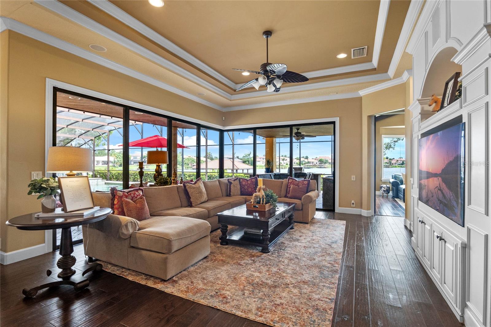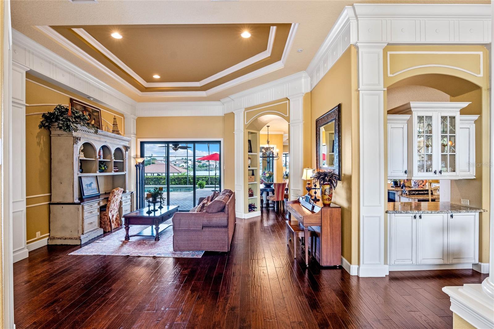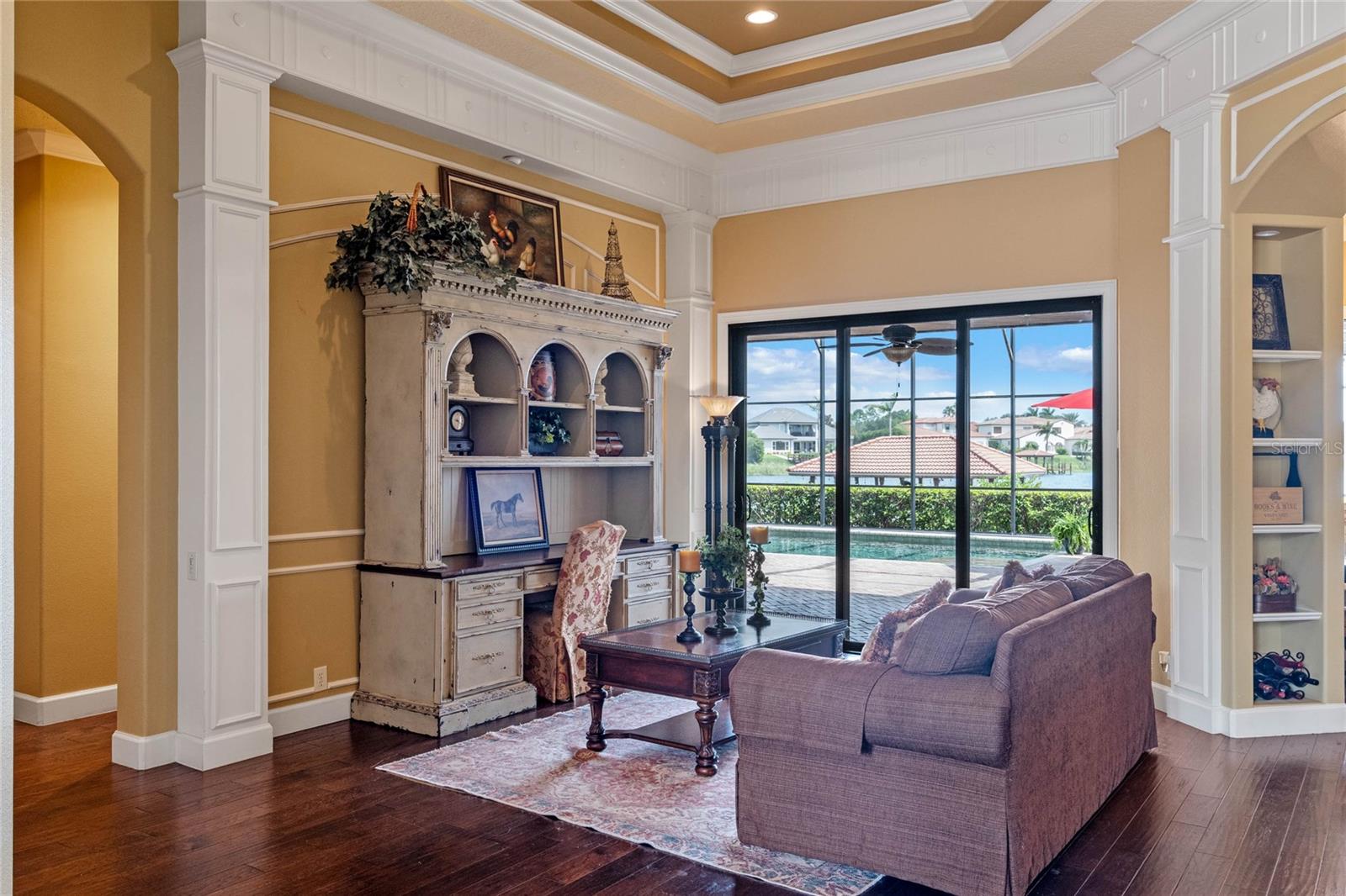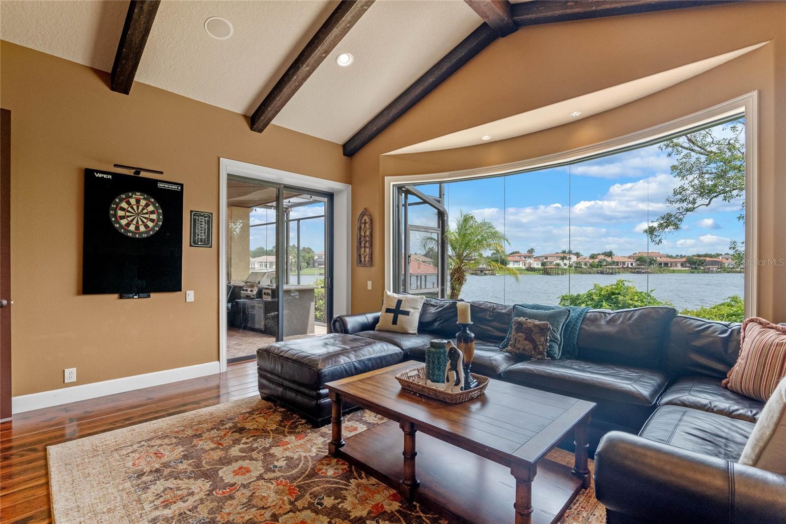 Luxurious Lakefront Oasis with Private Pool and Spa in Exclusive Windermere Community. Nestled within the prestigious gates of the Reserve at Belmere, this masterfully crafted Arthur Rutenberg estate graces the shimmering shores of Lake Whitney. Indulge in breathtaking sunsets from your own private retreat, complete with direct lake access, a private boat dock, and an expansive pool and spa designed for unparalleled relaxation, perfect for entertaining or serene Florida living, this home redefines sophistication and leisure in the heart of Windermere. As you approach this custom-designed home, you are welcomed by tropical landscaping, a durable and stylish tile roof, an expansive driveway, and a prime cul-de-sac location, offering both privacy and curb appeal. Step through the stately double front doors and into a grand marble foyer, where rich dark wood flooring and a stunning panorama of Lake Whitney immediately captivate your senses. Beyond the front office, the formal dining room, and the living room, an expansive and beautifully designed family living area awaits, seamlessly blending comfort with luxury. The gourmet kitchen is a masterpiece of design and functionality, featuring 42-inch custom cabinetry, gleaming granite countertops, and a suite of premium GE Monogram Stainless Steel Appliances, including a double oven, warming drawer, and a Wolf gas cooktop complemented by a Sub-Zero refrigerator. The backsplash adds a touch of artistry, while a wine refrigerator, expansive island with built-in storage, and elegant pendant lighting elevate the space. Adjacent, is a breakfast nook that offers unobstructed lake views. The family room showcases a blend of functionality and style, with custom-built cabinetry, tray ceiling, and 2 full walls of glass sliders that frame breathtaking views of the lake and provide seamless access to the outdoor living area. The screened lanai offers a spacious pool and spa, complemented by a summer kitchen featuring a natural gas grill, sink, and a wood-paneled ceiling—ideal for both grilling and relaxation. A pavered pathway leads to the private covered boat dock, which includes a tile roof and two jet ski pads, providing easy access to the water. Back inside, you’ll discover a game room/flex space with rich dark wood beam ceilings, and an expansive picture window that offers stunning lake views. The owner’s suite features a cozy sitting area, tray ceilings, and access to an adjoining private exercise room/office. The suite’s luxurious en-suite bathroom includes an island, garden tub, dbl vanity, and two spacious walk-in closets with custom shelving. Two of the secondary bedrooms are thoughtfully designed with separate adjacent rooms, perfect for creating personal spaces such as desks, reading areas, or vanity. Upstairs, you'll find a bonus room complete with a full bathroom, providing a flexible space for various uses. Additional highlights include crown molding, exquisite custom woodwork throughout, a central vacuum system, resurfaced and sealed pavers, and 3 A/C units (2 recently replaced units).The Reserve at Belmere offers guard gated access, a gym, tennis/basketball/volleyball courts, playground, fishing pier - plus A-rated schools. In addition to its picturesque topography, Lake Whitney offers stable water levels throughout both heavy rain and dry seasons with a depth ranging from 30 feet in the middle to 4 – 6 feet on its edges. Must see to appreciate the attention to detail on this custom home!