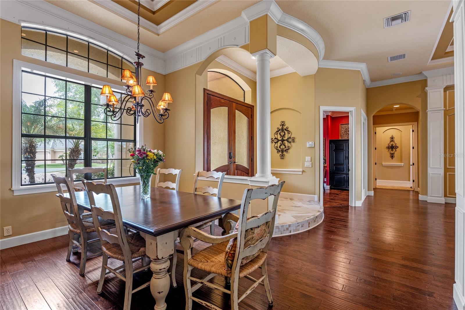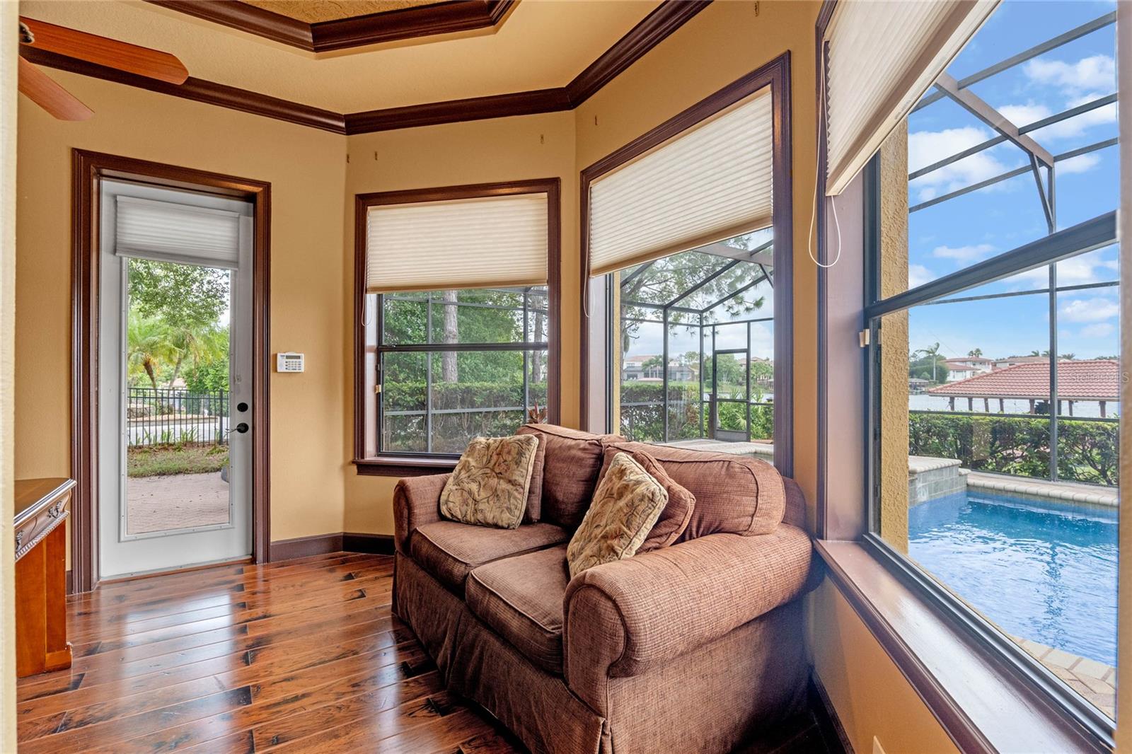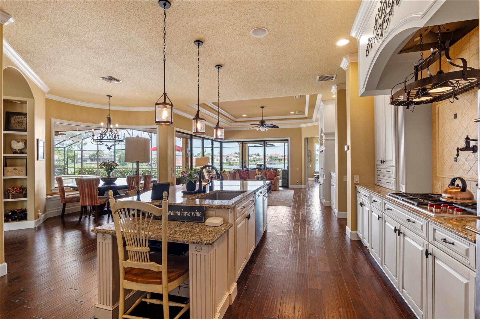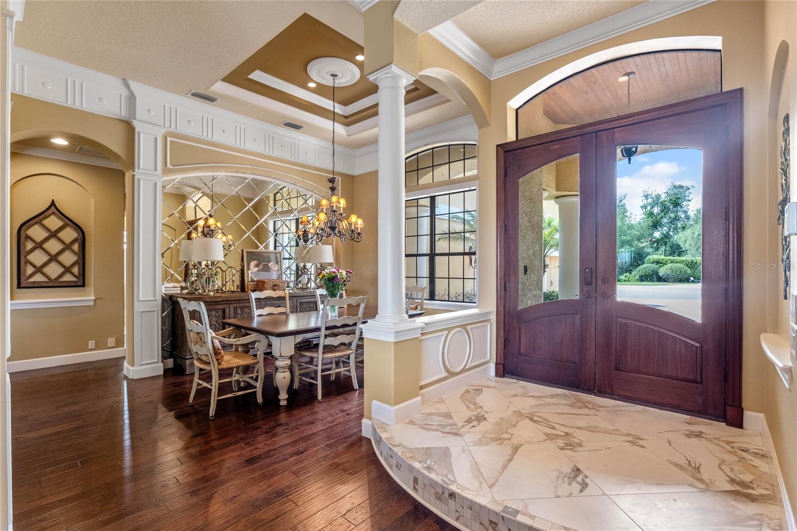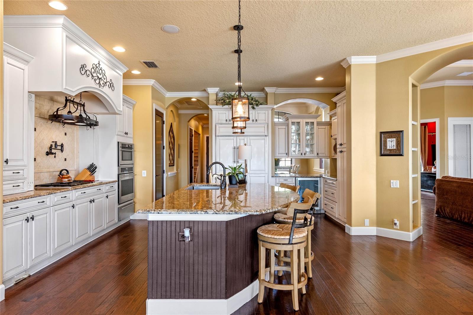 Luxurious Lakefront Oasis with Private Pool and Spa in Exclusive Windermere Community. Nestled within the prestigious gates of the Reserve at Belmere, this masterfully crafted Arthur Rutenberg estate graces the shimmering shores of Lake Whitney. Indulge in breathtaking sunsets from your own private retreat, complete with direct lake access, a private boat dock, and an expansive pool and spa designed for unparalleled relaxation, perfect for entertaining or serene Florida living, this home redefines sophistication and leisure in the heart of Windermere. As you approach this custom-designed home, you are welcomed by tropical landscaping, a durable and stylish tile roof, an expansive driveway, and a prime cul-de-sac location, offering both privacy and curb appeal. Step through the stately double front doors and into a grand marble foyer, where rich dark wood flooring and a stunning panorama of Lake Whitney immediately captivate your senses. Beyond the front office, the formal dining room, and the living room, an expansive and beautifully designed family living area awaits, seamlessly blending comfort with luxury. The gourmet kitchen is a masterpiece of design and functionality, featuring 42-inch custom cabinetry, gleaming granite countertops, and a suite of premium GE Monogram Stainless Steel Appliances, including a double oven, warming drawer, and a Wolf gas cooktop complemented by a Sub-Zero refrigerator. The backsplash adds a touch of artistry, while a wine refrigerator, expansive island with built-in storage, and elegant pendant lighting elevate the space. Adjacent, is a breakfast nook that offers unobstructed lake views. The family room showcases a blend of functionality and style, with custom-built cabinetry, tray ceiling, and 2 full walls of glass sliders that frame breathtaking views of the lake and provide seamless access to the outdoor living area. The screened lanai offers a spacious pool and spa, complemented by a summer kitchen featuring a natural gas grill, sink, and a wood-paneled ceiling—ideal for both grilling and relaxation. A pavered pathway leads to the private covered boat dock, which includes a tile roof and two jet ski pads, providing easy access to the water. Back inside, you’ll discover a game room/flex space with rich dark wood beam ceilings, and an expansive picture window that offers stunning lake views. The owner’s suite features a cozy sitting area, tray ceilings, and access to an adjoining private exercise room/office. The suite’s luxurious en-suite bathroom includes an island, garden tub, dbl vanity, and two spacious walk-in closets with custom shelving. Two of the secondary bedrooms are thoughtfully designed with separate adjacent rooms, perfect for creating personal spaces such as desks, reading areas, or vanity. Upstairs, you'll find a bonus room complete with a full bathroom, providing a flexible space for various uses. Additional highlights include crown molding, exquisite custom woodwork throughout, a central vacuum system, resurfaced and sealed pavers, and 3 A/C units (2 recently replaced units).The Reserve at Belmere offers guard gated access, a gym, tennis/basketball/volleyball courts, playground, fishing pier - plus A-rated schools. In addition to its picturesque topography, Lake Whitney offers stable water levels throughout both heavy rain and dry seasons with a depth ranging from 30 feet in the middle to 4 – 6 feet on its edges. Must see to appreciate the attention to detail on this custom home!