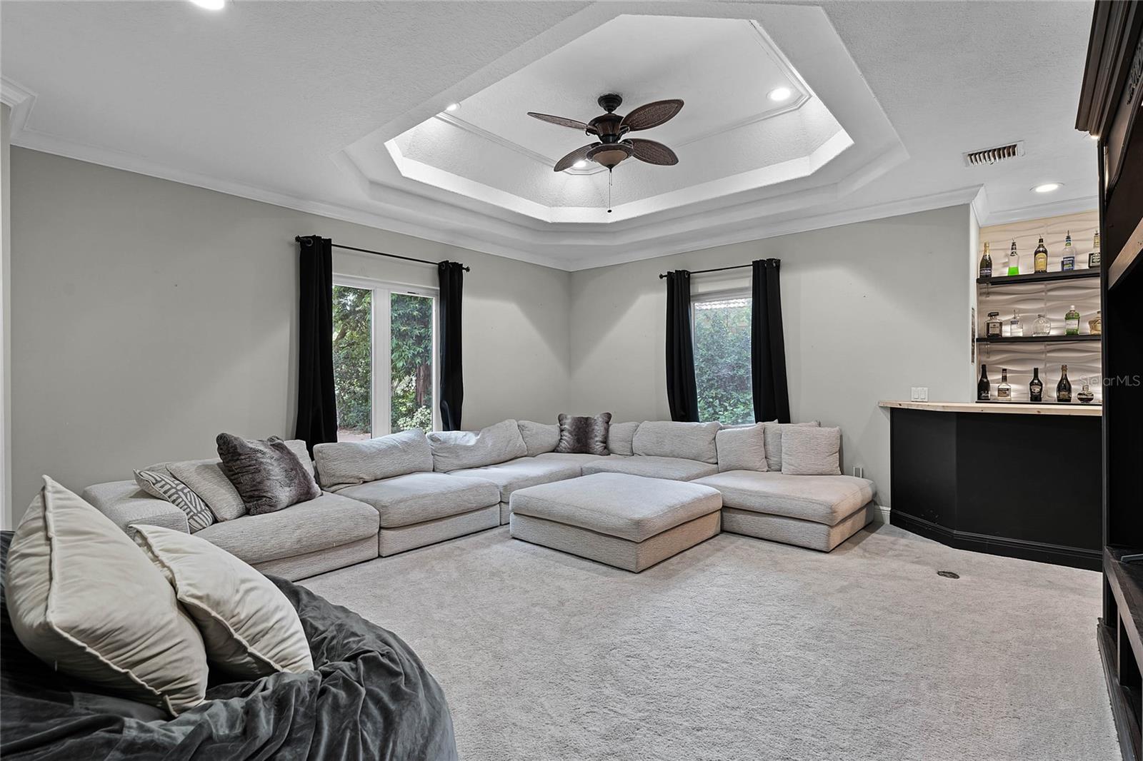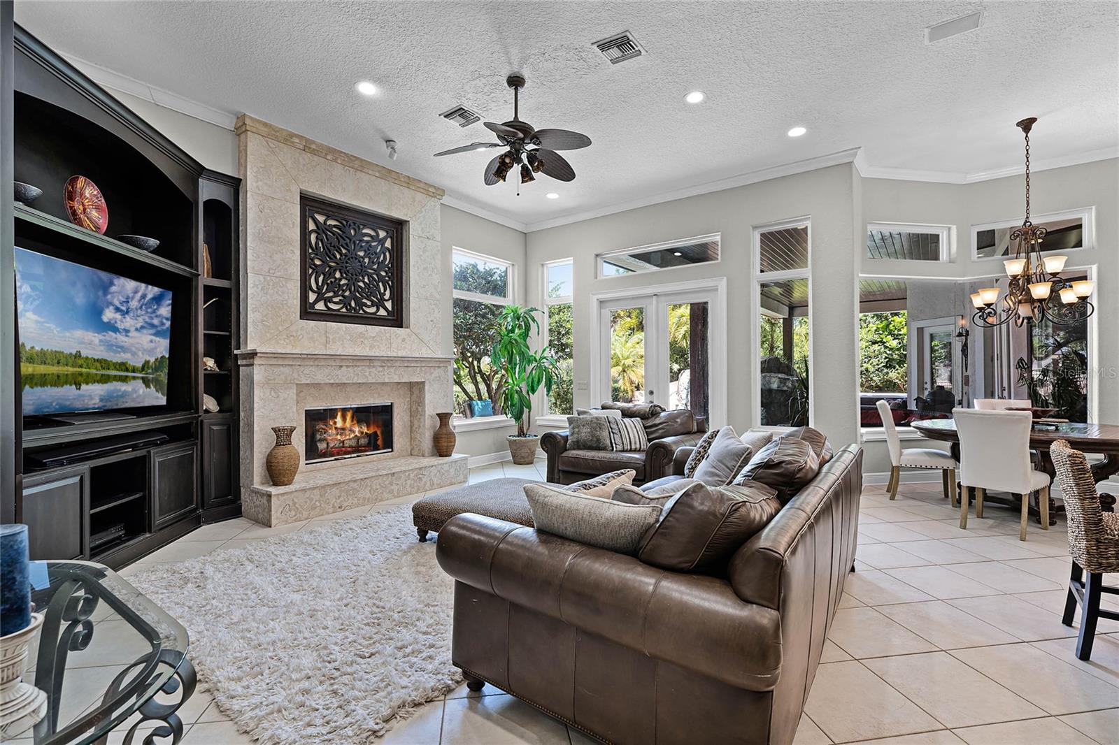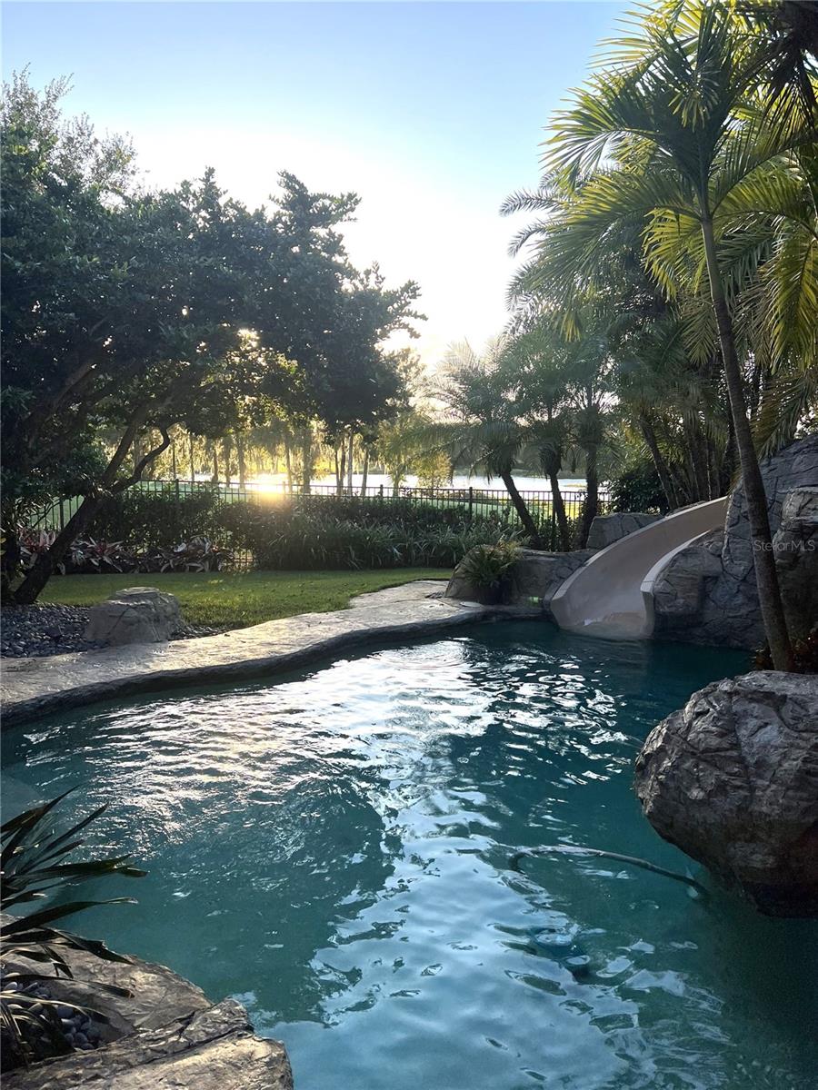 SPECTACULAR LAKE AND GOLF COURSE VIEW. 5 BEDROOM 4 ½ BATH LUXURY HOME (5TH BR CAN BE MEDIA/BONUS ROOM) LOCATED IN THE PRESTIGIOUS WINDERMERE GATED GOLF COMMUNITY OF ISLEWORTH. The beautiful oak tree lined street leads to a cul-de-sac providing a peaceful setting with minimal traffic. This house has had many updates including a KITCHEN REMODEL that includes STAINLESS STEEL APPLIANCES, CUSTOM MADE CABINETRY, TWO DISHWASHERS TWO WARMING DRAWERS, A SCOTSMEN ICEMAKER, A SUB-ZERO REFRIGERATOR AND ISLAND WITH VEGTABLE SINK. STONED FIRE PLACE. The master bath was recently updated with ITALIAN MARBLE TILE, a RAIN SHOWER, handheld shower, and a BEAUTIFUL SOAKING TUB. PELLA WINDOWS were installed throughout, with NEW DOORS. All bedrooms are large and have walk-in closets. A paradise worthy view out of the rooms to a tropical gas HEATED POOL and WATERSLIDE, with two WATERFALLS – just amazing to see! The listing includes a patio off the master with a HOPE SPRING LUXURY SPA THAT RETAILS FOR $22,000. The pool was just resurfaced. Large covered porch gives plenty of room for entertaining. The property has a termite bond and pest control, rain gutters, irrigation system, fenced in back yard with gates, TWO WATER HEATERS, TWO HVAC UNITS, paver circular driveway with a side facing 3 car garage with RACEDECK FLOORING, attic stairs, large laundry room with tub and closet. The community includes the GORGEOUS ISLEWORTH COUNTRY CLUB, AN 89,000 SQ FT FACILITY named a Top 100 Platinum Club of the World, with social, tennis, and golf memberships available. Security is 24 hours a day at both the gate and moving throughout the property, in addition to perimeter wall and electronic surveillance. It boasts a championship golf course, tennis center, playground, boat dock and launch. The neighborhood is home to many professional athletes, physicians, attorneys, and business professionals. Residents enjoy biking, jogging, kayaking and boating. THIS HOME OVERLOOKS BRENDA LAKE ON #12 and #13 of the RENOWNED CHAMPIONSHIP GOLF COURSE, which is currently receiving a redesign. You cannot beat this location. It is 3 minutes to a grocery store and shopping, 10 minutes to Dr. Phillips Restaurant Row with 100 or more restaurants, Universal Orlando, and Walt Disney World. Only 25 minutes to Orlando International Airport. Located 90 miles from Tampa-St. Petersburg, and only 50 minutes to the coast. Schools in the area are Windermere Elementary, Chain of Lakes Middle, and the top-rated Olympia High School. See attached list of updates in MLS.