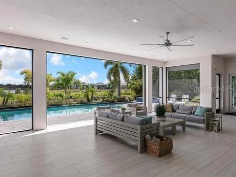 Welcome to this stunning ultra-modern home located in the prestigious gated community of Windermere, FL. This architectural masterpiece boasts 4 spacious bedrooms and 5 luxurious bathrooms. Upon entering, you are greeted by a grand living area designed for both comfort and elegance, perfect for hosting gatherings with friends and family. The open-concept space seamlessly flows to an expansive covered patio, featuring an outdoor grill and ample space for alfresco dining and parties, providing the perfect setting for memorable entertaining. Situated on the lake, this home offers breathtaking views that can be enjoyed from multiple vantage points throughout the property. The backyard sanctuary includes a pristine pool, enhancing your outdoor living experience. Additional features of this exceptional residence include a 3-car garage and exquisite luxury details meticulously thought out in every corner of the home. From high-end finishes to premium fixtures, no detail has been overlooked. This is not just a home; it’s a statement of modern elegance and luxury living. Discover your next sanctuary in one of Windermere’s most coveted neighborhoods. Contact us today for a private showing and experience firsthand why this home is truly a masterpiece.