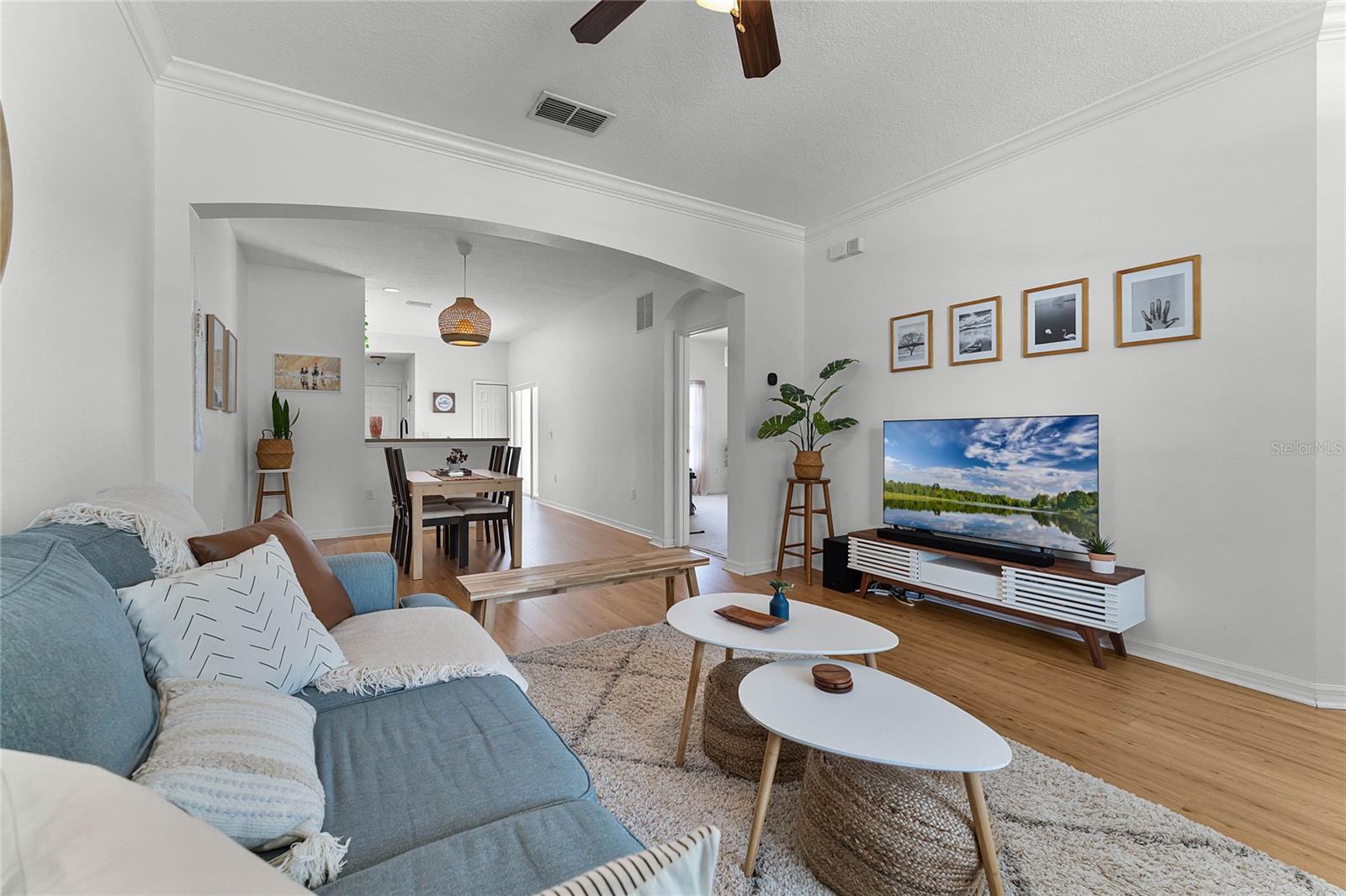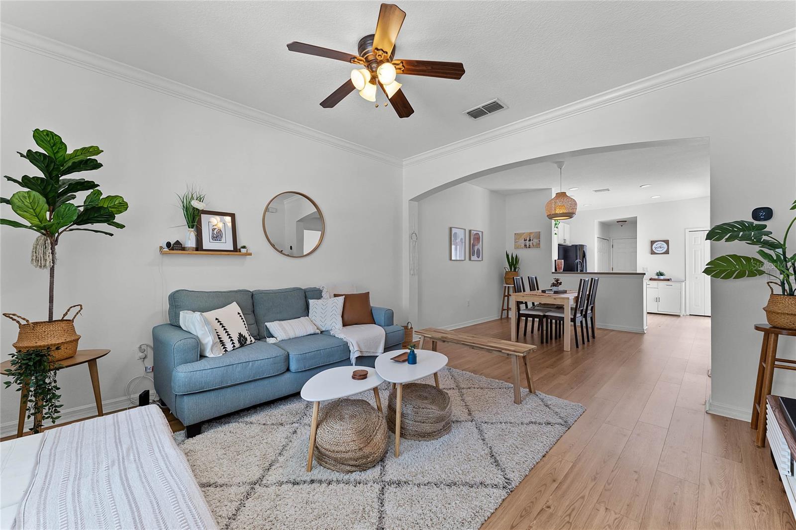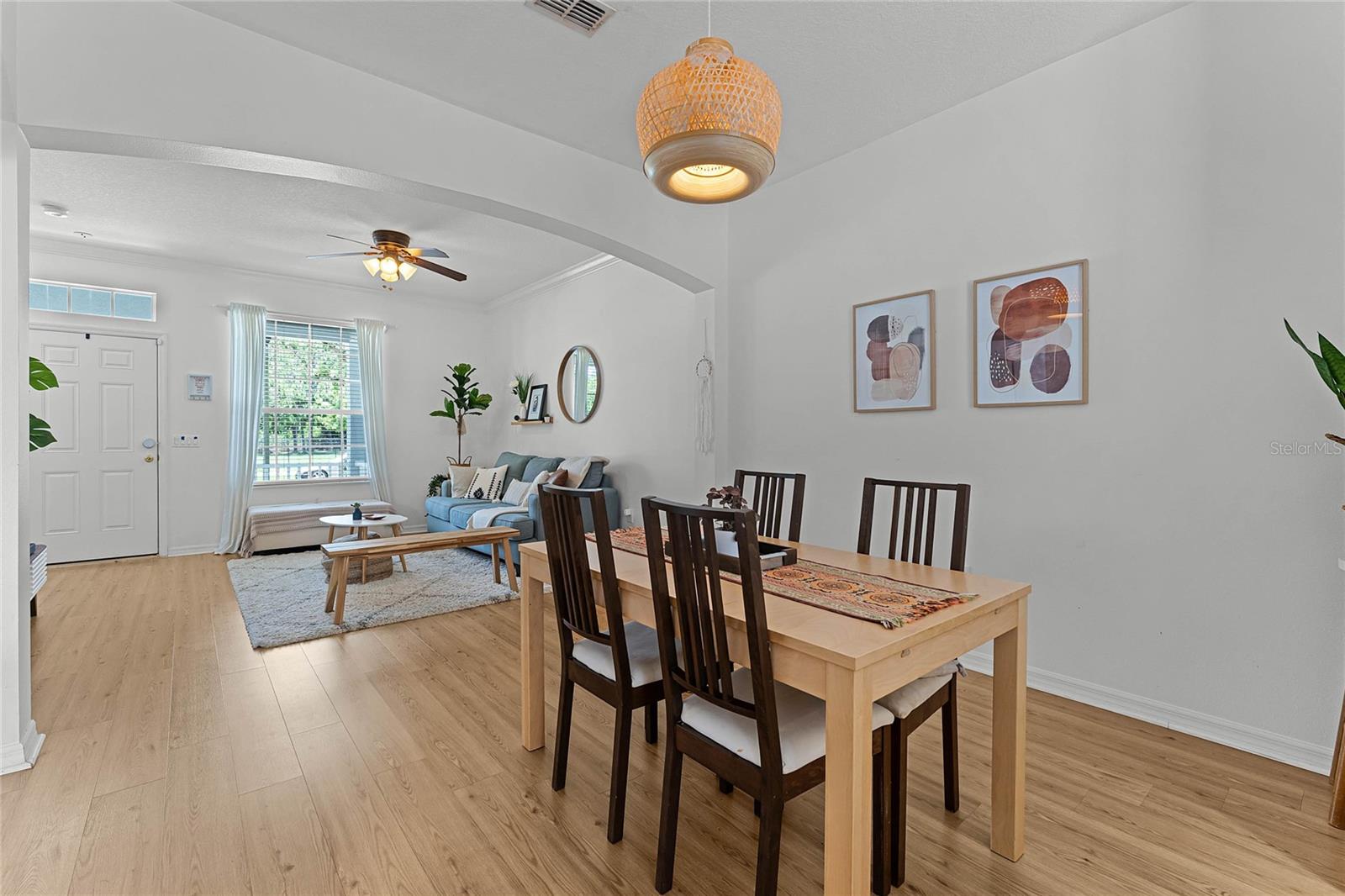 **Video Tour Available** Welcome to Summerport where location is everything as great schools are nearby and you’re just minutes away from the community pool, tennis courts, basketball court, fitness center, clubhouse, and dock on Walsh Pond. When you pull up to the townhome, you’ll find ample guest parking in the front, new exterior paint (2024) and a charming front porch. Enter the home to find a warm space with vinyl plank flooring (2020), crown molding, and a ceiling fan. This model has an open floorplan with a combined living and dining space. The kitchen has nice counter space, storage, a closet pantry and a new dishwasher (2021) and faucet. The laundry closet is conveniently located in the kitchen and the new smart washer and dryer (2023) convey! You’ll find sliding glass doors that open to a private and partially fenced paver patio. The primary suite is downstairs and has a garden tub, walk-in closet, and upgraded lighting in the bathroom. There is also a half bathroom downstairs. Upstairs you’ll find the additional bedrooms and bathroom. The 3 bedrooms upstairs have floor outlets and bedroom 4 has a niche for a desk or reading nook. This home is move-in ready with a new 15.2 seer, 2.5 ton AC (2023), new roof (2022), Ecobee smart thermostat, smart lock on the front door, a new smart garage door opener in the attached 2-car garage and gutters. Theme parks, shopping, restaurants and more are just minutes away as Summerport is near the 429 and Winter Garden Vineland Rd.