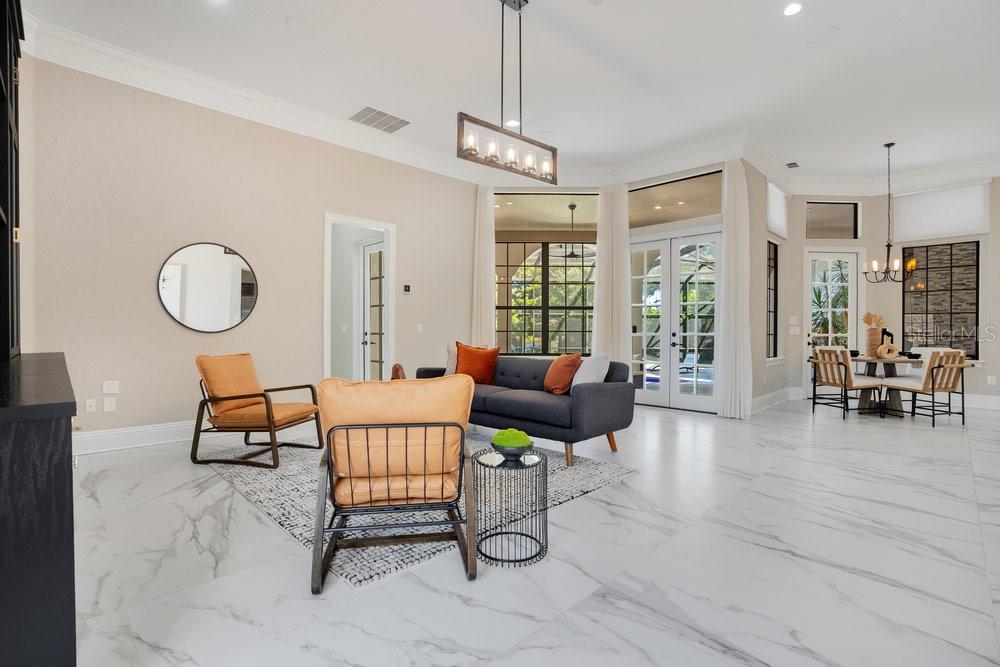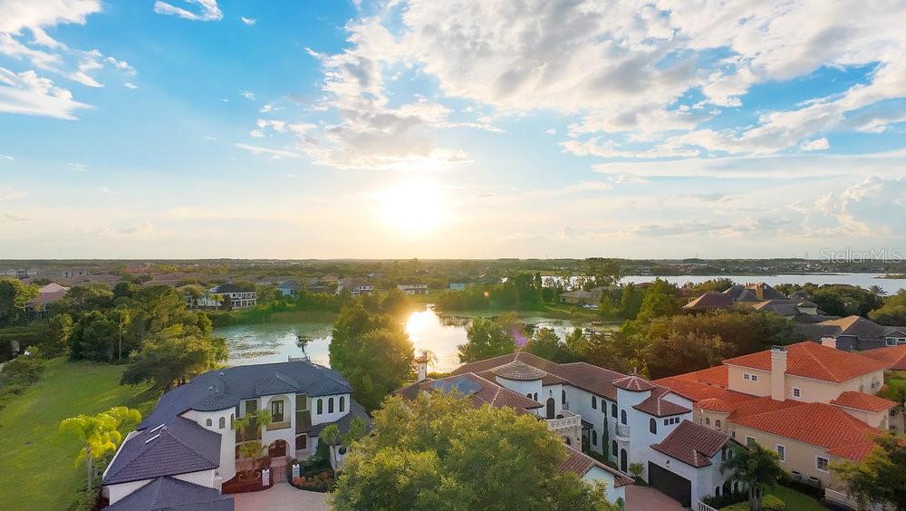 Get ready to enjoy the lake lifestyle in your custom estate poised on a cul-de-sac lot with 110 feet of pristine shoreline on Lake Burden. Recently underwent a $1 million remodel. This masterpiece of a home has it all with 5 bedrooms, 5.5 bathrooms, spacious great room, office, and a large 5 car garage! Your timeless Mediterranean home with contemporary finishes was designed to enjoy the breathtaking panoramic views of sunsets and Disney fireworks over Lake Burden with the utmost comfort and privacy. The grand façade has its own gated courtyard includes lush tropical landscaping complimented with a long driveway, balcony, and large custom double entry door. Upon entry you will immediately notice 12’ soaring high ceilings in the foyer with chic porcelain floors throughout. Sit back, relax, and take in your beautiful lake views from the great room which is open to the kitchen and casual dining space. The chef’s kitchen is a dream come true with a large center island, breakfast bar seating, marble backsplash, Viking refrigerator and dishwasher, Dacor 6 burner range with a vented hood and a walk-in pantry. The elegant dining room is perfect for those formal occasions with its own private courtyard and temperature controlled 1,000+ bottle wine cellar. Work from home in peace with your own office away from the living areas. The primary suite has its own seating area with amazing lake views including two large built-in walk-in closets, spa like bathroom including a glass shower, tub, and dual vanities. All secondary bedrooms are spacious en-suites with plenty of closet space. Relax and enjoy captivating lake views within the serenity of the expansive outdoor living area that is fully screened with your heated pool and water features with premium stone deck pavers. The covered lanai includes an amazing fully equipped summer kitchen for those perfect summer barbeques and get-togethers with loved ones. Gather around the massive sunken firepit for those beautiful star gazing nights. The wooden dock includes a jet ski lift to enjoy all 129 acres of Lake Burden. Your home was built by award-winning builder Campbell Custom Homes and features one-of-a-kind finishes throughout. Additionally, Keene’s Pointe is a 24-hour guard gated community, includes plenty of parks, playgrounds, with access to The Butler Chain of Lakes, The Golden Bear Country Club with amenities that include a gym, pool, golf, tennis courts, and neighborhood boat/RV storage. Close to Orlando’s best attractions including Walt Disney World, shopping, and “A” schools including Windermere Elementary, Bridgewater Middle, and the newer Windermere High School. Don’t miss out on this extraordinary lakefront property. Be sure to click on the virtual tour links. <iframe width='853' height='480' src=https://my.matterport.com/show/?m=LT1P8qwXBvE&mls=1></iframe>