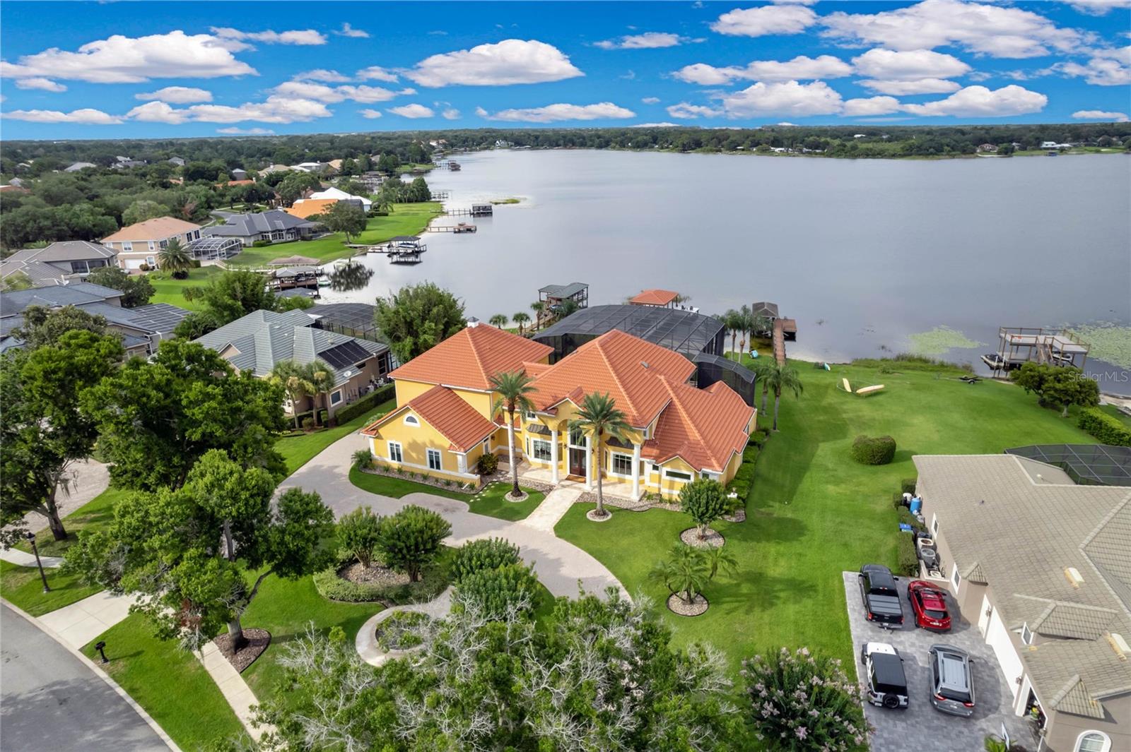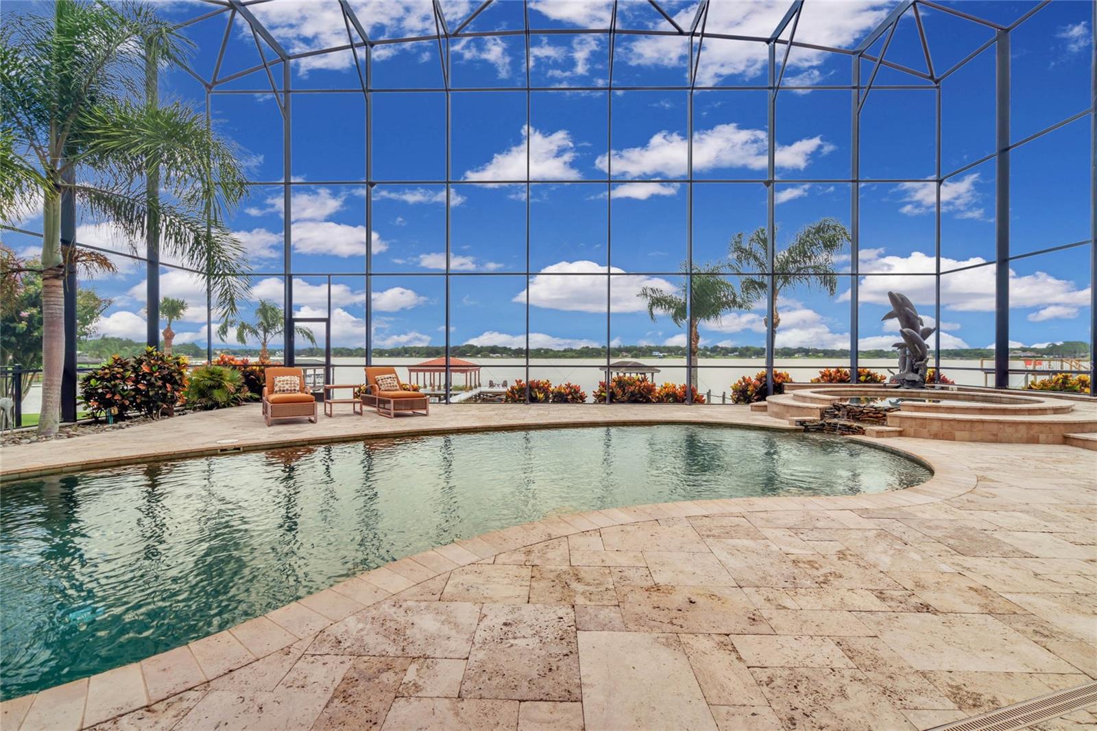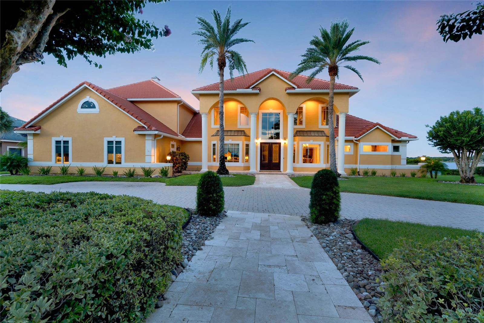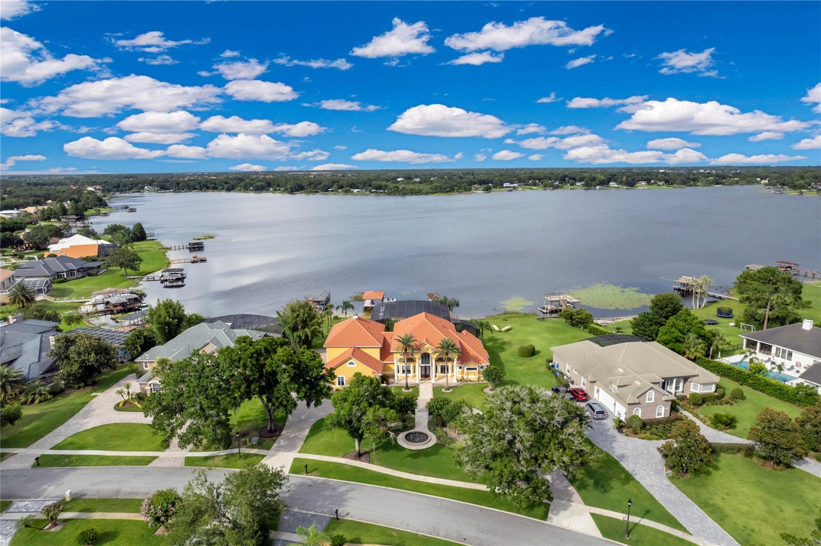 Video tour and 3D floorplan experience available. Indulge in ultimate luxury at this gated Lake Crescent retreat. Enjoy water-skiing on a private lake, fishing from your boat dock, and marveling at rocket launches, stunning sunsets, and pontoon plane landings—all from your backyard. Embrace Florida living with a heated saltwater pool, spa waterfall, and travertine tile deck under a 2-story screen. Relax on your private sandy beach or boat dock with a sundeck and new electric. A stylish fountain, palm trees, and crepe myrtles adorn the circular driveway, leading to double front doors revealing soaring ceilings, travertine floors, a grand staircase, crown molding, and tray ceilings. The formal dining and living rooms feature a gas fireplace, stone accents, and a retractable TV, ideal for unforgettable gatherings. Glass folding doors extend the living space to the pool area with a TV and fire pit. Built-in speakers let music flow throughout. The gourmet kitchen boasts custom cabinetry with pull-out drawers, ceiling-high storage with accent lights, tile backsplash, granite countertops, built-in refrigerator, full-size wine refrigerator, 6-burner gas range with pot filler, double oven, and warming drawer. The walk-in pantry and butler’s pantry/coffee bar offer custom cabinets, granite countertops, and a second full-size refrigerator. The wet island has ample seating, while the shaded lanai provides more dining space near the built-in gas grill, all with stunning pool and lake views. The primary suite, located downstairs, features rich wood floors, glass doors leading to the patio, and two walk-in closets with custom cabinets. The spa-like primary bathroom includes a large shower, Jacuzzi tub, double vanities, granite counters, and a heated towel rack. Guests will enjoy a first-floor bedroom with a superb lake view and private access to the pool bath. There’s also a spacious in-law suite with a private entrance, walk-in closet, and private bath. The main staircase leads to a library loft overlooking the living room and three additional bedrooms: one with a private bath, and two sharing a Jack & Jill bath. Breathtaking balcony views are accessible from the loft or bedroom. Custom cabinets and granite throughout. A second staircase reveals a state-of-the-art theater with tiered seating, 4K projector, 4 TVs, wet bar, beverage fridge, and bar seating. TWO offices: one with seating area, barn doors opening to a workspace, and glass sliding doors overlooking Lake Crescent, plus a cozy second office that could be a workout or hobby room. Additional features include a laundry room with custom cabinetry and granite countertops, and a 3-car garage with epoxy flooring, workbench alcove, built-in cabinets, overhead storage, and a pull-down screen door on the third bay. Recent upgrades: tankless water heaters, updated ACs, lighting, re-decked dock with new electric (2024), and newer tile roof on the house and boathouse (2018). The exclusive Windermere golf club was just acquired in August 2024 by a visionary investor. His intention is to renovate and reopen the golf course per an August 7, 2024 Orlando Business Journal article. This neighborhood is just minutes from downtown Windermere, Winter Garden, Disney World, and Dr. Phillips' fine dining. This is more than a home; it’s a lifestyle of unparalleled luxury and tranquility.