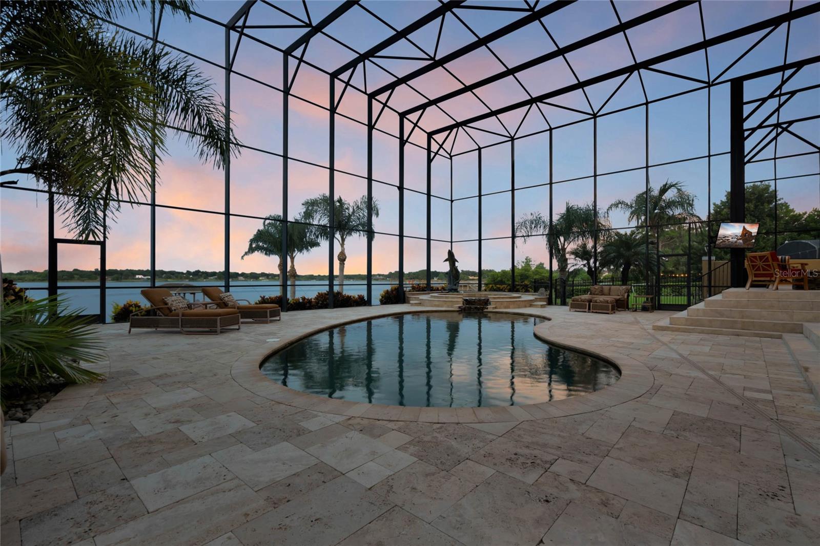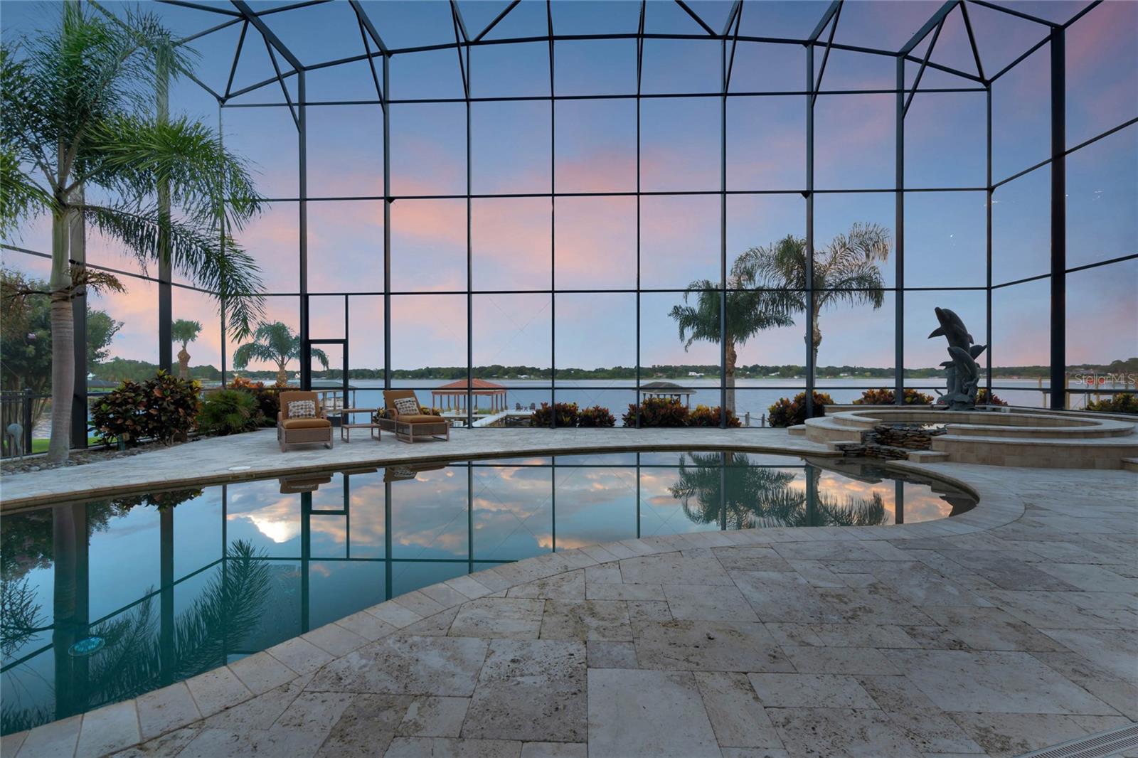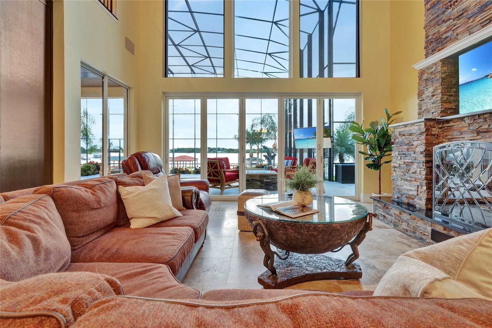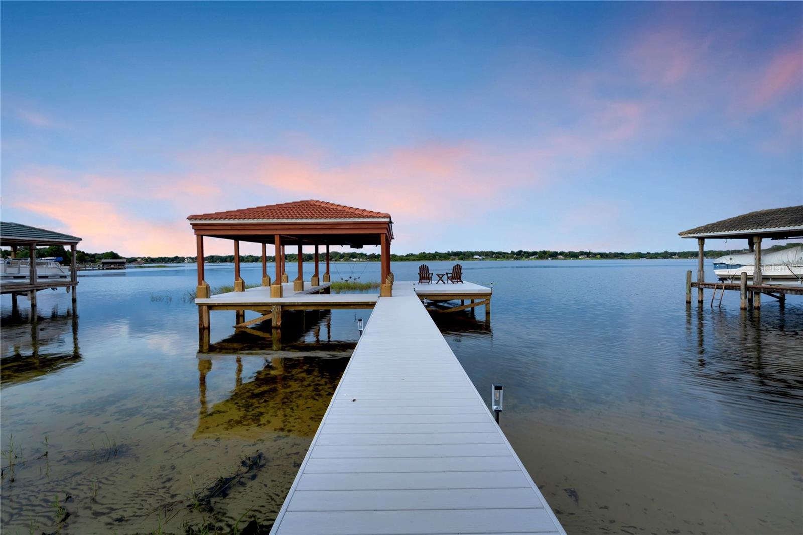 Video tour and 3D floorplan experience available. Indulge in ultimate luxury at this gated Lake Crescent retreat. Enjoy water-skiing on a private lake, fishing from your boat dock, and marveling at rocket launches, stunning sunsets, and pontoon plane landings—all from your backyard. Embrace Florida living with a heated saltwater pool, spa waterfall, and travertine tile deck under a 2-story screen. Relax on your private sandy beach or boat dock with a sundeck and new electric. A stylish fountain, palm trees, and crepe myrtles adorn the circular driveway, leading to double front doors revealing soaring ceilings, travertine floors, a grand staircase, crown molding, and tray ceilings. The formal dining and living rooms feature a gas fireplace, stone accents, and a retractable TV, ideal for unforgettable gatherings. Glass folding doors extend the living space to the pool area with a TV and fire pit. Built-in speakers let music flow throughout. The gourmet kitchen boasts custom cabinetry with pull-out drawers, ceiling-high storage with accent lights, tile backsplash, granite countertops, built-in refrigerator, full-size wine refrigerator, 6-burner gas range with pot filler, double oven, and warming drawer. The walk-in pantry and butler’s pantry/coffee bar offer custom cabinets, granite countertops, and a second full-size refrigerator. The wet island has ample seating, while the shaded lanai provides more dining space near the built-in gas grill, all with stunning pool and lake views. The primary suite, located downstairs, features rich wood floors, glass doors leading to the patio, and two walk-in closets with custom cabinets. The spa-like primary bathroom includes a large shower, Jacuzzi tub, double vanities, granite counters, and a heated towel rack. Guests will enjoy a first-floor bedroom with a superb lake view and private access to the pool bath. There’s also a spacious in-law suite with a private entrance, walk-in closet, and private bath. The main staircase leads to a library loft overlooking the living room and three additional bedrooms: one with a private bath, and two sharing a Jack & Jill bath. Breathtaking balcony views are accessible from the loft or bedroom. Custom cabinets and granite throughout. A second staircase reveals a state-of-the-art theater with tiered seating, 4K projector, 4 TVs, wet bar, beverage fridge, and bar seating. TWO offices: one with seating area, barn doors opening to a workspace, and glass sliding doors overlooking Lake Crescent, plus a cozy second office that could be a workout or hobby room. Additional features include a laundry room with custom cabinetry and granite countertops, and a 3-car garage with epoxy flooring, workbench alcove, built-in cabinets, overhead storage, and a pull-down screen door on the third bay. Recent upgrades: tankless water heaters, updated ACs, lighting, re-decked dock with new electric (2024), and newer tile roof on the house and boathouse (2018). The exclusive Windermere golf club was just acquired in August 2024 by a visionary investor. His intention is to renovate and reopen the golf course per an August 7, 2024 Orlando Business Journal article. This neighborhood is just minutes from downtown Windermere, Winter Garden, Disney World, and Dr. Phillips' fine dining. This is more than a home; it’s a lifestyle of unparalleled luxury and tranquility.