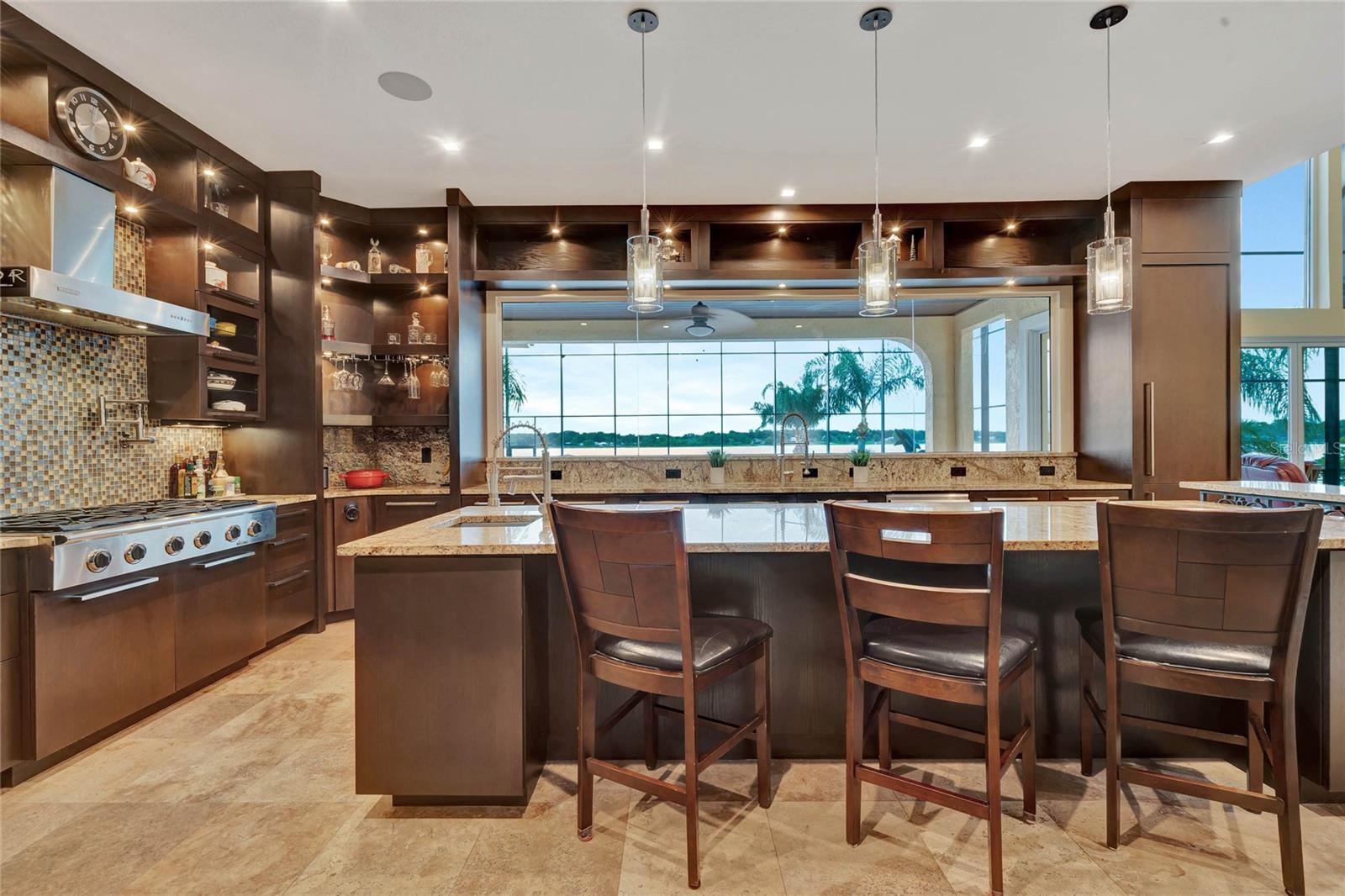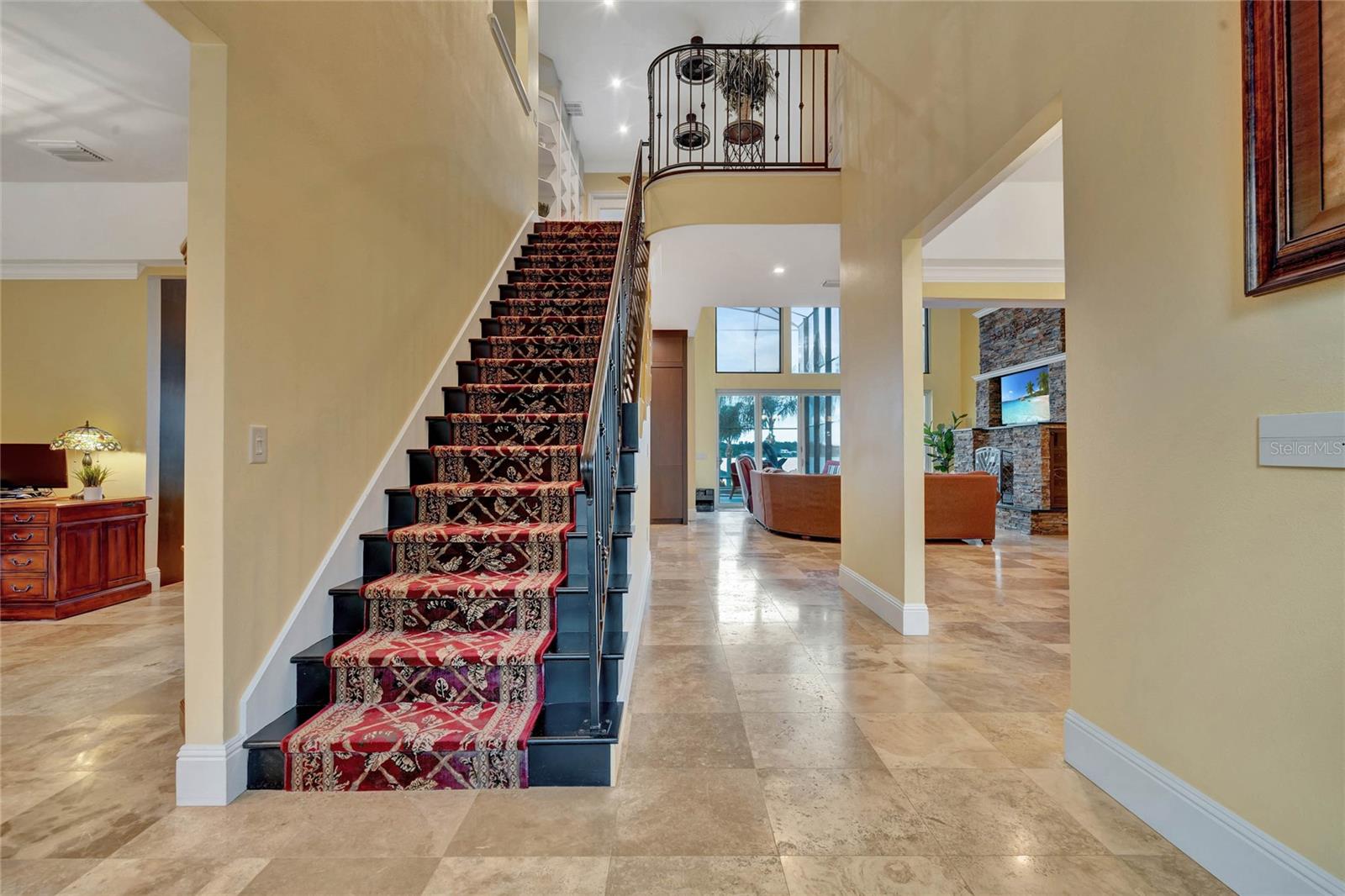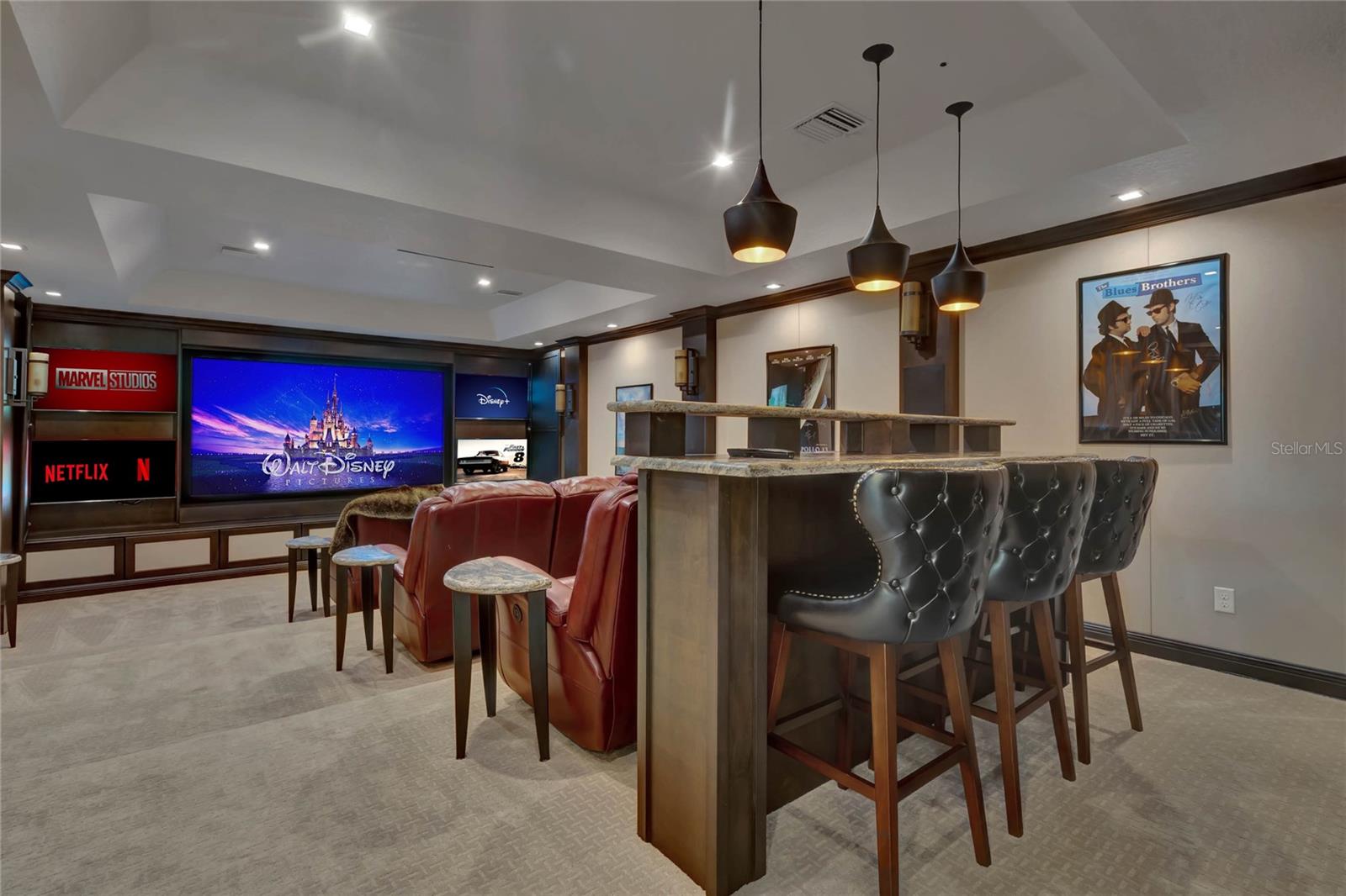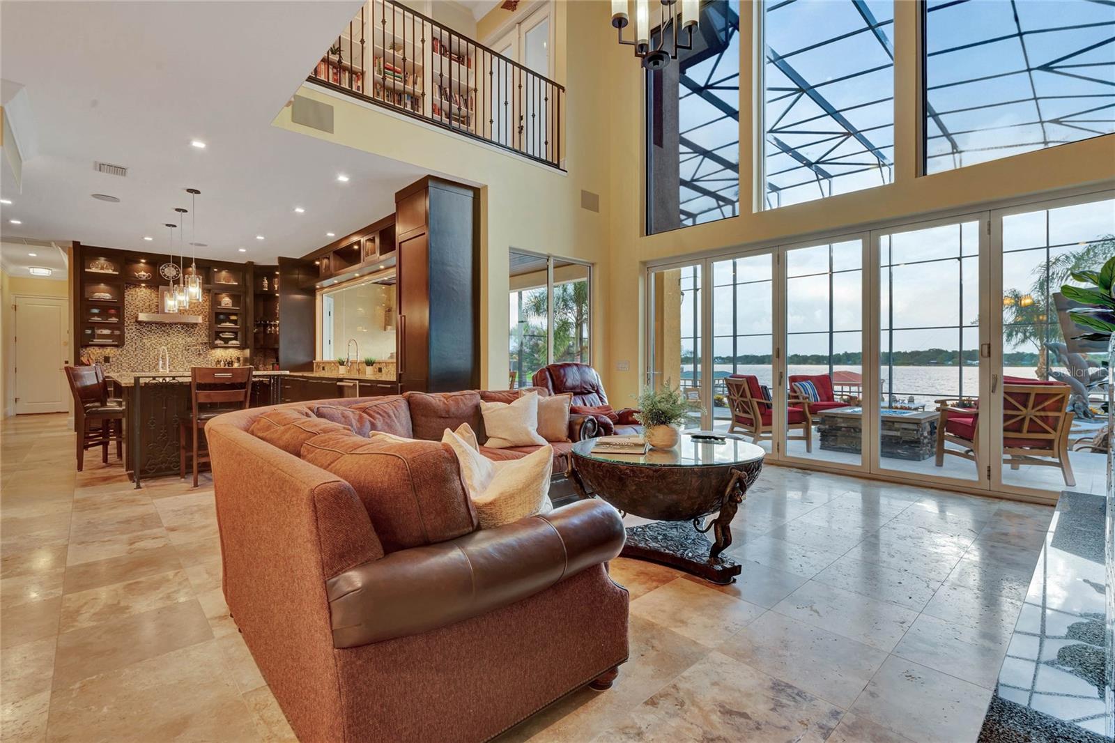 Video tour and 3D floorplan experience available. Indulge in ultimate luxury at this gated Lake Crescent retreat. Enjoy water-skiing on a private lake, fishing from your boat dock, and marveling at rocket launches, stunning sunsets, and pontoon plane landings—all from your backyard. Embrace Florida living with a heated saltwater pool, spa waterfall, and travertine tile deck under a 2-story screen. Relax on your private sandy beach or boat dock with a sundeck and new electric. A stylish fountain, palm trees, and crepe myrtles adorn the circular driveway, leading to double front doors revealing soaring ceilings, travertine floors, a grand staircase, crown molding, and tray ceilings. The formal dining and living rooms feature a gas fireplace, stone accents, and a retractable TV, ideal for unforgettable gatherings. Glass folding doors extend the living space to the pool area with a TV and fire pit. Built-in speakers let music flow throughout. The gourmet kitchen boasts custom cabinetry with pull-out drawers, ceiling-high storage with accent lights, tile backsplash, granite countertops, built-in refrigerator, full-size wine refrigerator, 6-burner gas range with pot filler, double oven, and warming drawer. The walk-in pantry and butler’s pantry/coffee bar offer custom cabinets, granite countertops, and a second full-size refrigerator. The wet island has ample seating, while the shaded lanai provides more dining space near the built-in gas grill, all with stunning pool and lake views. The primary suite, located downstairs, features rich wood floors, glass doors leading to the patio, and two walk-in closets with custom cabinets. The spa-like primary bathroom includes a large shower, Jacuzzi tub, double vanities, granite counters, and a heated towel rack. Guests will enjoy a first-floor bedroom with a superb lake view and private access to the pool bath. There’s also a spacious in-law suite with a private entrance, walk-in closet, and private bath. The main staircase leads to a library loft overlooking the living room and three additional bedrooms: one with a private bath, and two sharing a Jack & Jill bath. Breathtaking balcony views are accessible from the loft or bedroom. Custom cabinets and granite throughout. A second staircase reveals a state-of-the-art theater with tiered seating, 4K projector, 4 TVs, wet bar, beverage fridge, and bar seating. TWO offices: one with seating area, barn doors opening to a workspace, and glass sliding doors overlooking Lake Crescent, plus a cozy second office that could be a workout or hobby room. Additional features include a laundry room with custom cabinetry and granite countertops, and a 3-car garage with epoxy flooring, workbench alcove, built-in cabinets, overhead storage, and a pull-down screen door on the third bay. Recent upgrades: tankless water heaters, updated ACs, lighting, re-decked dock with new electric (2024), and newer tile roof on the house and boathouse (2018). The exclusive Windermere golf club was just acquired in August 2024 by a visionary investor. His intention is to renovate and reopen the golf course per an August 7, 2024 Orlando Business Journal article. This neighborhood is just minutes from downtown Windermere, Winter Garden, Disney World, and Dr. Phillips' fine dining. This is more than a home; it’s a lifestyle of unparalleled luxury and tranquility.