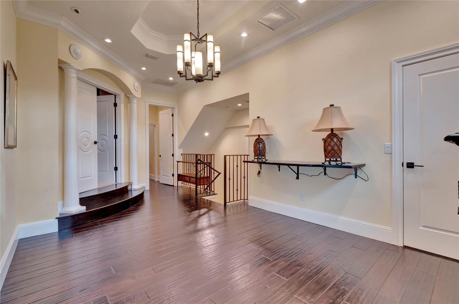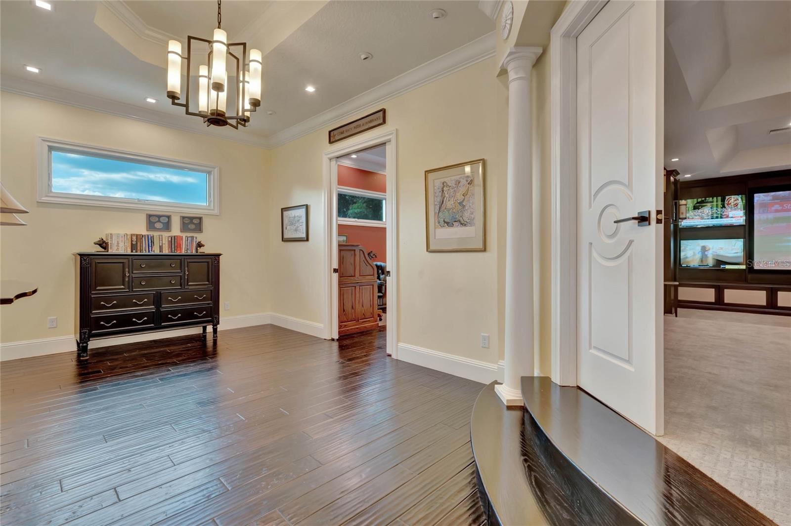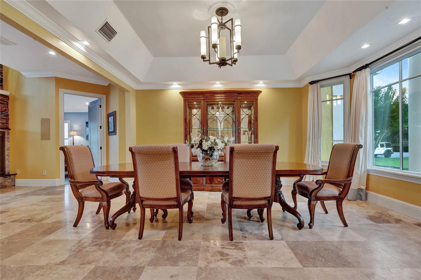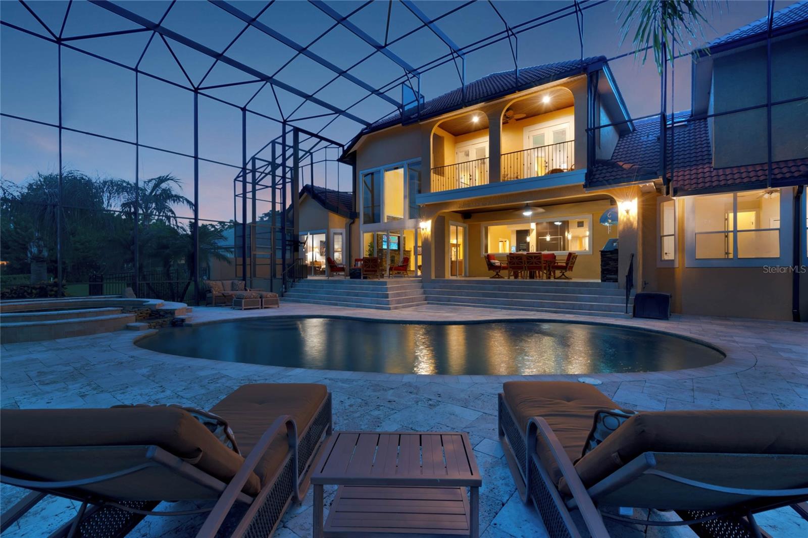 Video tour and 3D floorplan experience available. Indulge in ultimate luxury at this gated Lake Crescent retreat. Enjoy water-skiing on a private lake, fishing from your boat dock, and marveling at rocket launches, stunning sunsets, and pontoon plane landings—all from your backyard. Embrace Florida living with a heated saltwater pool, spa waterfall, and travertine tile deck under a 2-story screen. Relax on your private sandy beach or boat dock with a sundeck and new electric. A stylish fountain, palm trees, and crepe myrtles adorn the circular driveway, leading to double front doors revealing soaring ceilings, travertine floors, a grand staircase, crown molding, and tray ceilings. The formal dining and living rooms feature a gas fireplace, stone accents, and a retractable TV, ideal for unforgettable gatherings. Glass folding doors extend the living space to the pool area with a TV and fire pit. Built-in speakers let music flow throughout. The gourmet kitchen boasts custom cabinetry with pull-out drawers, ceiling-high storage with accent lights, tile backsplash, granite countertops, built-in refrigerator, full-size wine refrigerator, 6-burner gas range with pot filler, double oven, and warming drawer. The walk-in pantry and butler’s pantry/coffee bar offer custom cabinets, granite countertops, and a second full-size refrigerator. The wet island has ample seating, while the shaded lanai provides more dining space near the built-in gas grill, all with stunning pool and lake views. The primary suite, located downstairs, features rich wood floors, glass doors leading to the patio, and two walk-in closets with custom cabinets. The spa-like primary bathroom includes a large shower, Jacuzzi tub, double vanities, granite counters, and a heated towel rack. Guests will enjoy a first-floor bedroom with a superb lake view and private access to the pool bath. There’s also a spacious in-law suite with a private entrance, walk-in closet, and private bath. The main staircase leads to a library loft overlooking the living room and three additional bedrooms: one with a private bath, and two sharing a Jack & Jill bath. Breathtaking balcony views are accessible from the loft or bedroom. Custom cabinets and granite throughout. A second staircase reveals a state-of-the-art theater with tiered seating, 4K projector, 4 TVs, wet bar, beverage fridge, and bar seating. TWO offices: one with seating area, barn doors opening to a workspace, and glass sliding doors overlooking Lake Crescent, plus a cozy second office that could be a workout or hobby room. Additional features include a laundry room with custom cabinetry and granite countertops, and a 3-car garage with epoxy flooring, workbench alcove, built-in cabinets, overhead storage, and a pull-down screen door on the third bay. Recent upgrades: tankless water heaters, updated ACs, lighting, re-decked dock with new electric (2024), and newer tile roof on the house and boathouse (2018). The exclusive Windermere golf club was just acquired in August 2024 by a visionary investor. His intention is to renovate and reopen the golf course per an August 7, 2024 Orlando Business Journal article. This neighborhood is just minutes from downtown Windermere, Winter Garden, Disney World, and Dr. Phillips' fine dining. This is more than a home; it’s a lifestyle of unparalleled luxury and tranquility.