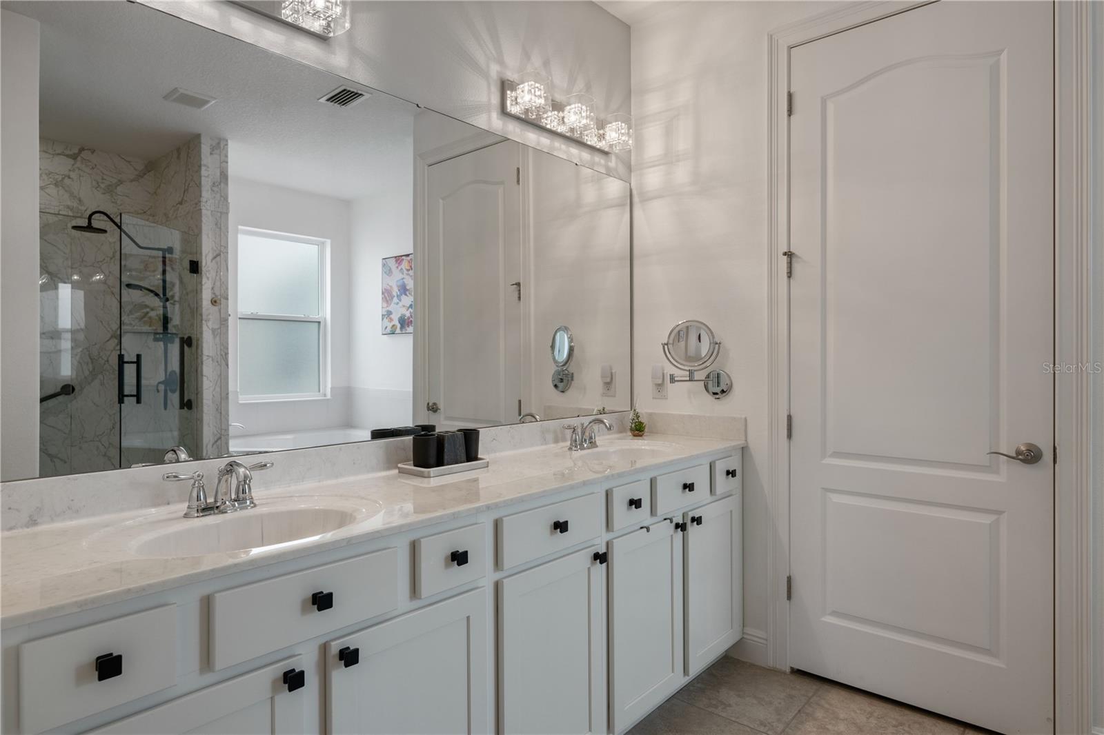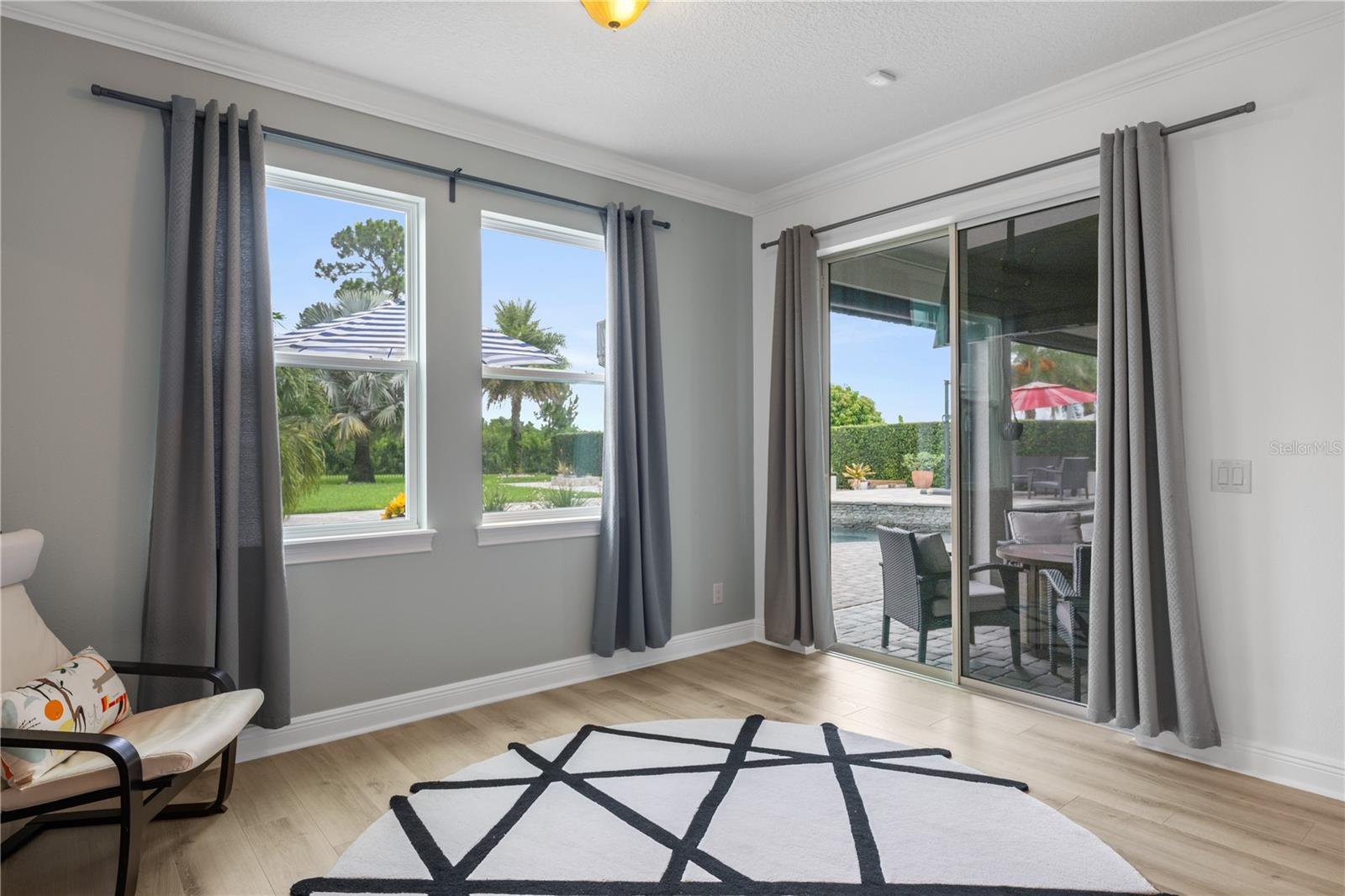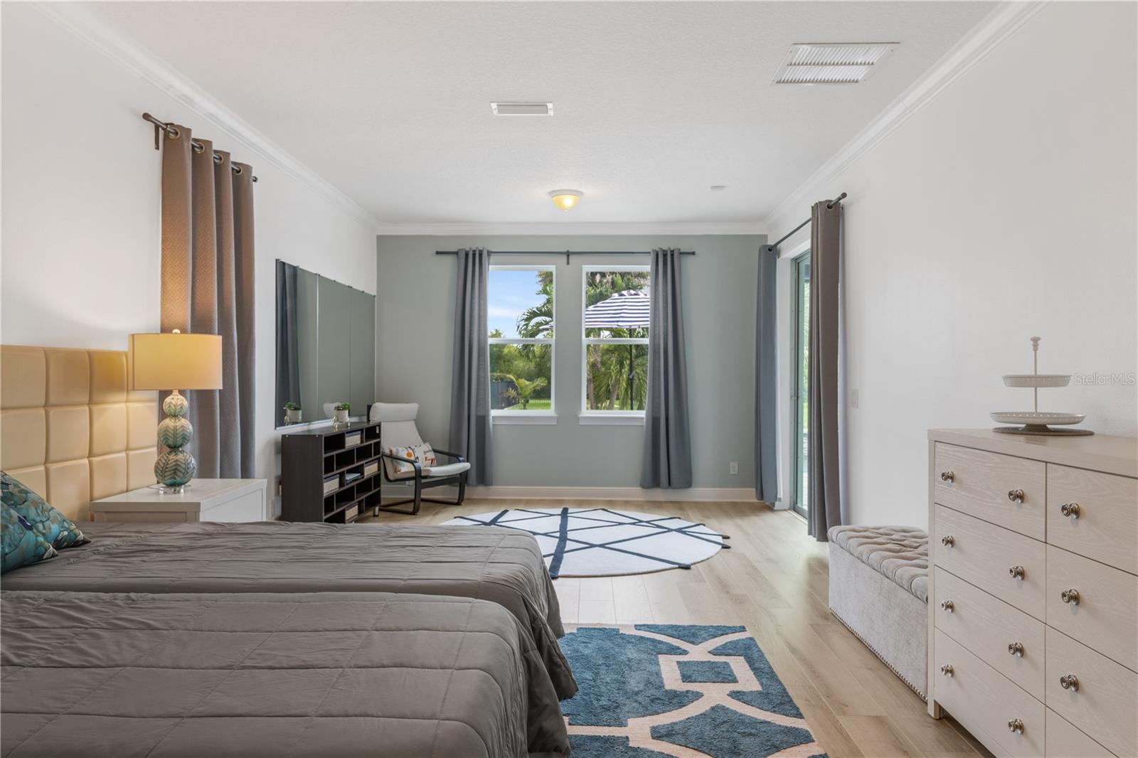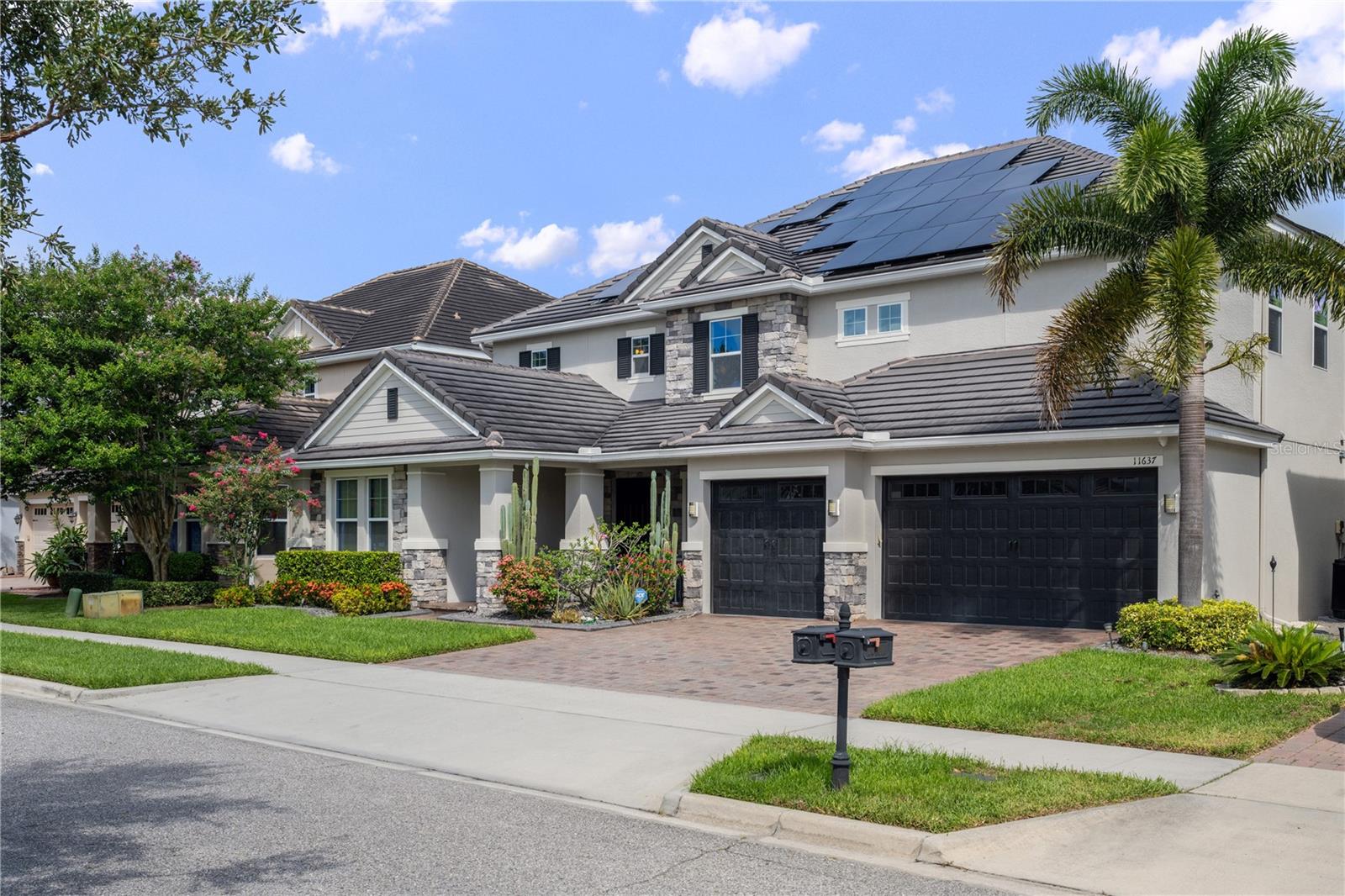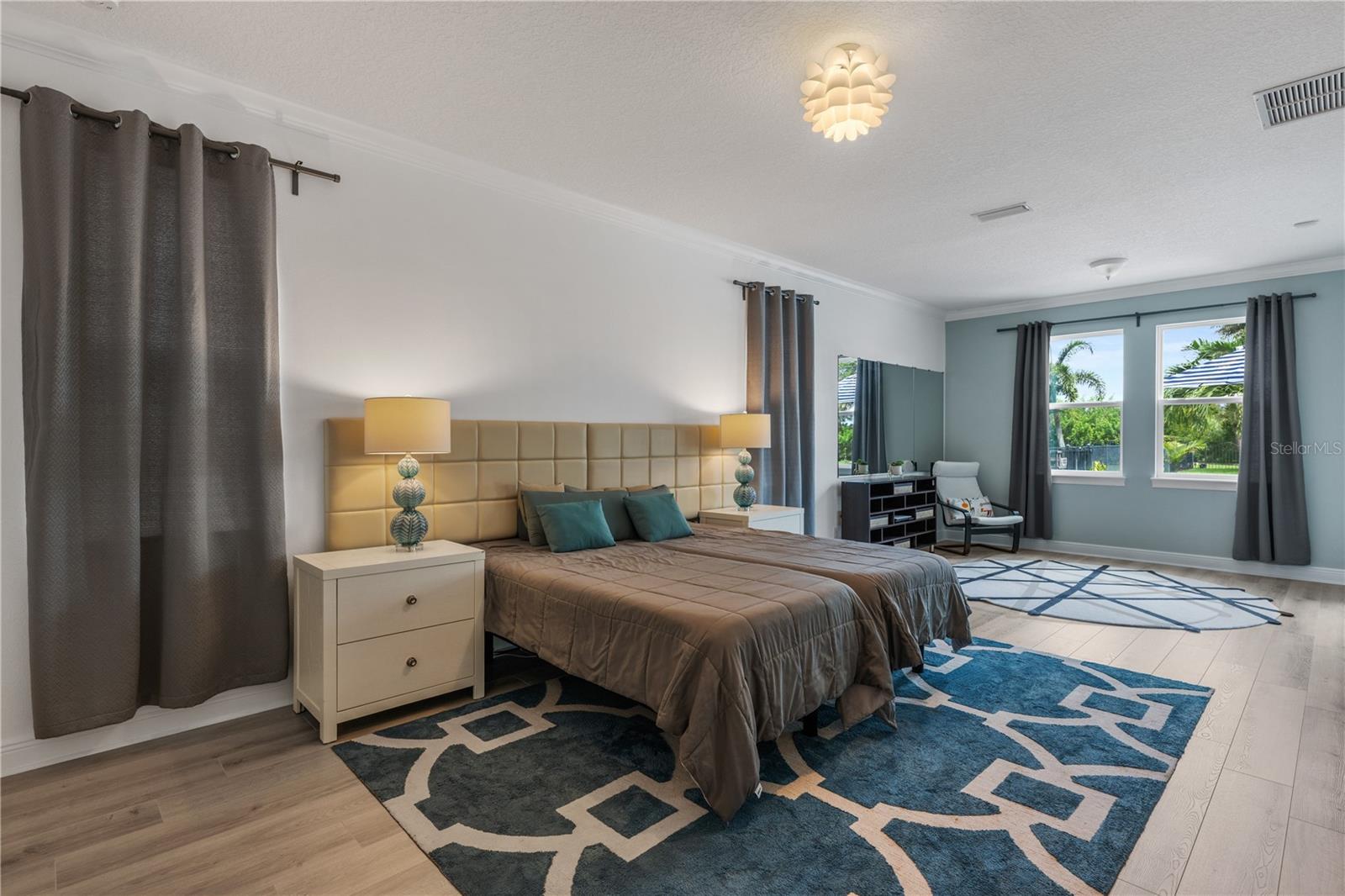 .....Rare find 2 Master Bedrooms Home.....Modern contemporary house in Lake Burden, Windermere.... This LAKEFRONT Windermere home is move in ready..... No dirty construction work needed.....No Rear Neighbor.... No Carpet.....5 Bedroom/3 Functional Room/5.5 bath/3 car garage..... 2 master bedrooms (one upstairs and one downstairs).....In addition, there are an office, a flex room, and a powder bathroom downstairs....Backyard oasis with the extended lanai complete with remote screens giving access to the SALT WATER, HEATED POOL, and fully FENCED YARD !.....Upstairs has a big media room/bonus room that is currently used as a gym room. .... Don't forget about the walking trail around the lake in the community. The community offers walking trail, tennis courts, softball field, pool, fishing dock, and a "bridge" connecting Lake Burden with Case Del Largo where you can walk to Sunset Park Elementary School.....$150,000 plus upgrades including...New Jandy Pool Pump... Polyaspartic Garage Flooring...French Doors...Solar Panels...Downstairs Shower...Backyard Pavers...Outdoor Lighting...Appliances...Landscaping...Paver Sealing...Water Softener System...