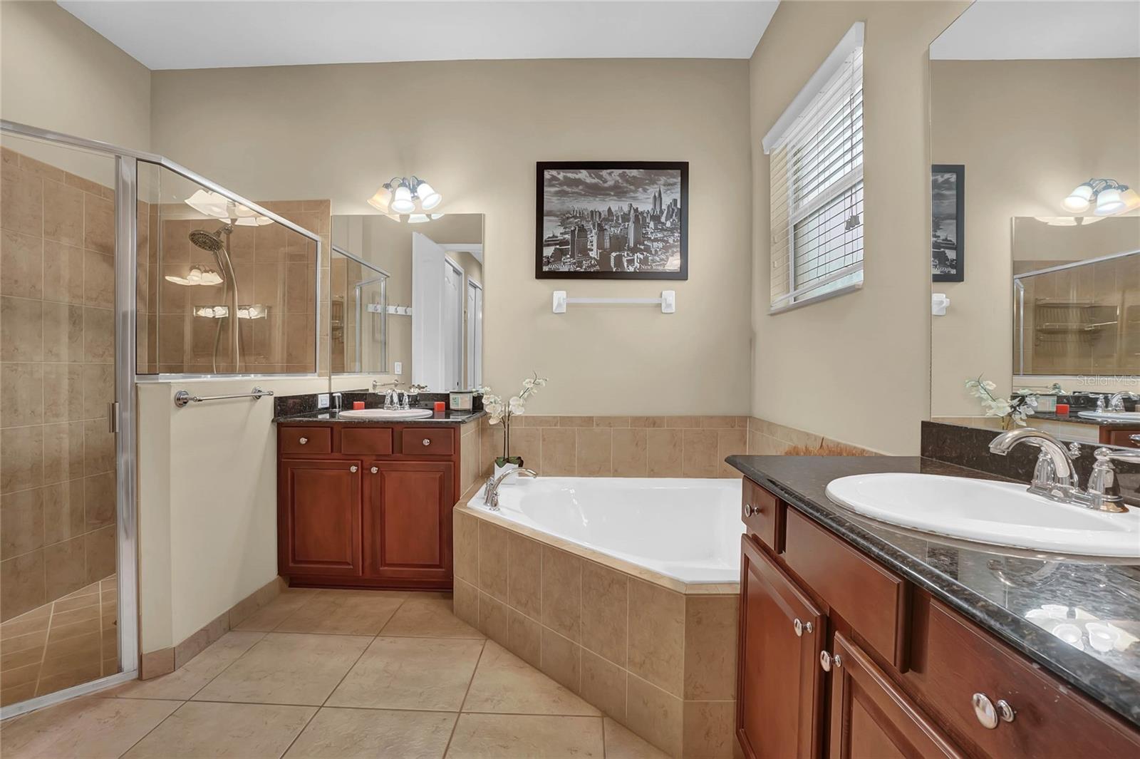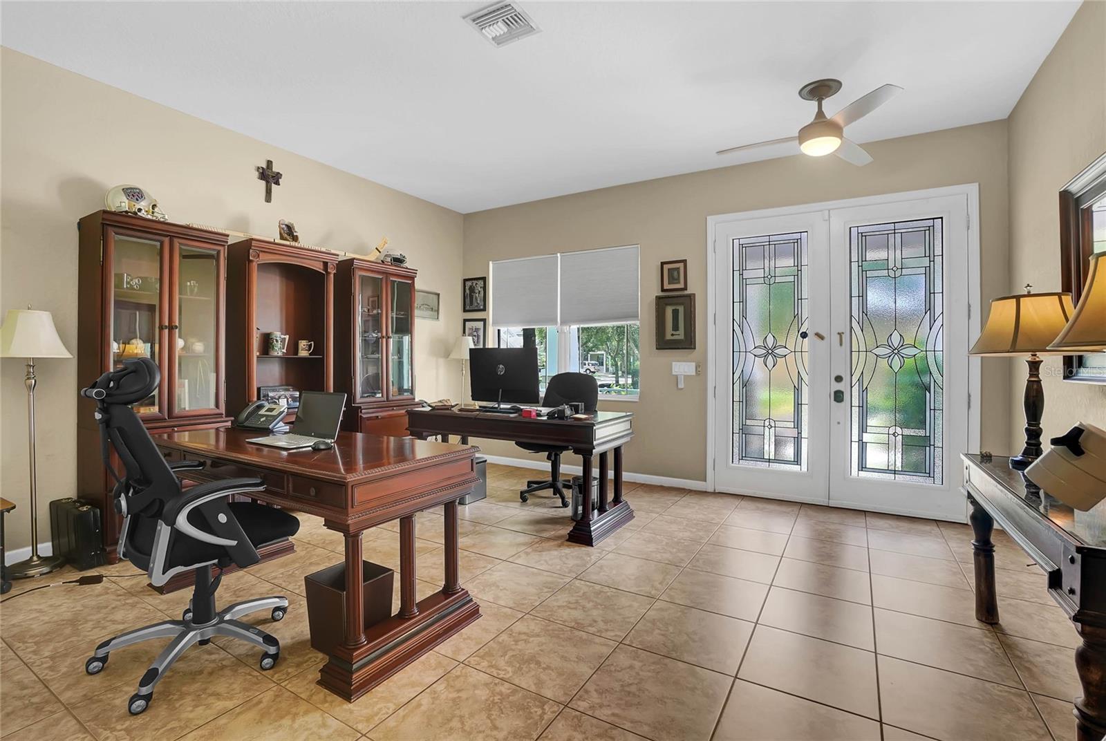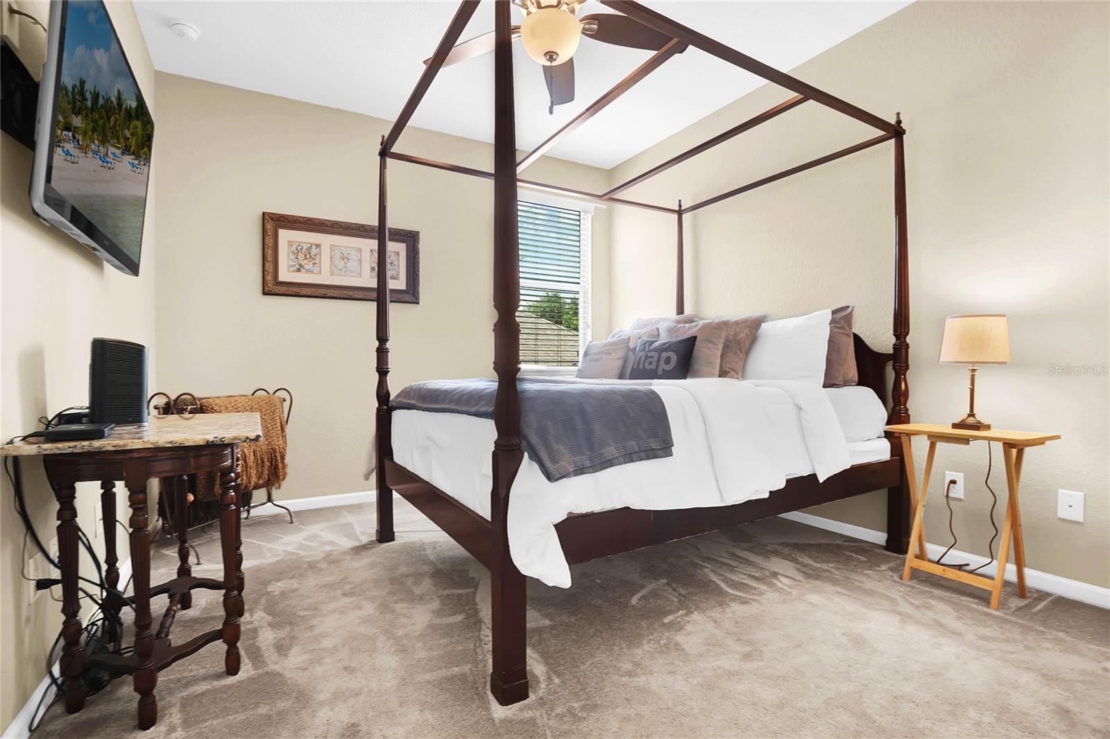This gorgeous pool home is ready for you to move in NOW! located in the quiet neighborhood of Preston Square. It features a spacious living room, and office with French doors. The large kitchen features abundant granite countertop space and 42" solid wood cabinets. Separate laundry room off the kitchen-washer & dryer included. All stainless-steel appliances. The large family room features a soaring ceiling and opens up to the beautiful salt water, solar heated, screened in pool! The large master bedroom is on the first floor with an abundant walk-in closet and two additional closets. The master bath features a garden tub and separate shower with two vanities and a private water closet. Three bedrooms and two more full bathrooms along with an expansive bonus room are located on the second floor. Tile floors in all the living areas and newer carpeting in all the bedrooms. New wood laminate flooring on the stairwell and second floor landing. The 10-foot-high ceilings make this home spacious and bright. The charming front porch surrounded by lush landscaping, is perfect for relaxing. Solar panels installed in 2023. New Central A/C unit installed in 2023. Exterior of house painted in 2023. Excellent schools are within reach, making this an ideal choice for families. ALL FURNISHINGS AVAILABLE FOR SEPERATE SALE. Don't miss out on this incredible opportunity. Schedule your visit today and make this home yours!