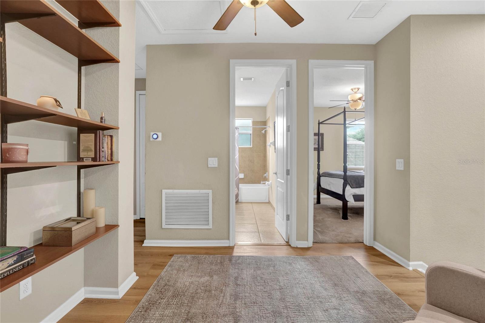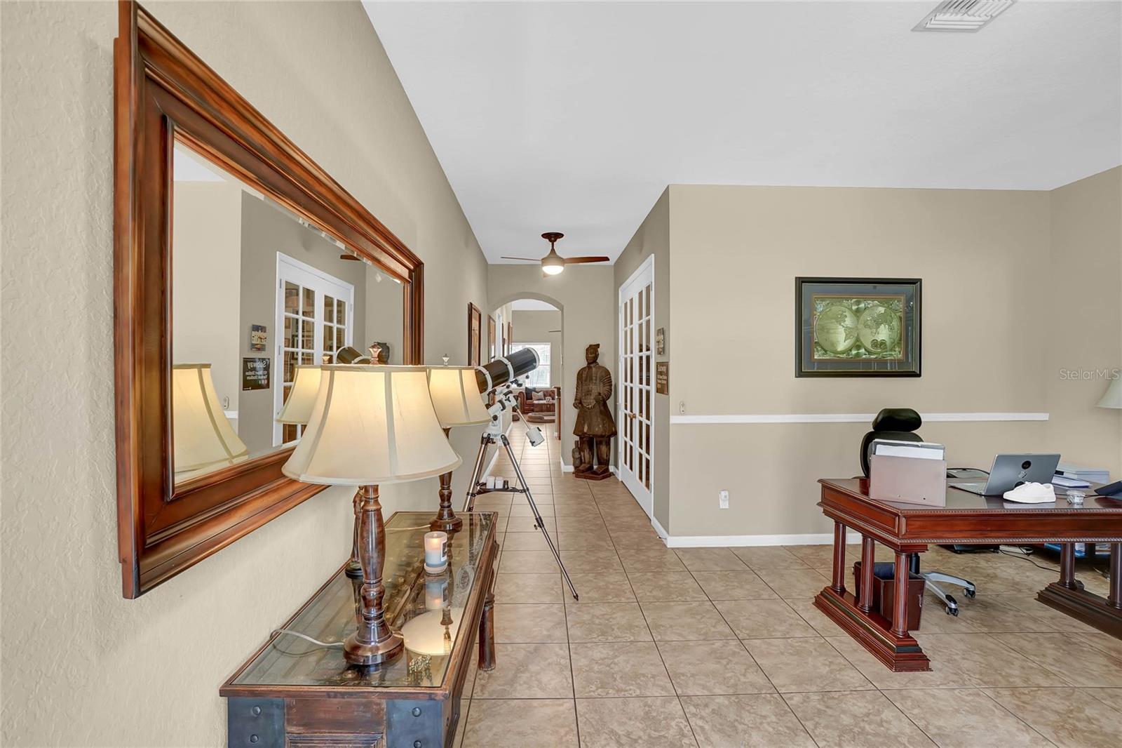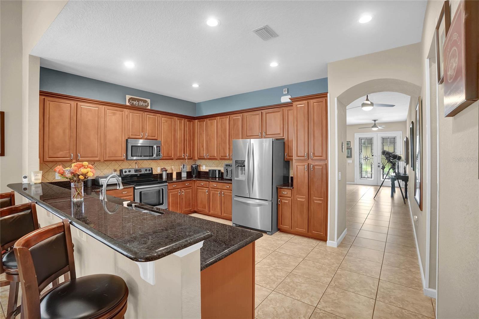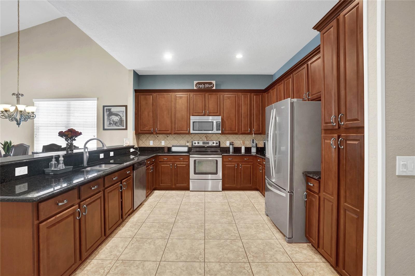 This gorgeous pool home is ready for you to move in NOW! located in the quiet neighborhood of Preston Square. It features a spacious living room, and office with French doors. The large kitchen features abundant granite countertop space and 42" solid wood cabinets. Separate laundry room off the kitchen-washer & dryer included. All stainless-steel appliances. The large family room features a soaring ceiling and opens up to the beautiful salt water, solar heated, screened in pool! The large master bedroom is on the first floor with an abundant walk-in closet and two additional closets. The master bath features a garden tub and separate shower with two vanities and a private water closet. Three bedrooms and two more full bathrooms along with an expansive bonus room are located on the second floor. Tile floors in all the living areas and newer carpeting in all the bedrooms. New wood laminate flooring on the stairwell and second floor landing. The 10-foot-high ceilings make this home spacious and bright. The charming front porch surrounded by lush landscaping, is perfect for relaxing. Solar panels installed in 2023. New Central A/C unit installed in 2023. Exterior of house painted in 2023. Excellent schools are within reach, making this an ideal choice for families. ALL FURNISHINGS AVAILABLE FOR SEPERATE SALE. Don't miss out on this incredible opportunity. Schedule your visit today and make this home yours!