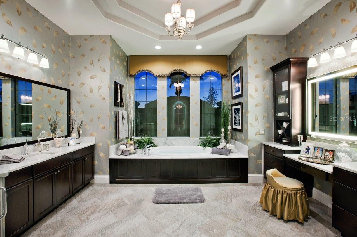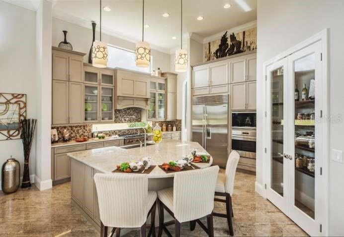 The designer-decorated Villa Milano Mediterranean model home presents the utmost in luxury at the exclusive and gated Casabella Community. This spacious residence features high-end appointments throughout the home, custom built-ins in the family room, wet bar, and private study, stone and wood flooring, soaring windows with custom window treatments. Enjoy entertaining on the outdoor covered verandah with summer kitchen and linear fireplace by the expansive resort-style pool with spa, sun shelf, and palm tree island. Vacant and ready for showings today!