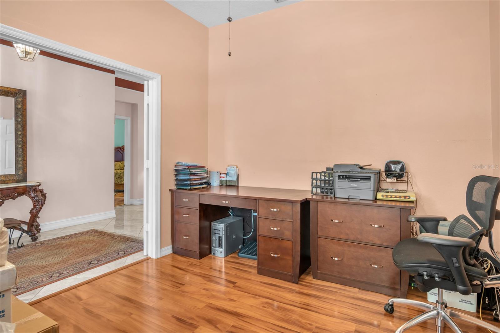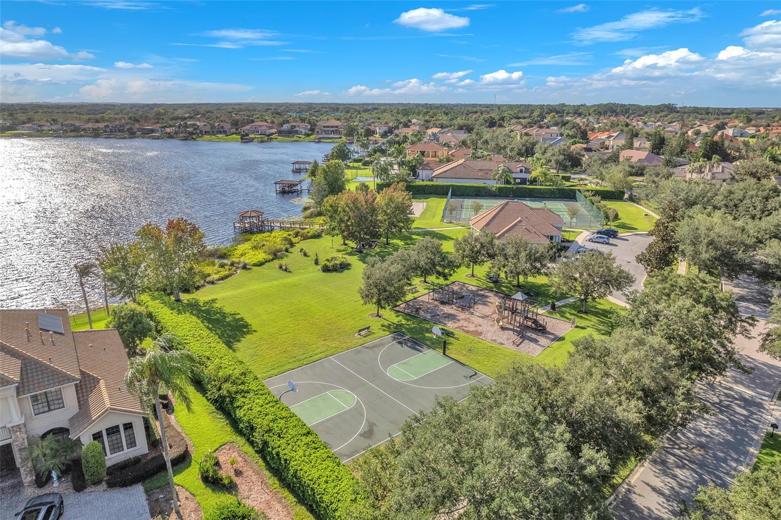Amazing opportunity to own a home in pristine & sought after Reserve At Belmere in Windermere, Florida…a 24/7 Guard GATED community…Two beautiful community LAKES...breathtaking sunsets at LAKE WHITNEY...elevating your FITNESS game in a GYM facing the lake…Volleyball court, tennis court, basketball court, playground & park are other great amenities to mention!...This home is MOVE IN ready with lots of upgrades…it offers 2 MASTER BEDROOMS, a primary & an EN-SUITE…it’s 3 WAY SPLIT…lots of PRIVACY in this model…NO CARPET here, LAMINATE flooring in ALL bedrooms & 24x24 marble like PORCELIAN TILE in other areas…beautiful DOUBLE front doors invite you to foyer area & a large OFFICE/DEN (could be the 5th bedroom) with French doors…primary bedroom is located on the opposite side, leading to formal living & dining room area…Master bedroom offers sliding doors to the covered patio, his & hers walking closets & French doors for more privacy to the master bathroom…great size KITCHEN offers a large ISLAND with cabinets, stainless steel appliances, (natural GAS for range, dryer & water heater), GRANITE counter tops, pendant lighting & a nice size pantry…Eat-in-kitchen space keeps everyone together...2 bedrooms with a full bathroom are on one side & the en-suite is towards the back of the building…the en-suite bathroom has a private door to the backyard...High ceilings, very spacious, lots of natural light & practical layout makes this well maintained home so cozy and enjoyable…a Lovely Home in a High end neighborhood...GREAT LOCATION, CONDITION & PRICE! Let’s view it before it’s gone!