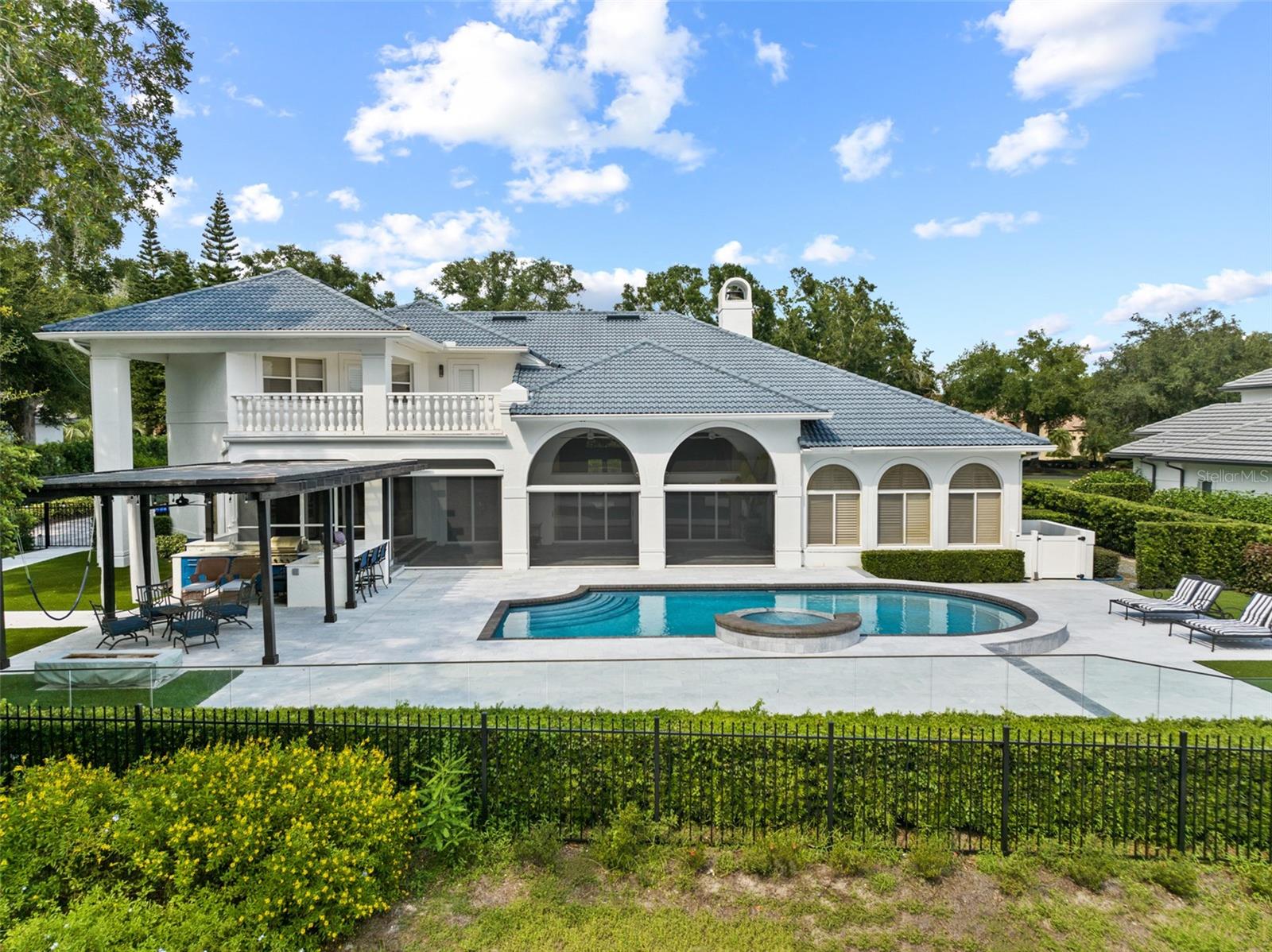 Breathtaking lake and golf views abound from this majestic residence, perched on the #2 hole of Isleworth’s championship golf course with the backdrop of Lake Chase just beyond, inside the secured and guarded gates of one of the world’s most prestigious private golf club communities. Be among the first to experience the completely renovated golf course, which just reopened in 2025. This expansive home with a grand entrance and Great Room stands supreme for its open concept floorplan, large kitchen with cooktop island, and mammoth first-floor primary retreat with reimagined and expanded fashionable closet. Two secondary ensuite bedrooms are located upstairs – both with balcony access. Upgrades within the last few years include: new septic tank, new hardscape and landscape, new pavers in driveway and pool area, new garage floors and garage doors, fresh paint job, turf in the backyard, glass wall, updated summer kitchen with new granite, new grill, pizza oven, sink and lights, resurfaced pool and new pool heater, 15 feet backyard extension to the left of the property, new planters, new fencing, new retractable screens, new kitchen dishwasher, led stair lights, new primary wing HVAC unit and tankless hot water heater. Captivating views are the hallmark of luxury living inside this well-appointed residence. The 600-acre Isleworth community, surrounding the Butler Chain of Lakes, is a residential enclave that sets the standard of excellence for Central Florida living. On-site home services are available for a carefree lifestyle. Isleworth Golf and Country Club, which is located within the community, offers various membership opportunities and is recognized as one of the Top 100 Platinum Clubs of the World.