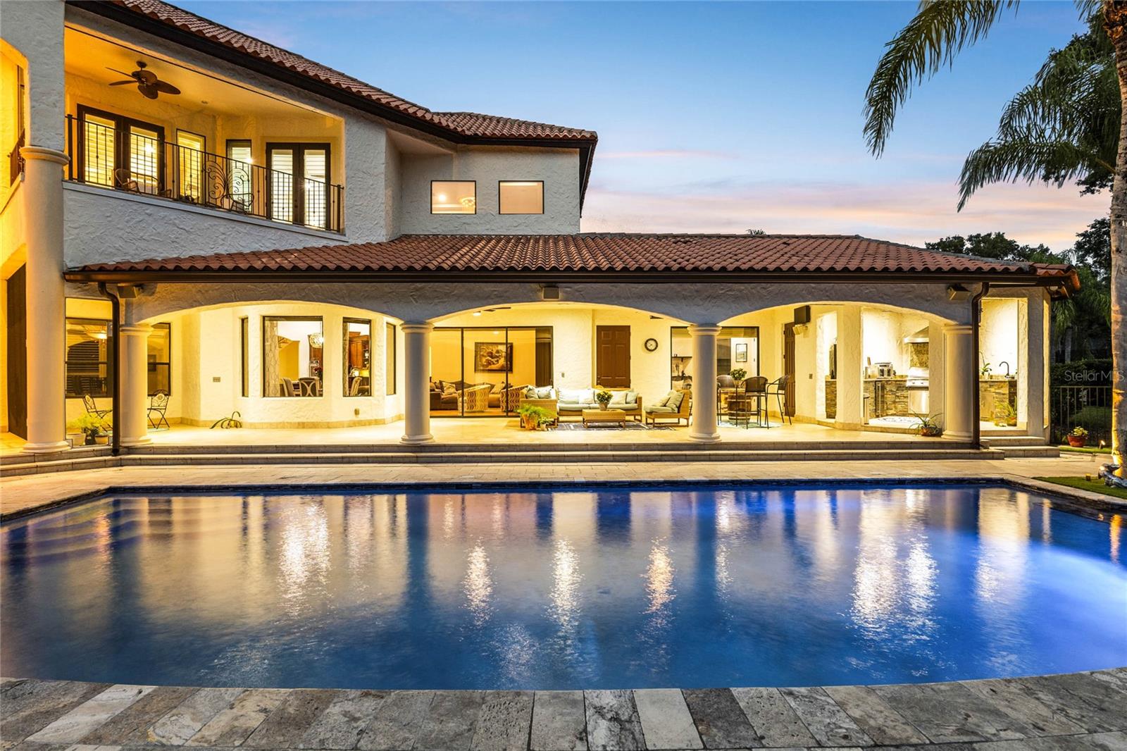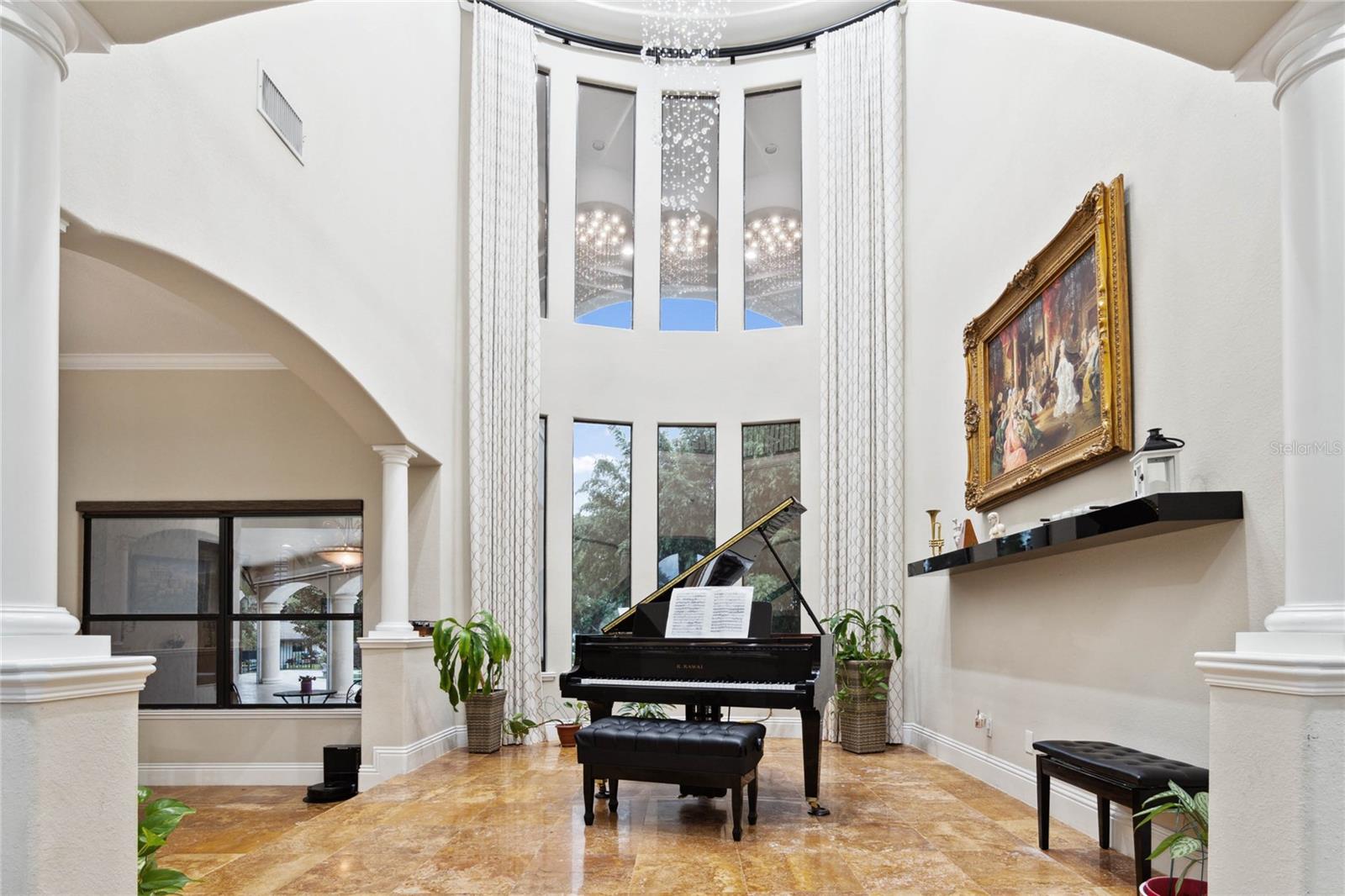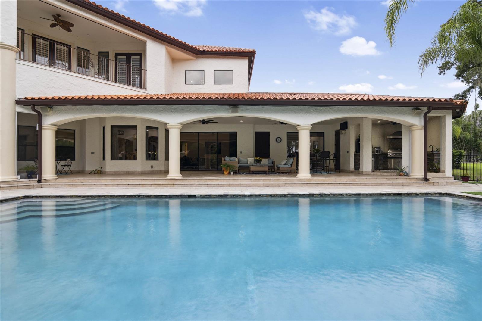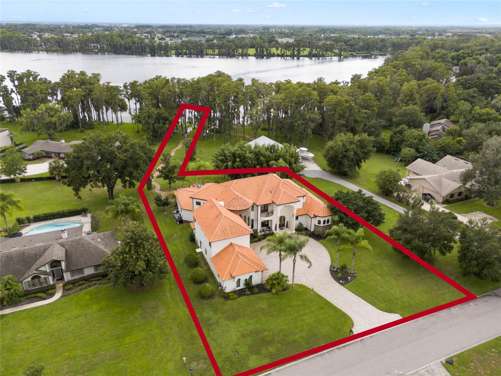 Welcome home to Windermere's hidden gem community of Kelso on Lake Butler where quiet, tree-lined streets lead to this beautiful secluded custom estate offering luxury living with gorgeous water views! Situated on over an acre this elegant home is uniquely sited between two ski lakes offering 20 feet of private shoreline on CYPRESS LAKE and access to the renowned BUTLER CHAIN OF LAKES with a private community boat ramp located right across the street from this home! Enjoy gorgeous sunsets and private Disney fireworks every night from the privacy of your own backyard! You’ll be captivated the moment you arrive, with the home’s stunning curb appeal showcased by a massive brick-paver driveway and 4-car garage! Step through the custom mahogany double-entry doors into a space where soaring ceilings, polished travertine stone floors, and floor-to-ceiling windows welcome in Florida's natural light and showcasing breathtaking lake views all through out the home. Experience resort-style outdoor living to the fullest! The private backyard oasis features a sparkling pool and spa, spacious covered lanai with remote-controlled retractable screens, outdoor summer kitchen, wood-burning fireplace, adjacent fire pit, brand-new outdoor sauna and a stone pathway with landscape lighting leading you to your private dock makes this home the perfect place to unwind and enjoy Florida living. The Chef’s kitchen is complete with custom cabinetry, a large prep island, granite countertops, walk-in pantry, and stainless steel appliances. The kitchen flows seamlessly into the casual family space, inviting friends and family to gather with an adjacent wet bar space for easy entertaining. The downstairs master suite offers privacy and elegance, featuring its own gas fireplace, two walk-in closets, and an ensuite with a garden tub, large shower and separate dual vanities. Two additional ensuite bedrooms are conveniently located on the first level. One of the home's most unique features is the stone turret staircase, which leads to three additional ensuite bedrooms and to a huge bonus room with unlimited possibilities of a playroom, home theater or teen hangout. This home is conveniently located to the 429 Expressway, downtown Windermere and Winter garden, shopping, restaurants, zoned for top rated schools and several nearby private schools and very close to Disney! Call today to schedule your private showing!