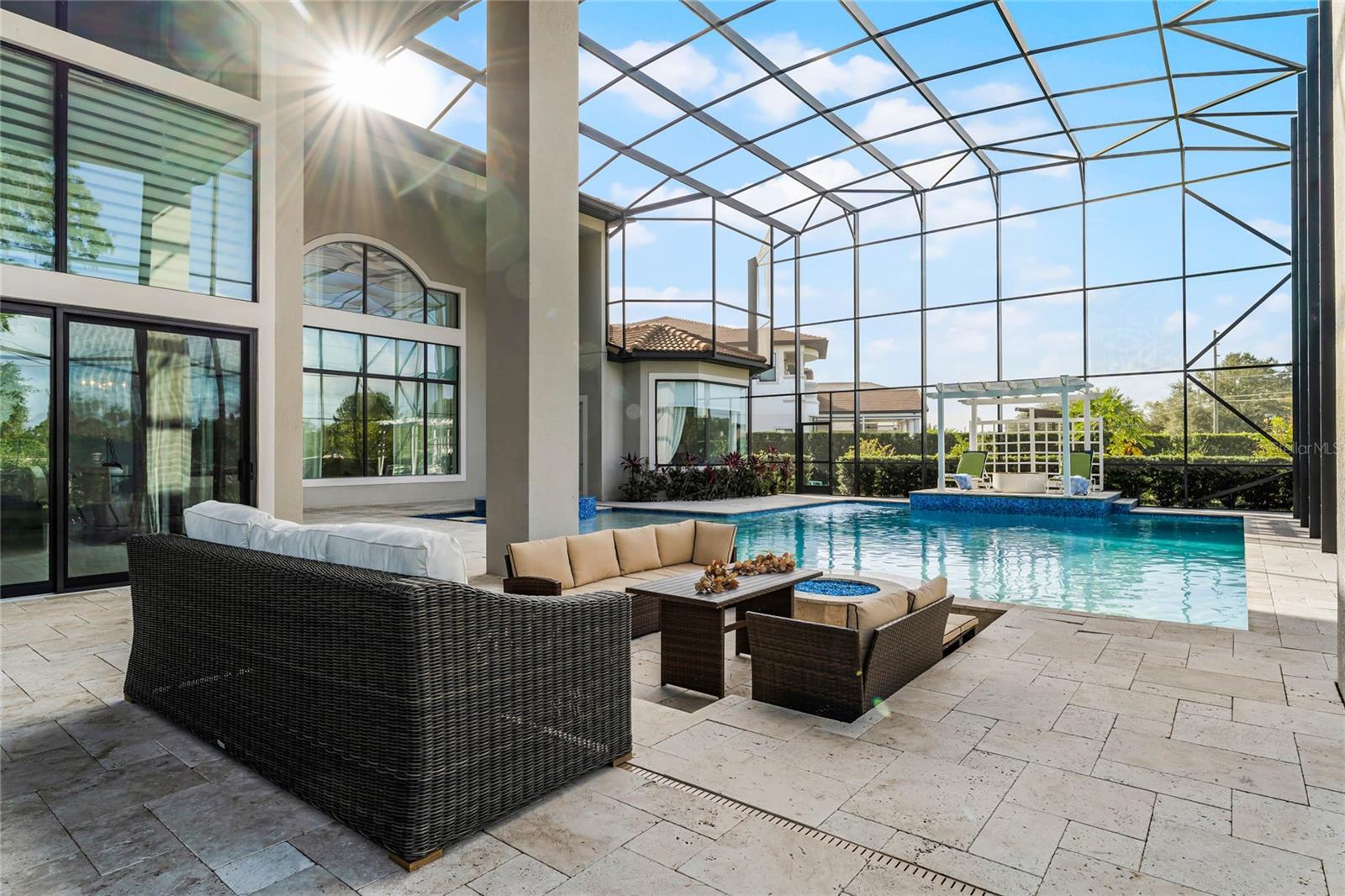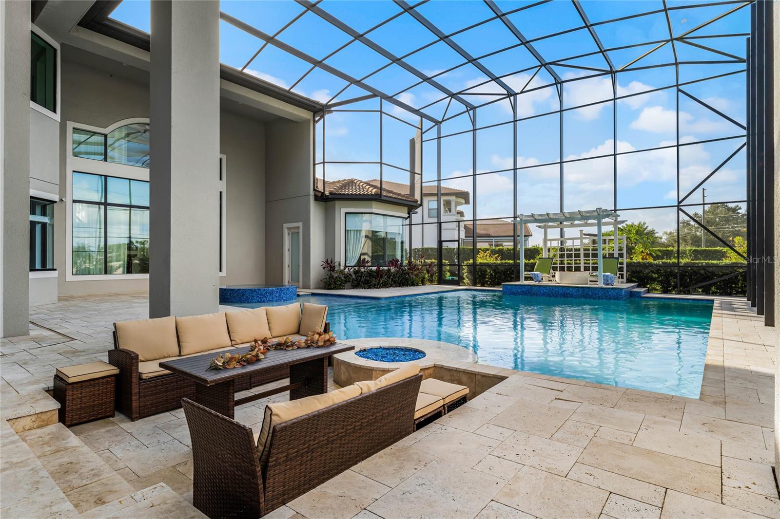 Welcome to this luxury gated community in Windermere that’s known as Casabella ! Thoughtfully designed to offer both grandeur and comfort, the home welcomes you with soaring ceilings, expansive windows, and an abundance of natural light that flows throughout each room. The sprawling one acre backyard is spacious with the resort style pool, soothing spa and fully equipped summer kitchen that overlooks a vegetable and fruit garden . The main level features An enchanting primary suite on the main floor with gorgeous marble flooring with a bonus space for a sitting area or nursery or gym . Also , The main level features a sophisticated two story study or 6 bedroom perfect for working from home or quiet reflection. Luxurious finishes, open-concept living spaces, and seamless indoor-outdoor transitions create an ambiance of refined ease, making this property an entertainer’s dream. A beautiful chefs kitchen with Jenn -air appliances , gas cooktop range and a spacious island with sink ! Fresh paint in the dining room as well as a few of the upstairs bedrooms to a neutral softening color ! This home less than 8 years old with a tiled roof, a design paver driveway leading you to an ample four car garage ! Windermere is known for their top-notch golf courses, “A” rated schools , proximity to great restaurants , as well as easy access to highways with great parks and beaches !