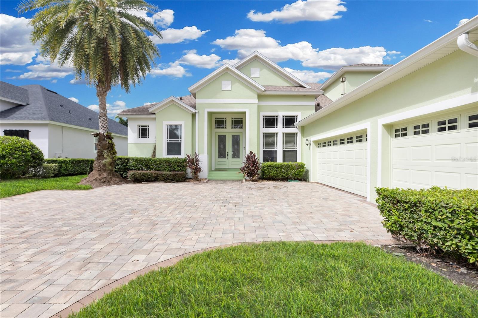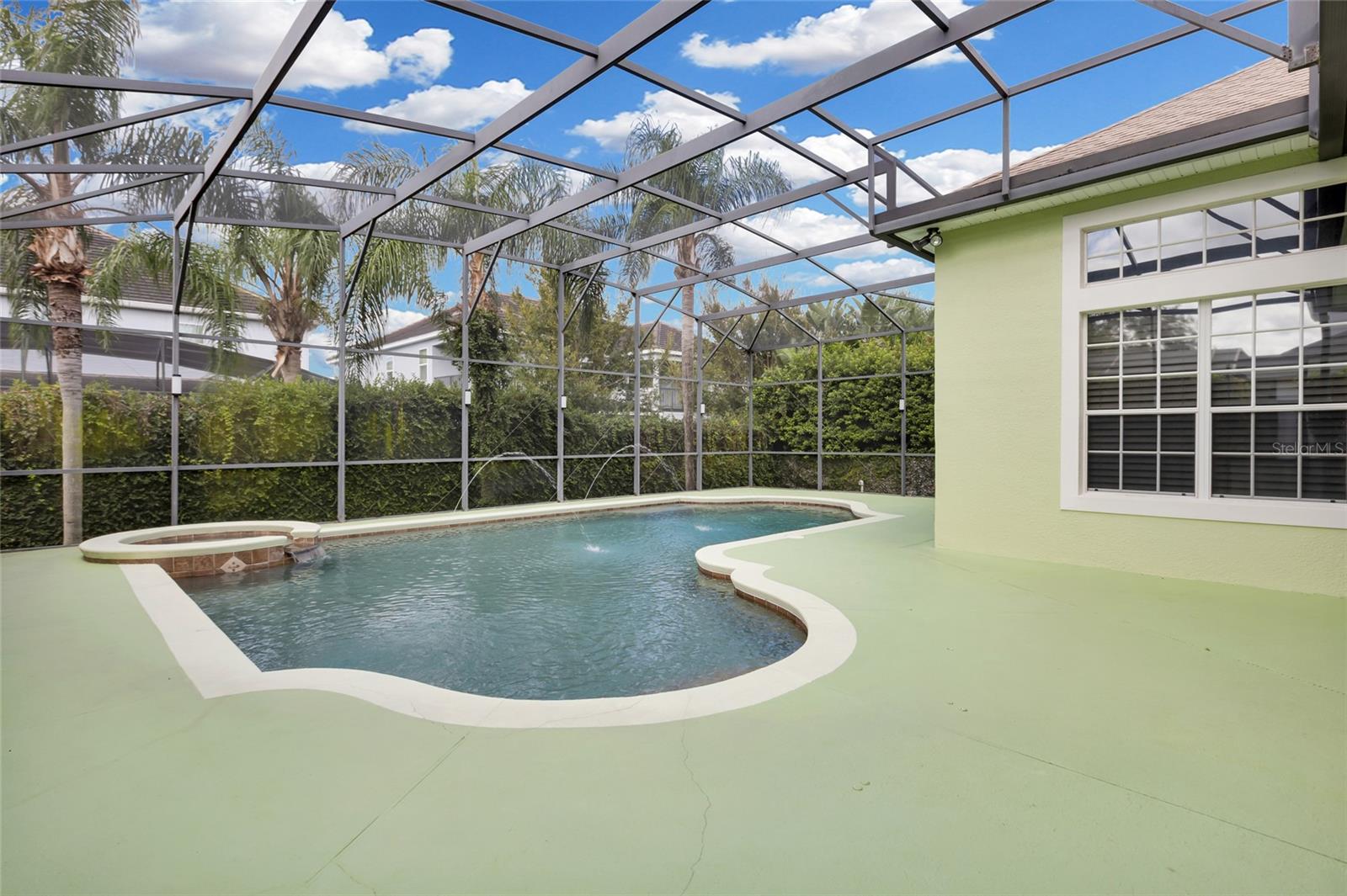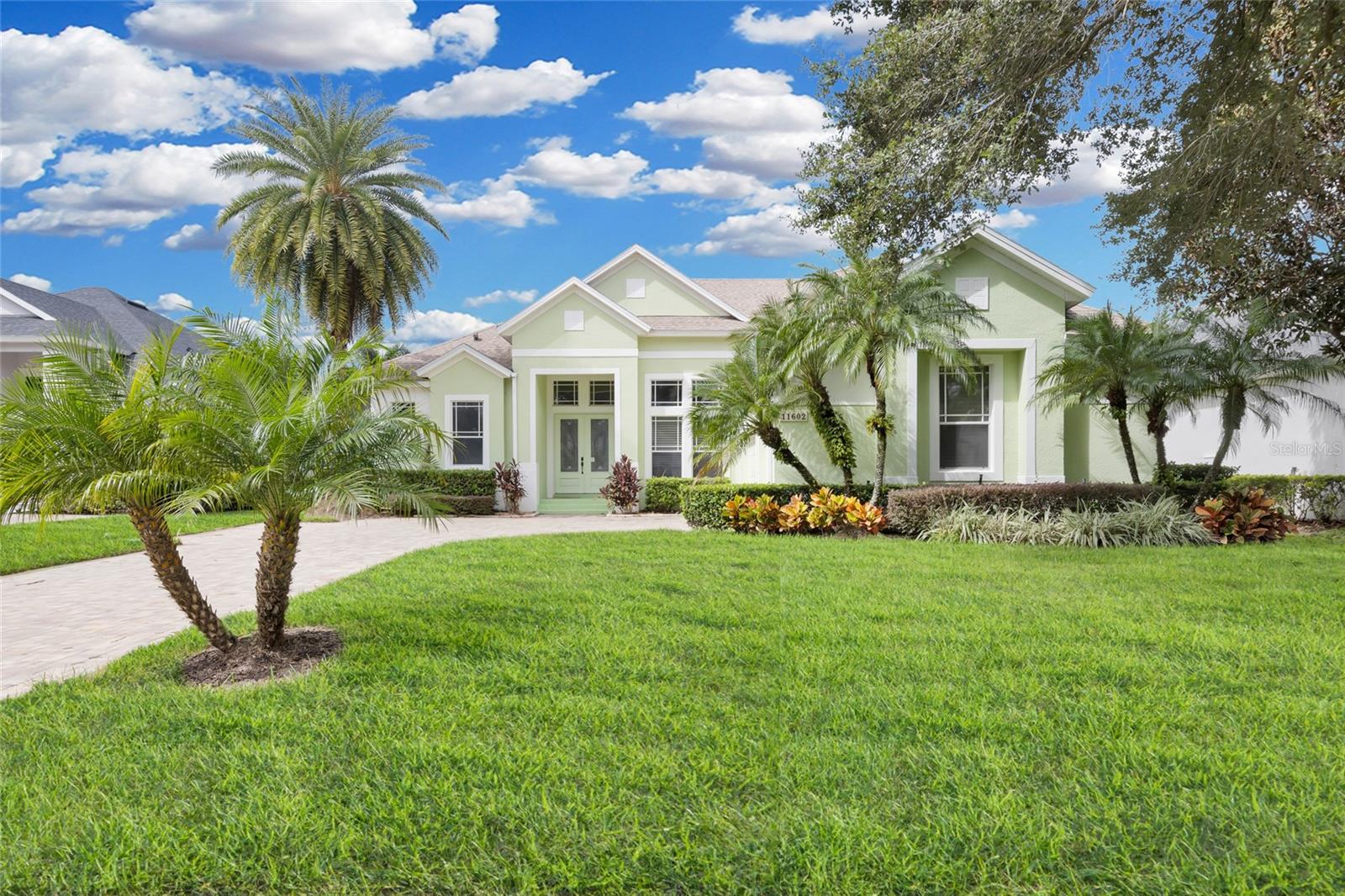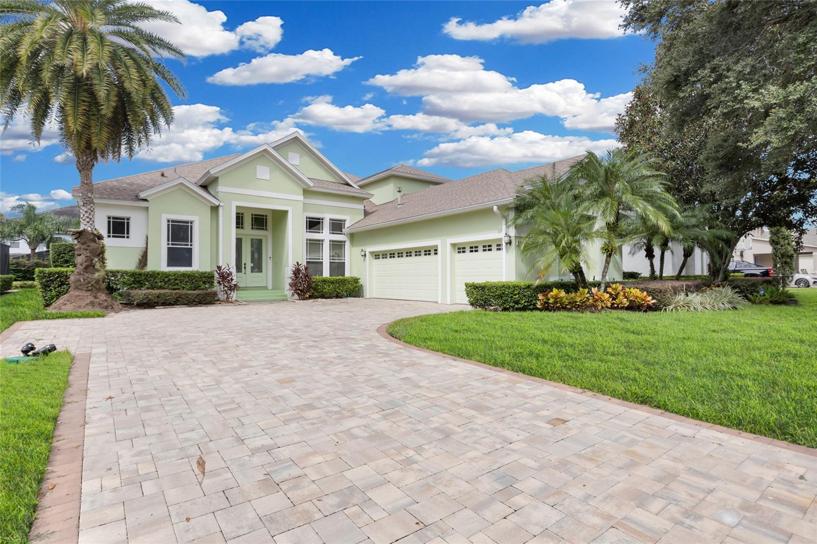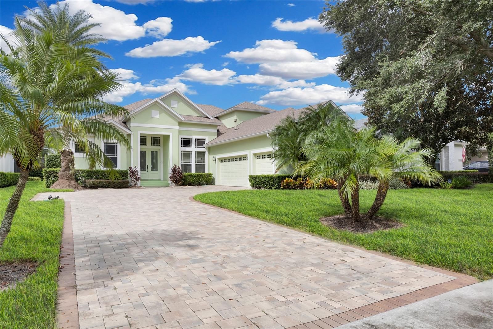 Keene's Pointe - Gated/24-hour attended community centered around The Golden Bear Club, an 18-hole golf course designed by Jack Nicklaus featuring golf, tennis, fitness, swimming and dining. This sought after Glenmore model offers 5 bedrooms, 4 baths, formal living and dining rooms, spacious kitchen and family room and upstairs bonus area with 5th bedroom and bath. The first floor features beautiful rustic hardwood flooring throughout, and a split bedroom floor plan. The owner's suite is privately situated on one side of the house and offers an updated bath with large shower, soaker tub and dual vanities with storage, as well as a walk-in closet. The other three bedrooms downstairs are located on the opposite side of the home, two with shared bath and the fourth with separate bath that doubles as the pool bath. The kitchen has been updated and is open to the spacious family room and offers 42" cabinets, breakfast bar, island, and lots of storage. The upstairs has a large bonus room, full bath and fifth bedroom - perfect for guests. Off the family room is the oversized swimming pool and spa with pebbletec finish, new Aqua Cal heater and screen enclosure, and large lanai - perfect for entertaining. The back yard has a fenced area with turf, perfect for pets. The roof was replaced in 2023 and new water heater in 2024. There is also an oversized 3-car garage with extensive overhead storage, epoxy flooring and paved driveway. There are many other great features in this home just waiting for you to see. Call for your private viewing today.