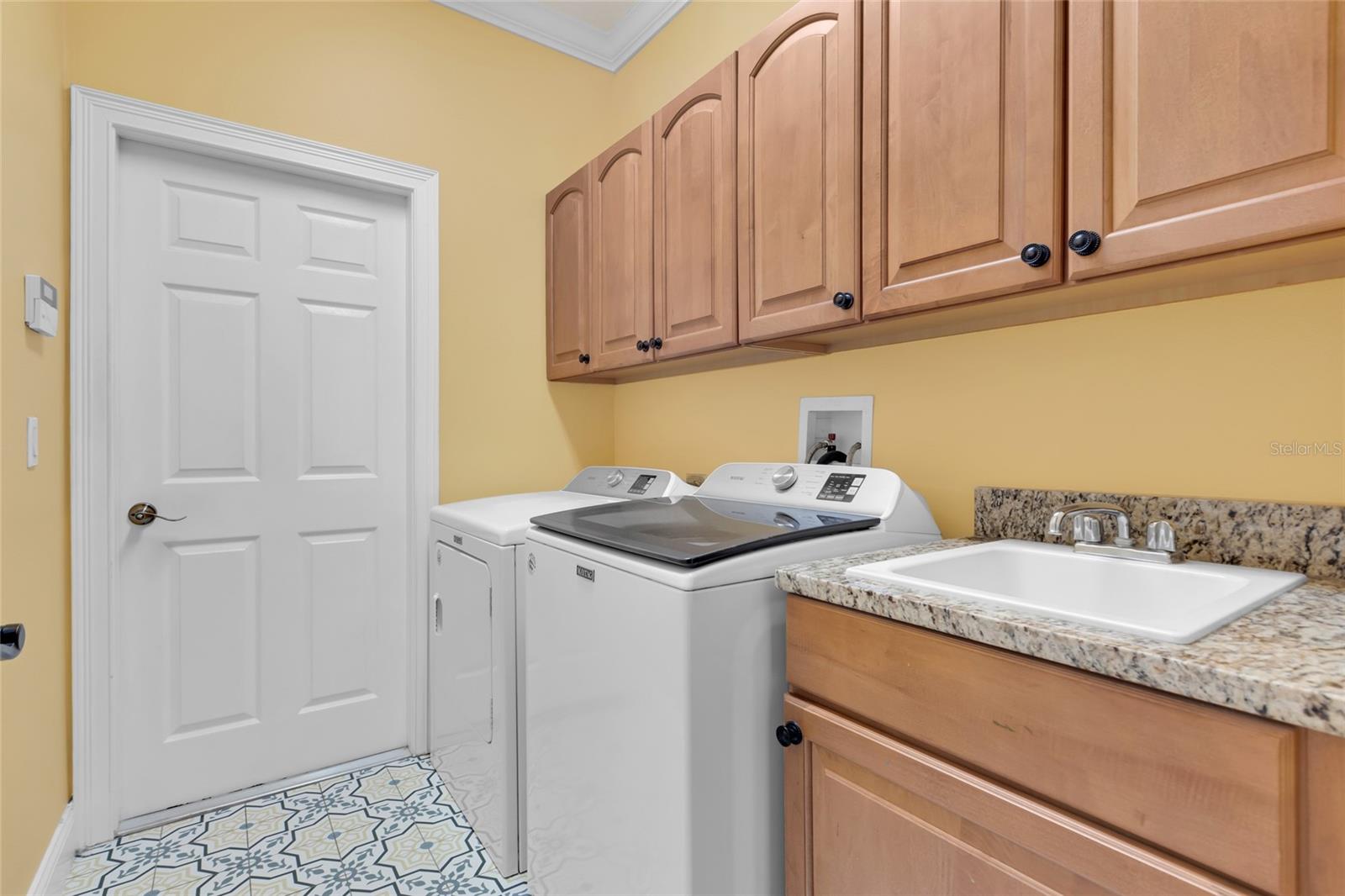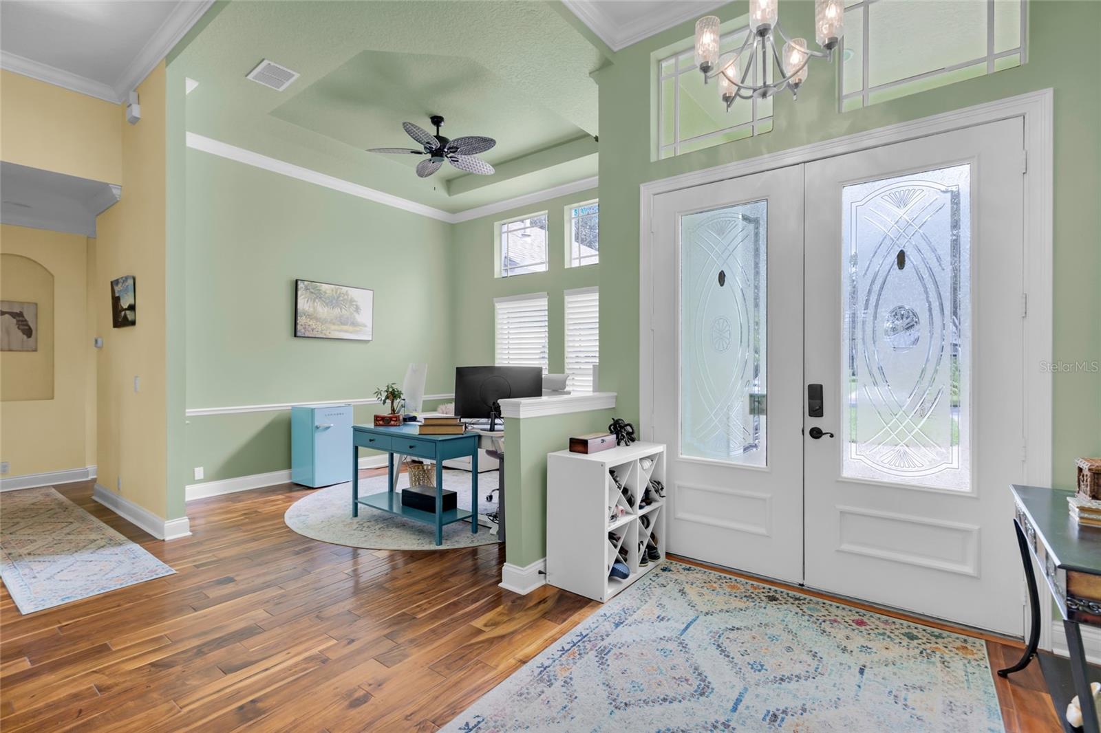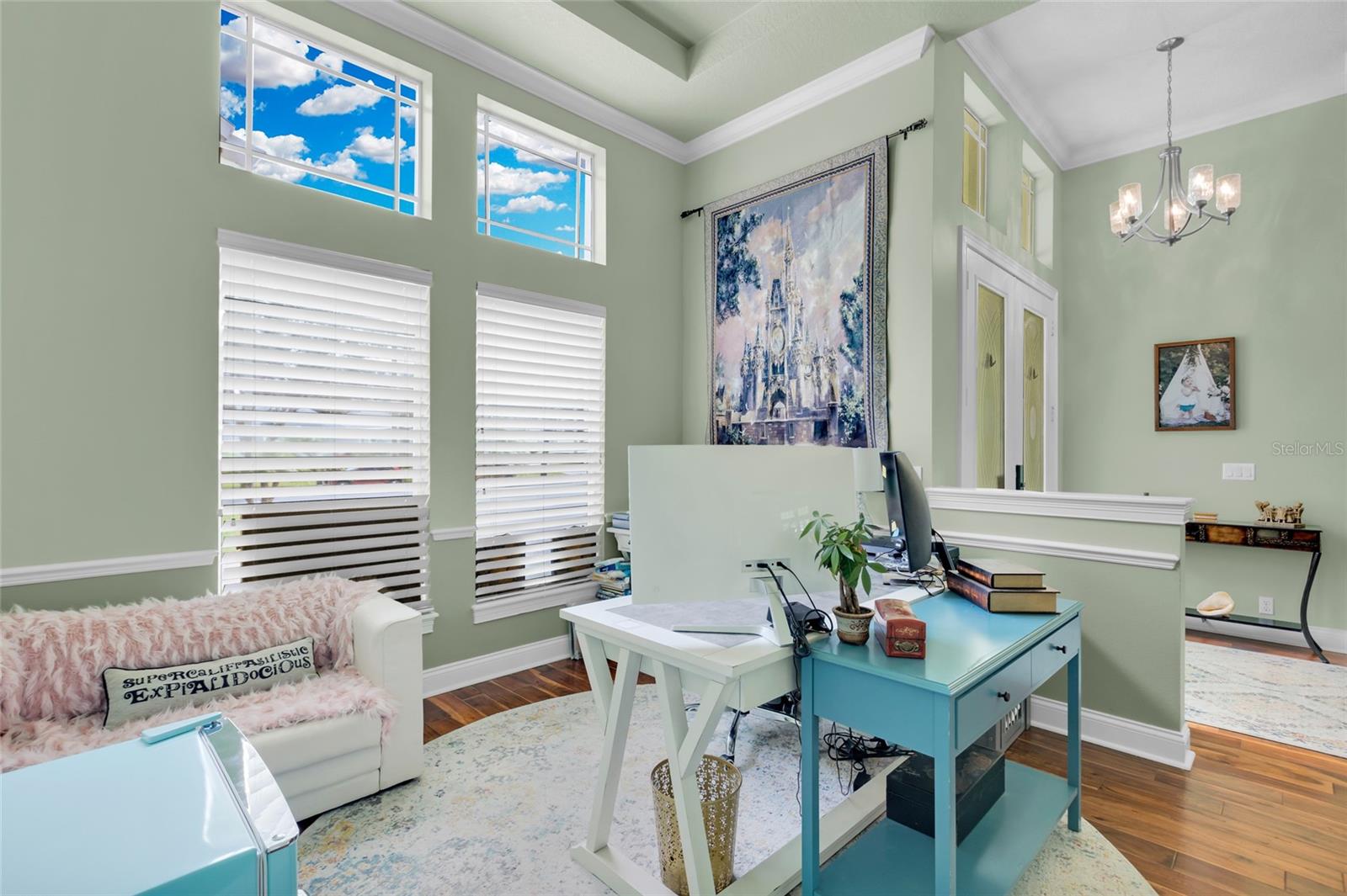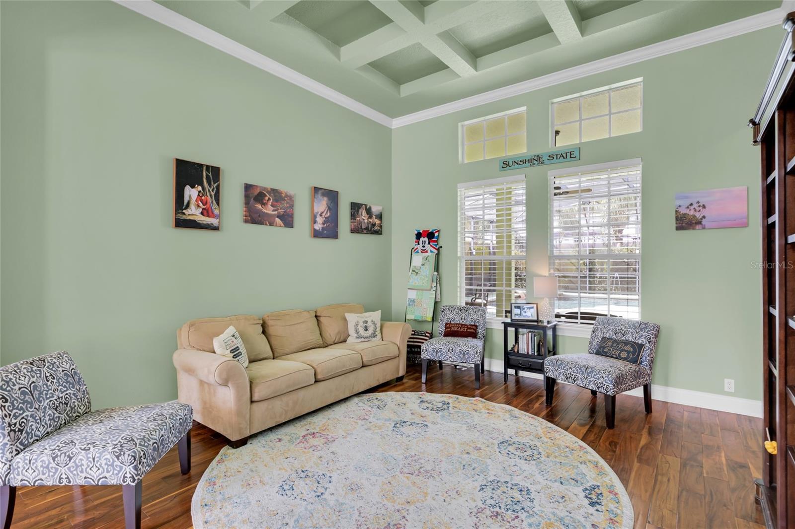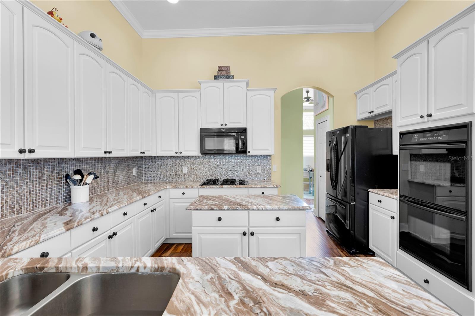 Keene's Pointe - Gated/24-hour attended community centered around The Golden Bear Club, an 18-hole golf course designed by Jack Nicklaus featuring golf, tennis, fitness, swimming and dining. This sought after Glenmore model offers 5 bedrooms, 4 baths, formal living and dining rooms, spacious kitchen and family room and upstairs bonus area with 5th bedroom and bath. The first floor features beautiful rustic hardwood flooring throughout, and a split bedroom floor plan. The owner's suite is privately situated on one side of the house and offers an updated bath with large shower, soaker tub and dual vanities with storage, as well as a walk-in closet. The other three bedrooms downstairs are located on the opposite side of the home, two with shared bath and the fourth with separate bath that doubles as the pool bath. The kitchen has been updated and is open to the spacious family room and offers 42" cabinets, breakfast bar, island, and lots of storage. The upstairs has a large bonus room, full bath and fifth bedroom - perfect for guests. Off the family room is the oversized swimming pool and spa with pebbletec finish, new Aqua Cal heater and screen enclosure, and large lanai - perfect for entertaining. The back yard has a fenced area with turf, perfect for pets. The roof was replaced in 2023 and new water heater in 2024. There is also an oversized 3-car garage with extensive overhead storage, epoxy flooring and paved driveway. There are many other great features in this home just waiting for you to see. Call for your private viewing today.