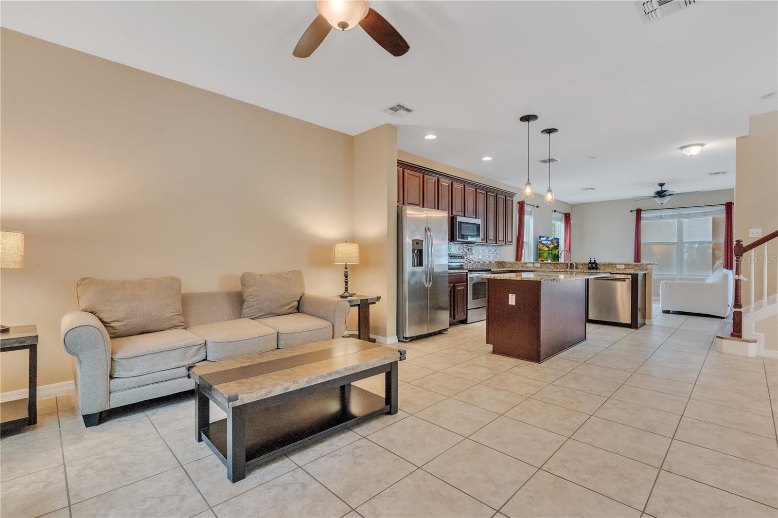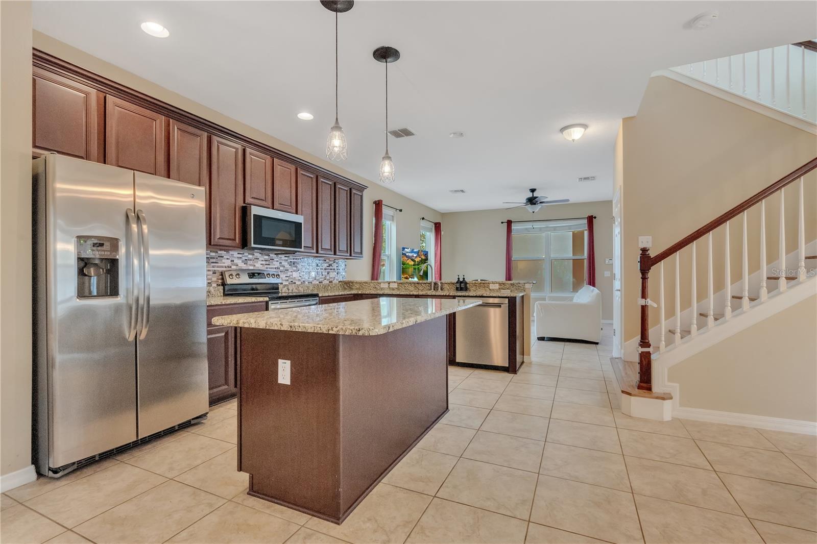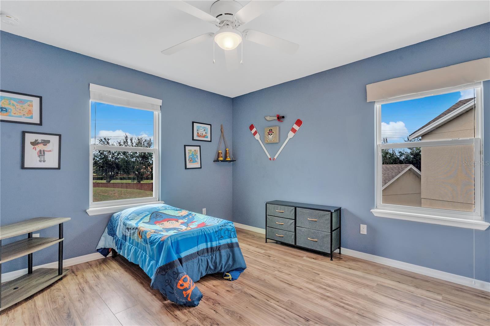 Welcome to Windermere Lakes: A Premier Community! We are pleased to present this exquisite two-story home situated on an oversized lot within the highly sought-after Windermere Lakes community. This property features a spacious fenced backyard, perfect for the addition of a private pool. Upon entering, you will be captivated by the open layout of the main floor, which seamlessly connects the family room, kitchen, living room, and dining area—all adorned with beautiful ceramic tile. The kitchen is a chef's dream, featuring expansive 42" wood cabinets, granite countertops, and ample storage, including a generous kitchen island ideal for meal preparation and entertaining. Additionally, a large walk-in pantry offers even more convenience. Step outside to the expansive back patio, which overlooks the vast, fenced backyard, providing an ideal setting for outdoor gatherings. On the second floor, you will find thoughtfully designed split bedrooms, a convenient laundry room, and a versatile loft area. The owner's retreat is impressively spacious, featuring a large walk-in closet and a luxurious spa-like bathroom, complete with a double sink vanity and a walk-in shower. The upstairs is finished with elegant luxury vinyl plank flooring, ensuring a carpet-free environment throughout the home. The community boasts exceptional amenities, including a community pool, cabana, playground, recreation area, and a dog park. Ideally located near Keene’s Point and the Golden Bear Golf and Country Club, residents can enjoy the beauty of the Butler Chain of Lakes. Shopping and dining options are just minutes away, and top-rated public schools, including Windermere Prep, are conveniently located within 1.5 miles.
