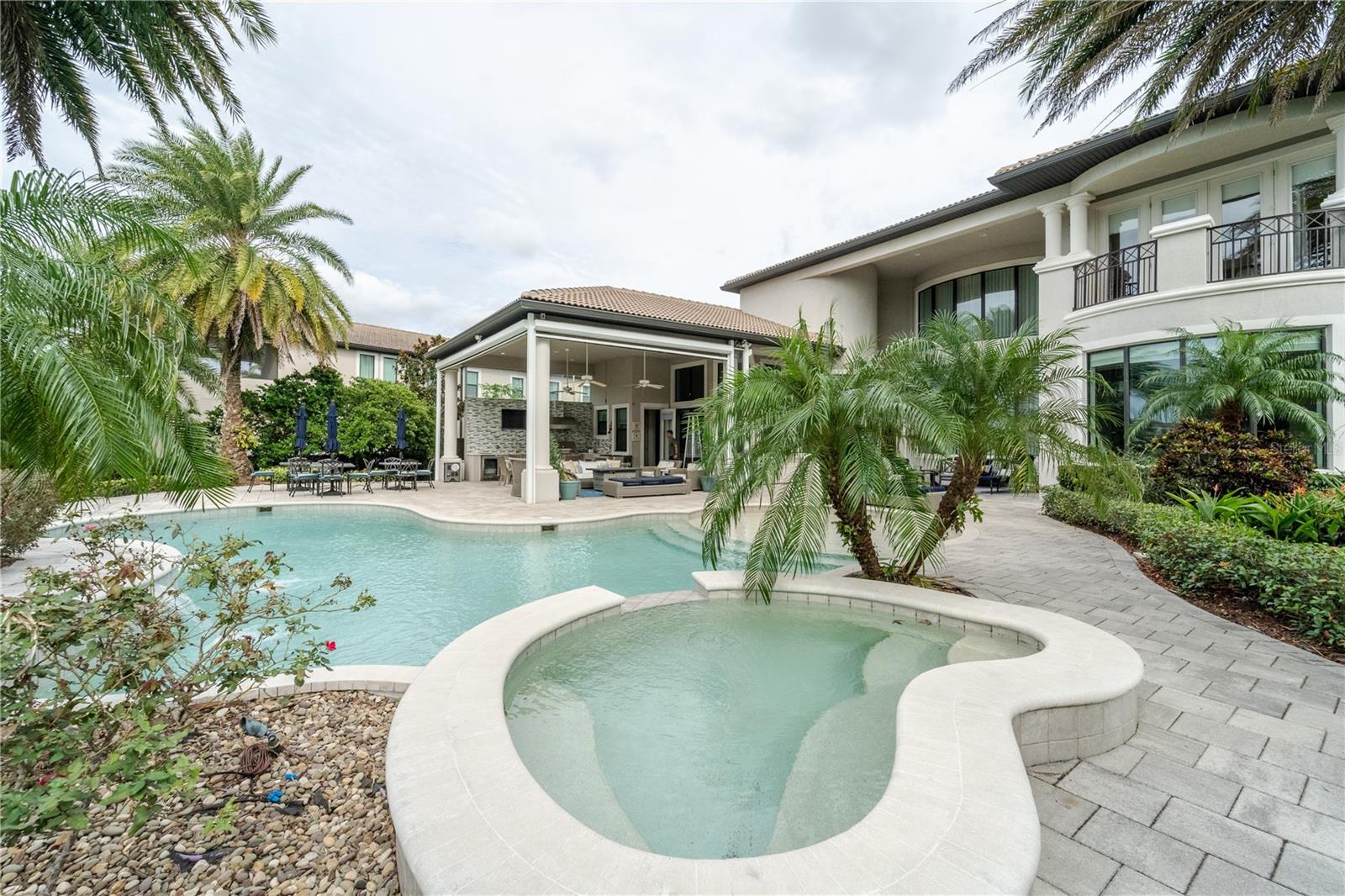 Welcome to 4236 Isabella Circle, an exquisite estate located in the Casabella community in Windermere. This luxurious home combines elegance, comfort, and sophistication, providing a tranquil retreat in one of Florida’s most sought-after neighborhoods. As you enter, you are greeted by a grand foyer that sets the tone for the impeccable design throughout the home. The gourmet kitchen has state-of-the-art appliances, perfect for any culinary enthusiast. The main suite serves as a private sanctuary, featuring a spacious walk-in closet. Property has privety WELL for irrigatiuon system, also GENERATOR. This corner lot, situated on nearly an acre, is one of the largest in the community. It offers ample green space and a beautiful sunrise view in front of the house. The rear of the home boasts a resort-style saline pool and spa, as well as picturesque views of the pond, making it a perfect spot to enjoy sunsets. All bathrooms have been renovated with high-quality porcelain tile, adding a touch of elegance. The summer kitchen area features automatic screens for added convenience. A small space of the property has been utilized by the owner for soccer, providing an enjoyable space for outdoor activities. Additional amenities include a generator, a pre-wired water filter, and a dedicated well for lawn irrigation. Beyond the home's undeniable charm, Casabella offers security and a prime location with easy access to top schools, luxury shopping, and fine dining options in Windermere and the greater Orlando area.