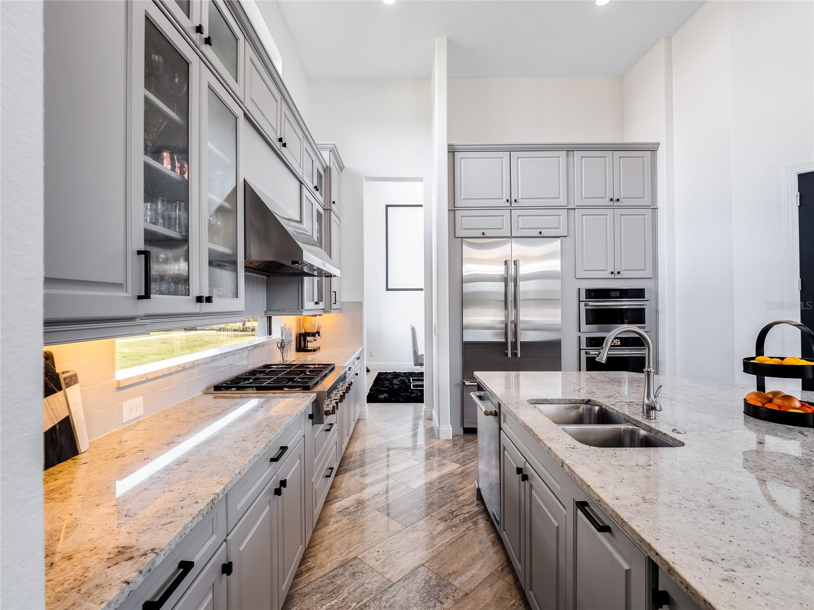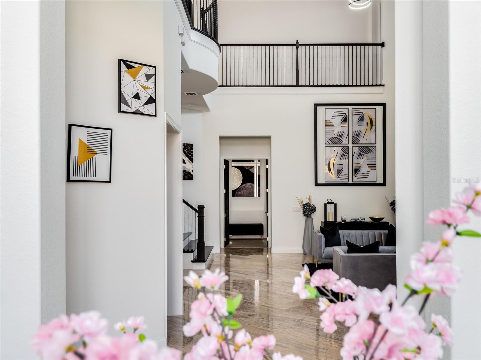 This exceptional residence, built by Toll Brothers in 2019, is nestled within Casabella, which is located in the prestigious Windermere. This exclusive neighborhood combines privacy, expansive homes on generously sized lots, and a lifestyle defined by luxury and comfort. Situated just minutes from the vibrant downtown areas of both Windermere and Winter Garden, residents enjoy the perfect balance of seclusion and convenience. As you enter this gated community, you are immediately greeted by meticulously manicured landscapes and an undeniable sense of tranquility. The home itself makes a striking first impression with its expansive driveway, leading to over 5,400 square feet of thoughtfully designed living space. Inside, the home offers a wealth of high-end features, including state-of-the-art APCO Fresh Air UV filtration systems installed on each of the three A/C units, ensuring optimal air quality and comfort. Upon entering, you are welcomed into a grand formal great room, complete with polished marble floors, soaring 25-foot ceilings, and floor-to-ceiling windows that flood the space with natural light and offer picturesque views of the private backyard, pool, and spa. Adjacent to this space, a beautifully designed wet bar with a wine cellar wall offers the ideal setting for entertaining or intimate gatherings. The first-floor primary suite serves as one of two luxurious owner’s retreats in the home. It features large windows with views of the outdoor oasis, dual walk-in closets, and a flexible space that could be used as a private gym or serene retreat. The spa-inspired bath includes a separate soaking tub and shower, along with three vanities, ensuring both functionality and indulgence. Additionally, the first floor includes a spacious en-suite bedroom, a dedicated office/craft room, and a well-appointed laundry room, making this home ideal for both family living and professional use. The gourmet kitchen is a chef’s dream, equipped with top-of-the-line appliances, a large central island, and an abundance of cabinet space. Whether you’re preparing meals in the kitchen, enjoying casual dining in the breakfast nook, or hosting guests in the formal dining room, the flow of the home is perfect for any occasion. Upstairs, you’ll find the second owner’s suite, offering privacy and luxury with its own spa-like bath, as well as 2 additional bedrooms, each with its own en-suite bath, providing ample space for family or guests. For outdoor entertaining, the home features an expansive patio with an outdoor kitchen and full sitting bar that includes a never-used hibachi-style flat top grill, a gas grill with rotisserie spit rod, two refrigerators, and a well-appointed bar area. The space is further enhanced by surround sound, offering an elevated outdoor living experience. With plenty of room for customization, the hardscaped area is perfect for creating a personalized outdoor sanctuary. This home offers the perfect blend of luxury, privacy, and convenience, just moments from the heart of Windermere and Winter Garden, providing an unmatched living experience in one of Central Florida's most desirable locations.