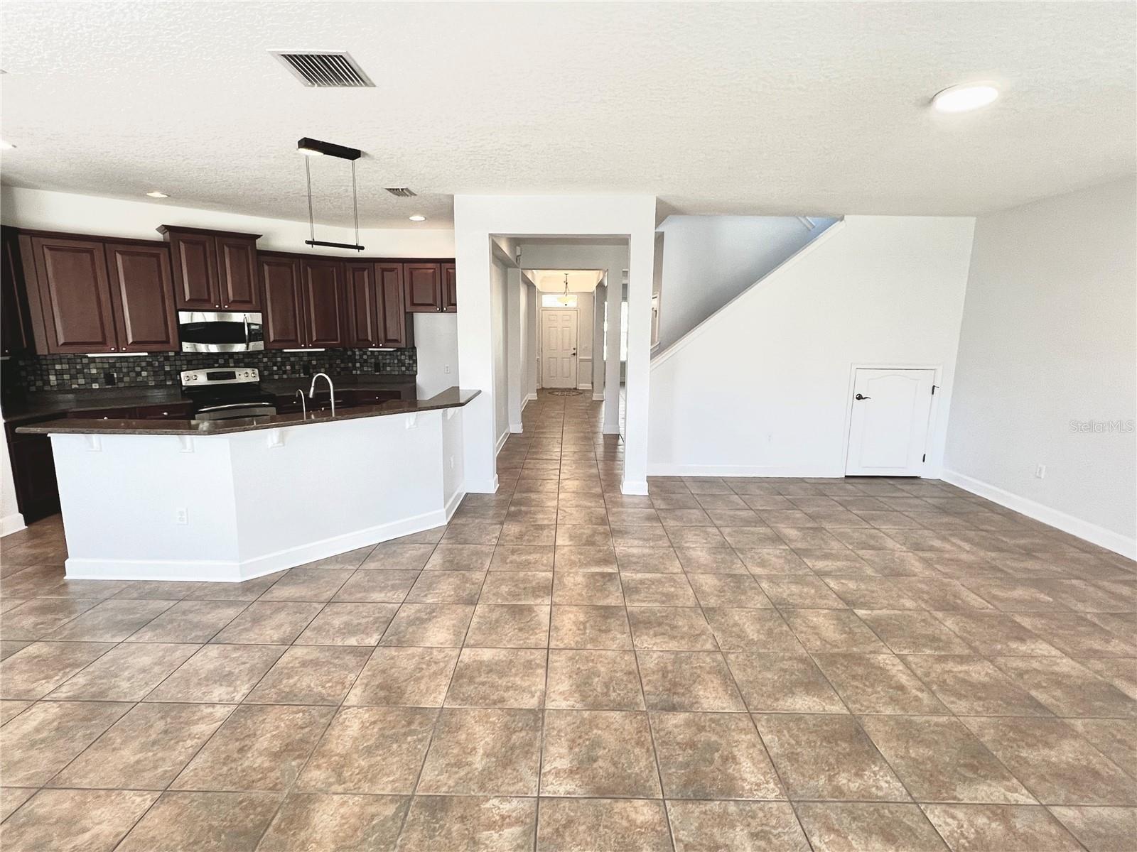 Welcome to this spacious 3,068 square foot two-story single-family home, located in the highly desirable community Lakes of Windermere! This home has 4 bedrooms and 2.5 bathrooms, with an attached 2-car garage. New fresh paint throughout the whole living space and all bedrooms. Brand new Vinyl flooring on the entire second floor. AC was replaced in 2017!! You will fall in love with this open floor plan when you step into the house. Tones of windows bring the natural light into the house. The big open great room connects with the open kitchen and living room dining area. The gorgeous cherry wood cabinets, granite countertops, all stainless-steel appliances. The water filter system is under the kitchen sink. There is a cute breakfast area next windows. A powder bath next to the laundry room on the first floor of the home. There is a screen cover lanai exit to the paved cover backyard, which features a fireplace, playground, and fully custom ready-made fishpond with filter systems, a lot of space where you can play on your own. Going to the upstairs, you will find a bonus or flex space that overlooks the family room. A double door made to a massive owner’s suite with upgrade a tray ceiling, an additional sitting area with impressive bay windows, there has owner walk-in closet, the master bathroom with dual sink vanity, full-wall mirrors, glass enclosed walk-in shower, separate shower tub, and a beautiful fancy wallpaper restroom. Three more bedrooms on the second-floor hallway share the second full bath, with a dual sink vanity and shower-tub combo. The community amenities include a clubhouse, community pool, playground, tennis court, beach volleyball court, soccer field, and Pine Loop Park. Convenient location close to the shopping, dining area, and school. This unique home you must see! Don’t miss out! Call for a showing today!
