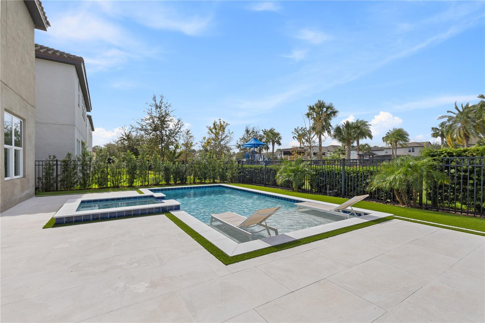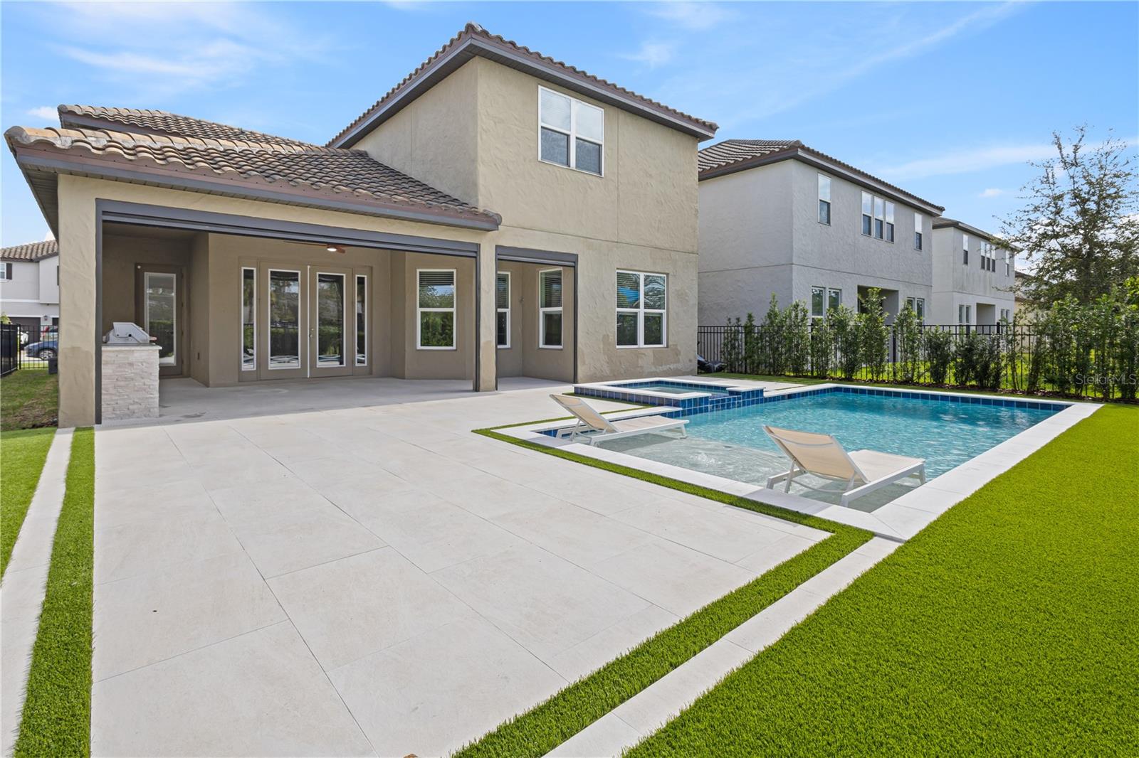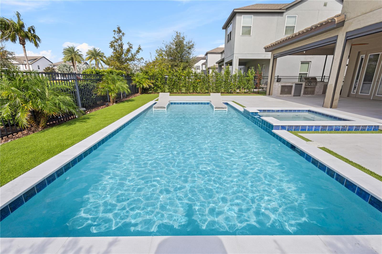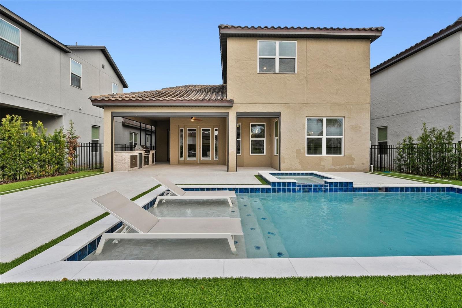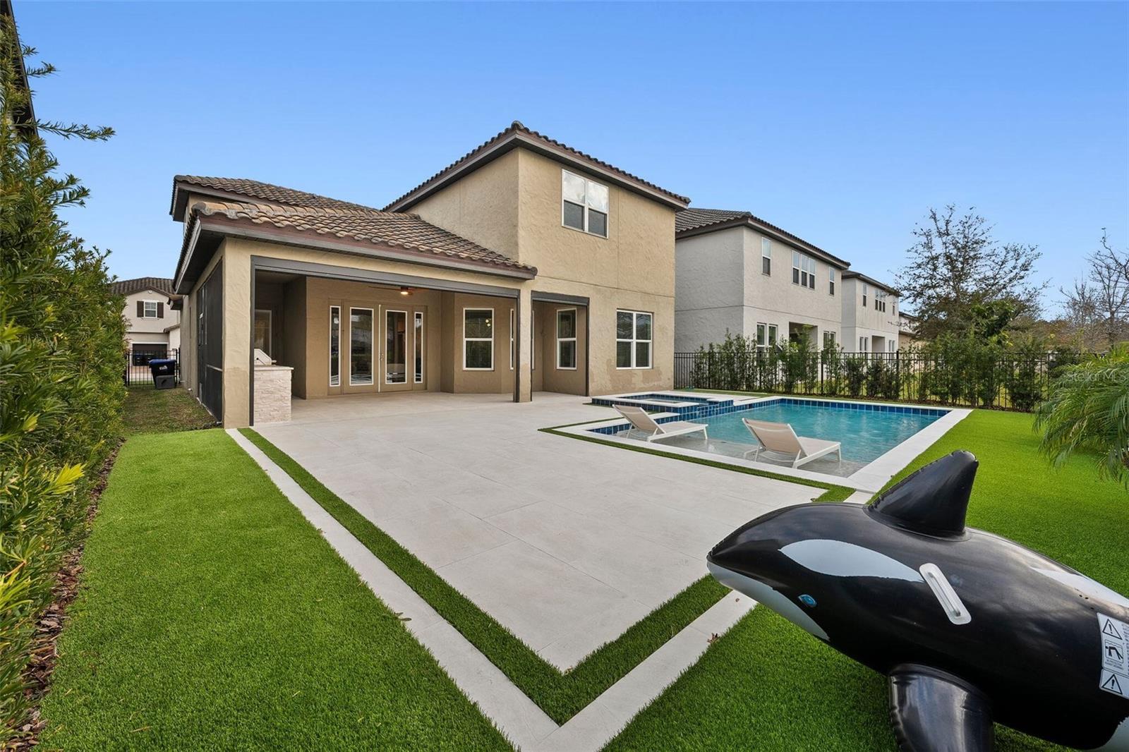 Discover this stunning 4-bedroom, 3.5-bathroom home in the highly desirable Westside Village community in Windermere! With vinyl plank flooring throughout and a fresh coat of paint, this home offers a modern and carpet-free living space. As you step inside, you'll be welcomed by a charming front porch and a spacious dining and living room combo—perfect for hosting and entertaining indoors. The home features a dedicated office space, ideal for working from home or as a quiet retreat. The open-concept family room flows seamlessly into a large kitchen, while French doors lead to an oversized lanai that overlooks a pool with a jacuzzi and a summer kitchen—perfect for outdoor gatherings and relaxation. Upstairs, the vinyl plank staircase guides you to the master suite, featuring his-and-her closets, dual sinks, and a walk-in shower conveniently located next to the laundry room. The additional bedrooms are thoughtfully designed with custom-made furniture and include an en-suite bedroom as well as two more bedrooms connected by a Jack-and-Jill bathroom, offering flexibility and comfort for families. Located in the heart of Windermere, Westside Village is just minutes away from lakes, dining, shopping, and A-rated schools. This community also offers exceptional amenities such as a resort-style pool, clubhouse, and playground. Built with energy-efficient features, this home helps you save on utility costs while enjoying a quieter, healthier lifestyle. Don’t miss out on this incredible opportunity—schedule a showing today!