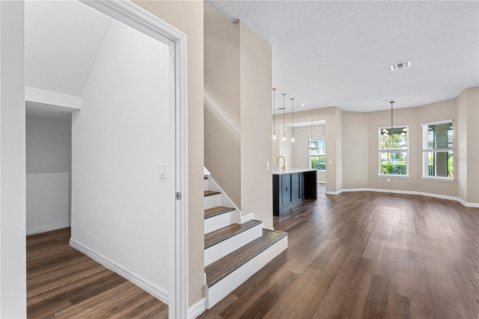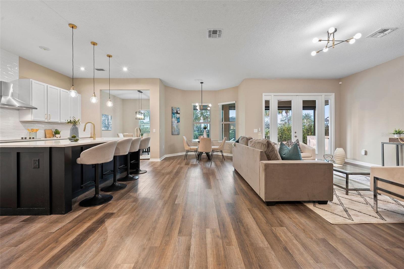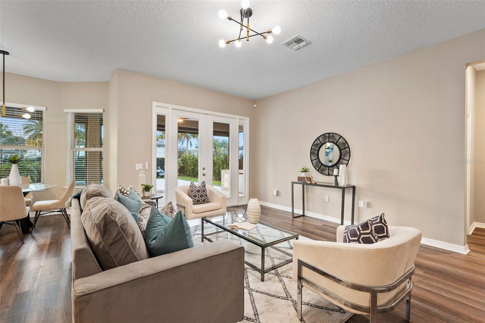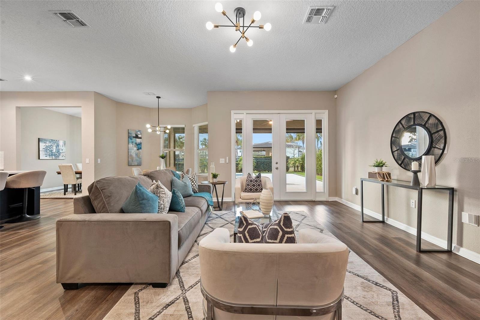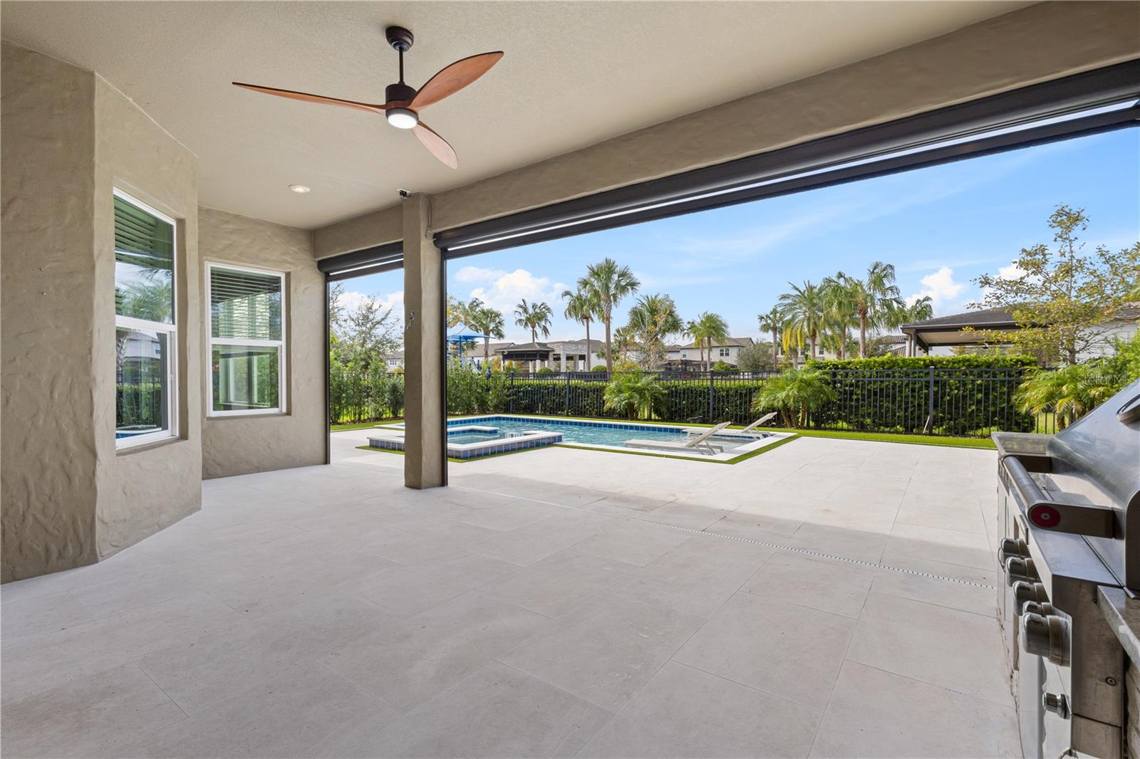 Discover this stunning 4-bedroom, 3.5-bathroom home in the highly desirable Westside Village community in Windermere! With vinyl plank flooring throughout and a fresh coat of paint, this home offers a modern and carpet-free living space. As you step inside, you'll be welcomed by a charming front porch and a spacious dining and living room combo—perfect for hosting and entertaining indoors. The home features a dedicated office space, ideal for working from home or as a quiet retreat. The open-concept family room flows seamlessly into a large kitchen, while French doors lead to an oversized lanai that overlooks a pool with a jacuzzi and a summer kitchen—perfect for outdoor gatherings and relaxation. Upstairs, the vinyl plank staircase guides you to the master suite, featuring his-and-her closets, dual sinks, and a walk-in shower conveniently located next to the laundry room. The additional bedrooms are thoughtfully designed with custom-made furniture and include an en-suite bedroom as well as two more bedrooms connected by a Jack-and-Jill bathroom, offering flexibility and comfort for families. Located in the heart of Windermere, Westside Village is just minutes away from lakes, dining, shopping, and A-rated schools. This community also offers exceptional amenities such as a resort-style pool, clubhouse, and playground. Built with energy-efficient features, this home helps you save on utility costs while enjoying a quieter, healthier lifestyle. Don’t miss out on this incredible opportunity—schedule a showing today!