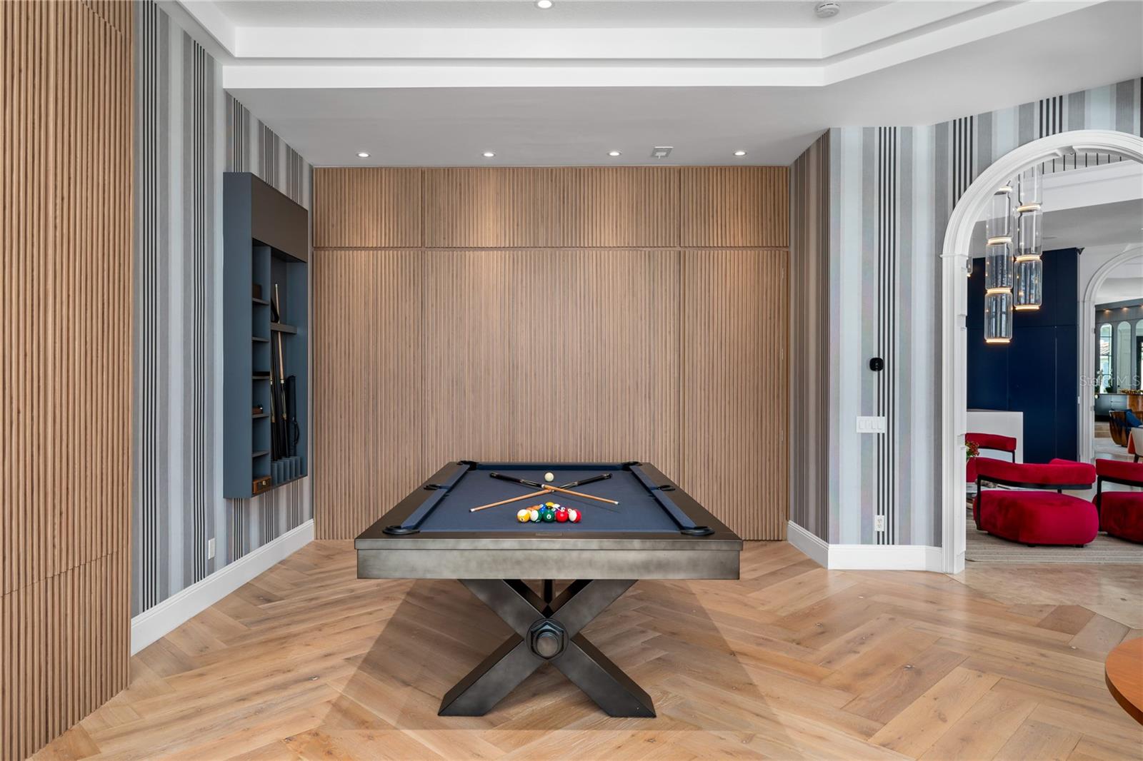 PRICE Improvenent!! Perfectly sited on pristine Lake Tibet in Keene's Pointe Country Club, this stunning lakefront Stonebridge custom home has been completely updated. The modern exterior color brightens the façade and creates a unique transitional style. The wrought iron and glass doors add a refined entry. Opening to the two-story formal areas featuring timeless elements of stone flooring, elegant ceiling details, clerestory windows, and expansive lake views set a modern tone. At the center of the home, the kitchen is a chef's dream; stone flooring and a massive working island, state-of-the-art appliances combine function and beauty with double ovens, exotic granite, stunning glazed custom cabinetry, and a huge walk-in pantry. The gourmet kitchen opens naturally to the family gathering areas, complete with sparkling lake views. A fireplace shares the media wall with a built-in entertainment center, while French doors give access to the outdoors. Just off the family area, the game room is finished with a beautiful bar area. The state-of-the-art home theatre is located just off the game room. Entertain outdoors in true Florida style; the outdoor gourmet area was added in 2019, including a large bbq grill area, massive dining/working island, wine cooler, XL Fridge as well as a pizza oven. The free-form pool, heated spa, and boat dock with lift. The master suite is private with huge master closet and beautifully finished master bath. All secondary bedrooms are ensuite. All baths have been updated. The entire home has been freshly painted and all carpet has been replaced. The detached guest house is great for extended family.