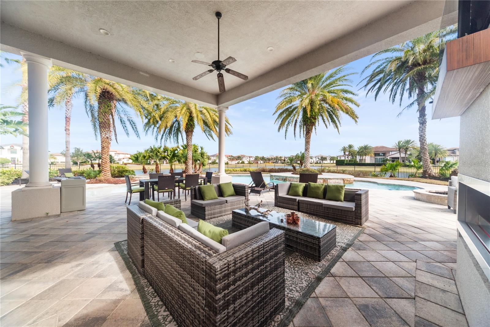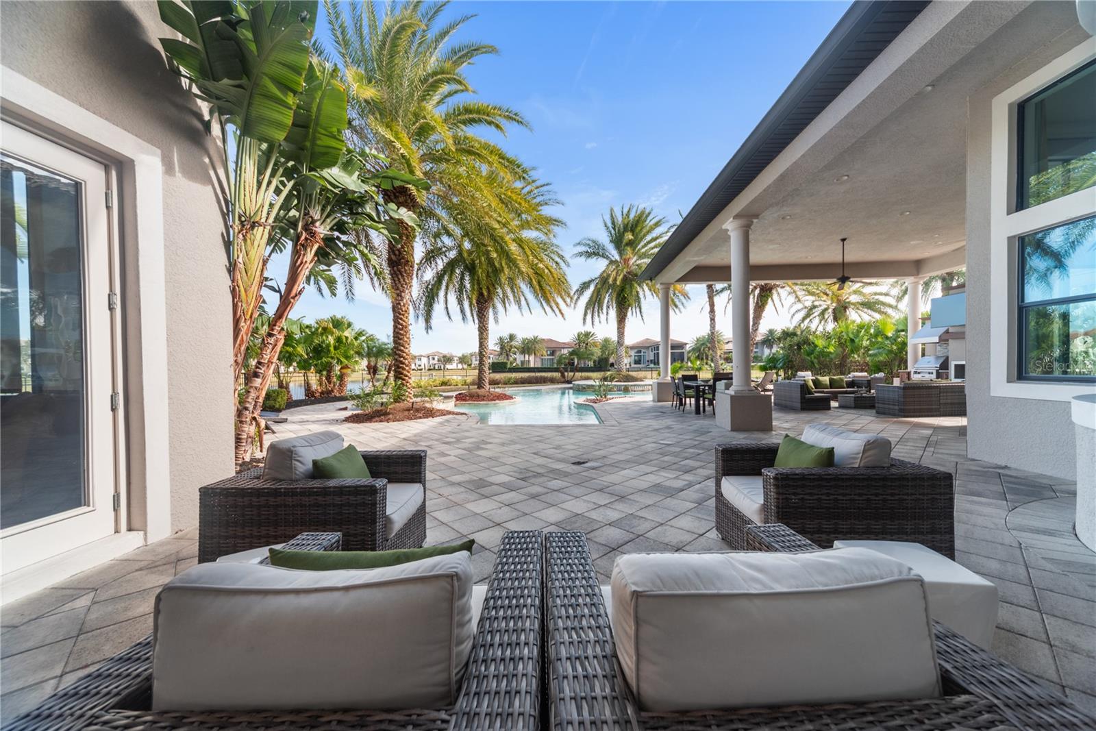 The designer-decorated Villa Milano model home presents the utmost in luxury at the exclusive and gated Casabella Community. This corner lot, spacious residence is full with high-end features throughout the home, including solar panels, custom built-ins in the family room, wet bar, and private study, stone and wood flooring, soaring windows with custom window treatments, etc. Enjoy entertaining on the outdoor covered verandah with summer kitchen and linear fireplace by the expansive resort-style pool with spa, sun shelf, and palm tree island. Showings available upon request.