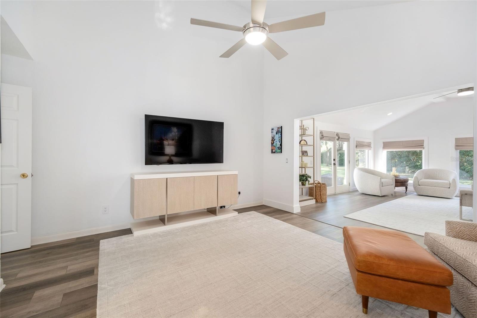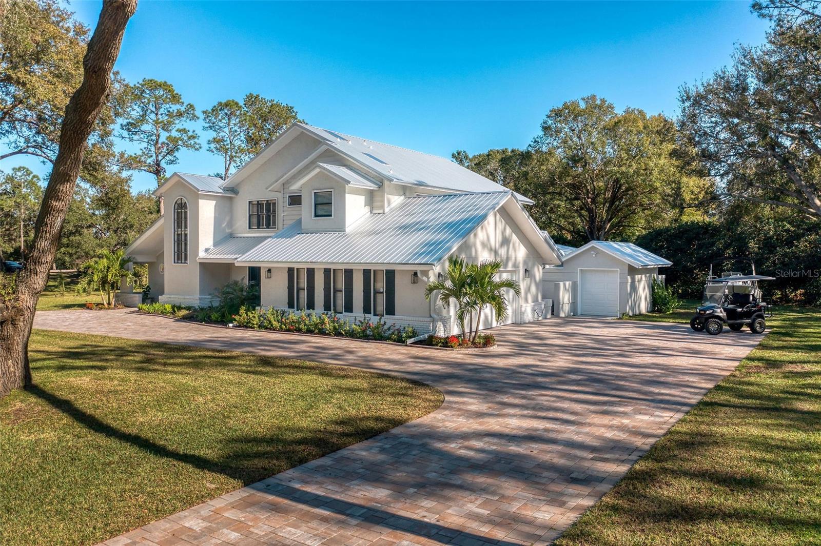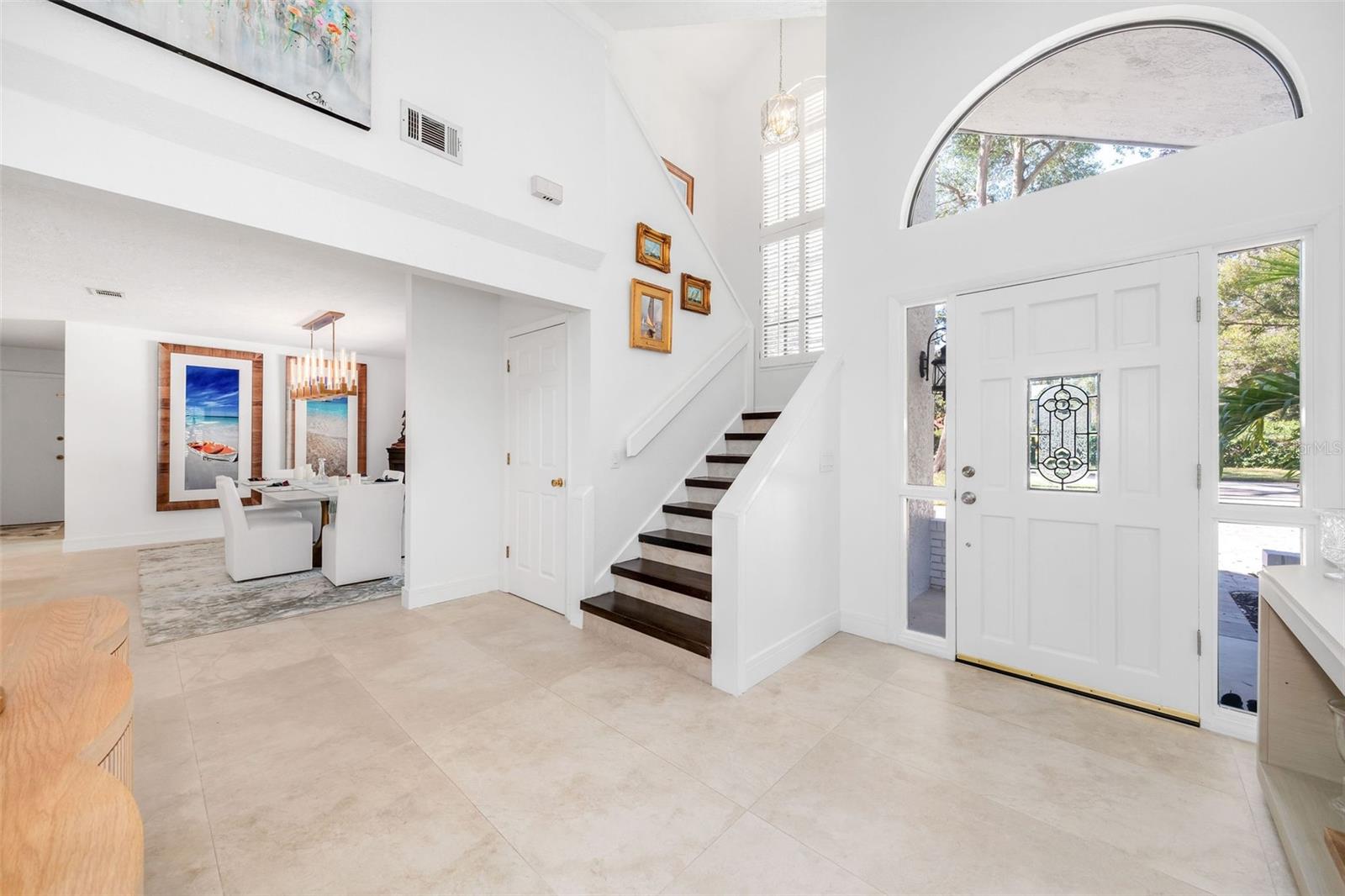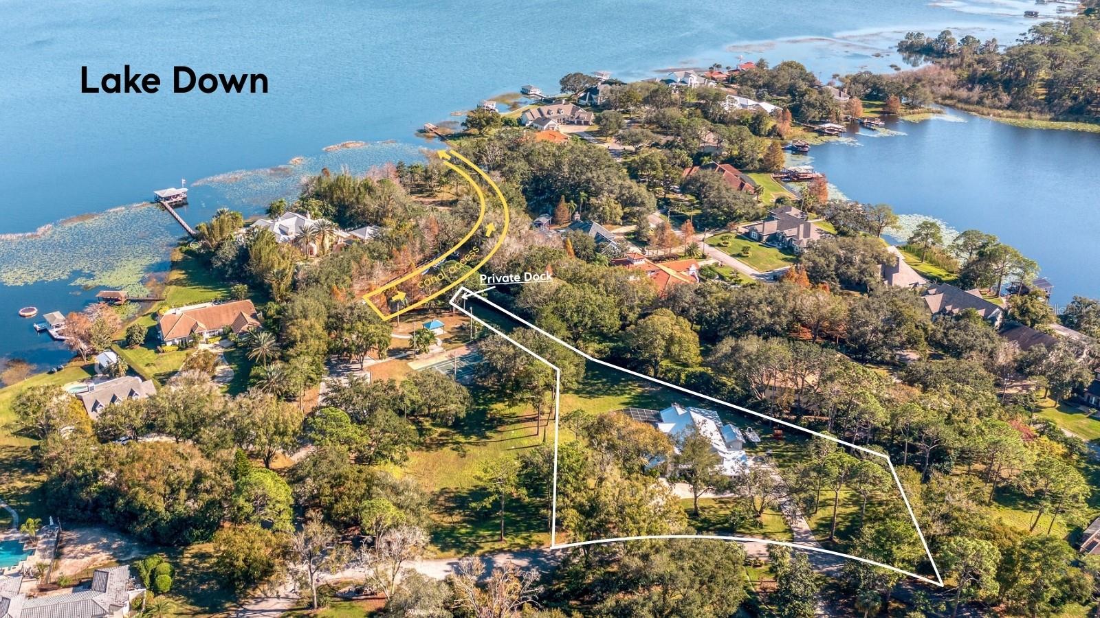 Newly renovated, this jewel on the Butler Chain of Lakes sits on over an acre within the golf cart zone of the sought-after Town of Windermere. In the mature community of Marina Bay Estates, this two-story home features a large circular driveway with a motor court, an oversized two-car garage, and a newly added golf cart garage for additional storage. The four-bedroom home spans almost 3,900 sqft, with ample room to expand on the 1.11-acre waterfront estate. Upon entering, you’re welcomed by a light, modern color palette and an abundance of natural light bouncing off the freshly painted interior and illuminating the new tile floors. The newly added master suite on the first floor enhances the home's appeal, providing convenience and luxury. Perfect for entertaining family and friends, the home has an excellent flow from the formal living room into the family room with its soaring, two-story ceiling, around the kitchen with casual dining, and a separate formal dining room. Both the formal living room and family room overlook the sparkling pool and covered lanai. With two bedrooms downstairs and two additional bedroom suites on the second floor, the property makes an attractive option as a vacation home. Listed among the numerous upgrades to the property, this home features a new metal roof, two new air conditioning units, all newly renovated bathrooms, all new flooring, a whole-house water softener system, and a private well. This property is a must-see!