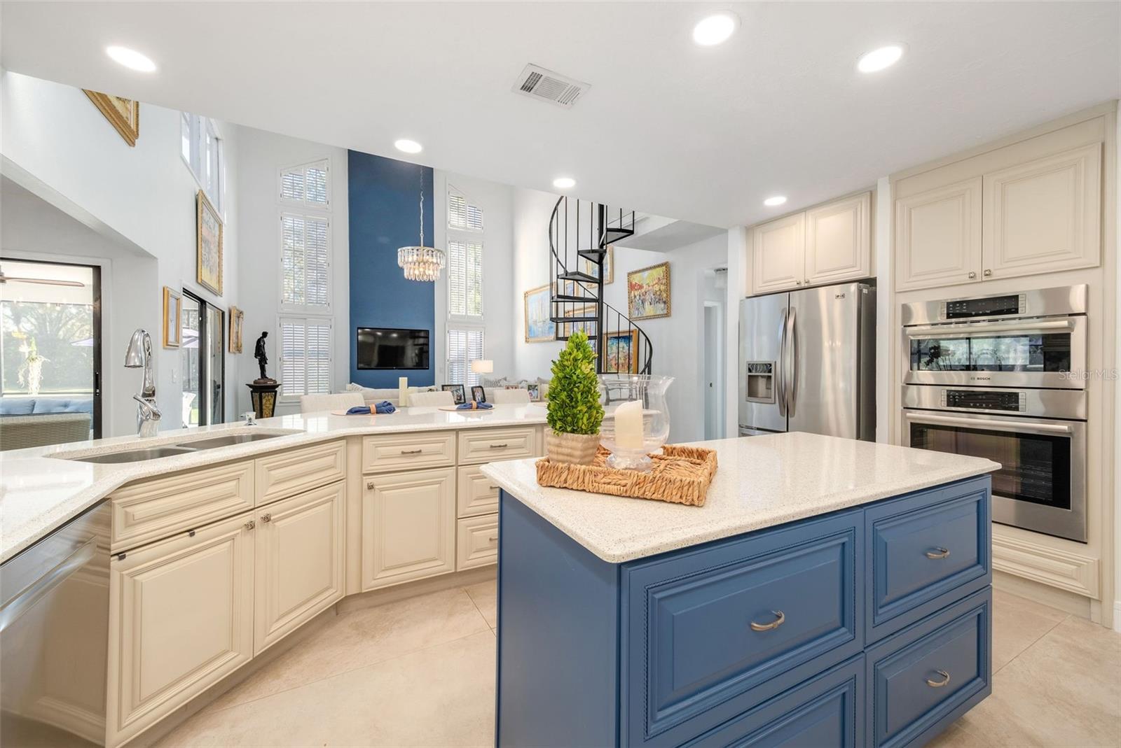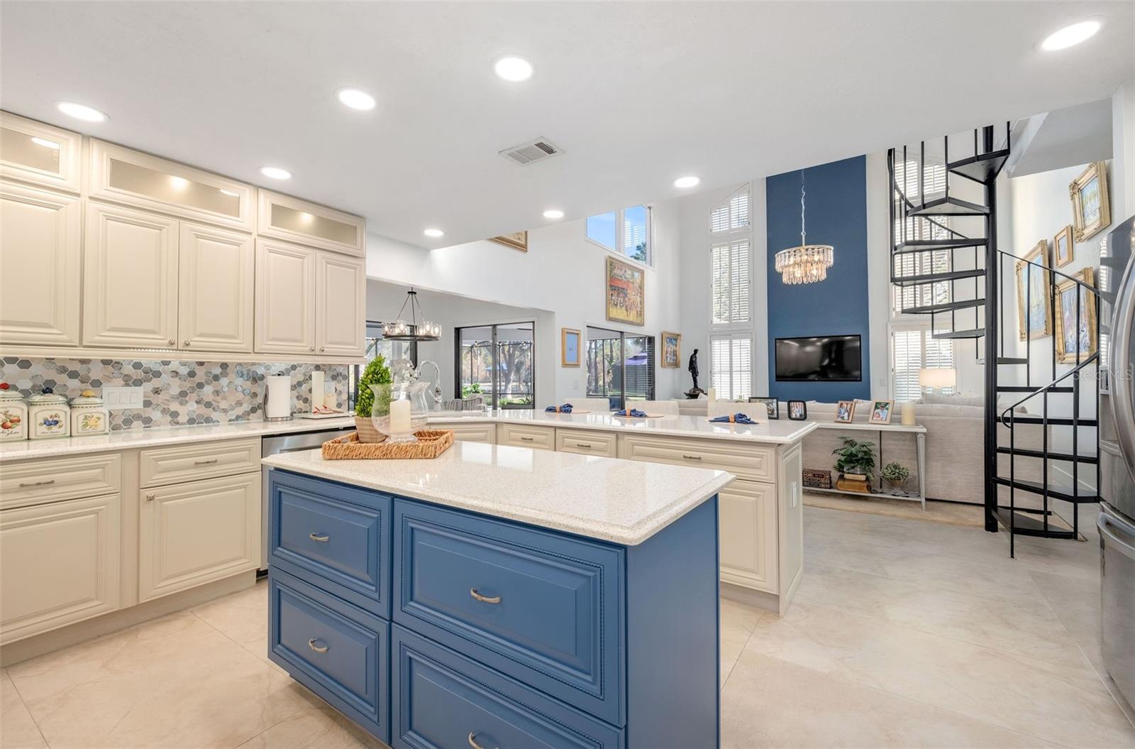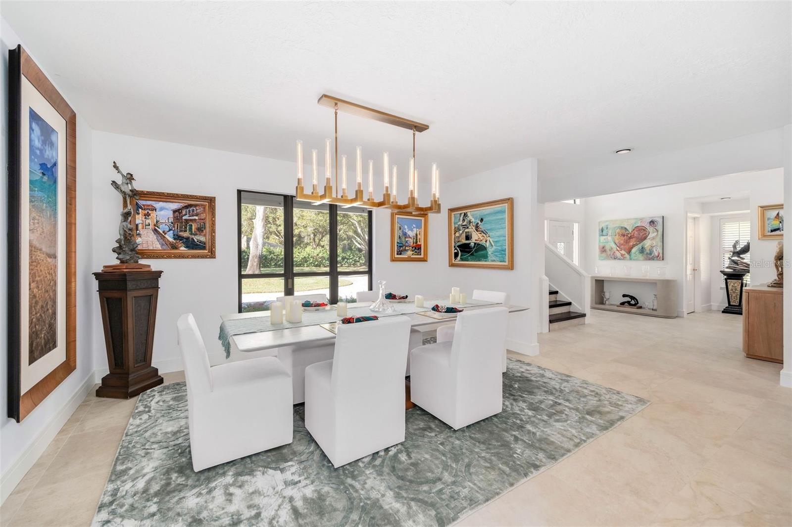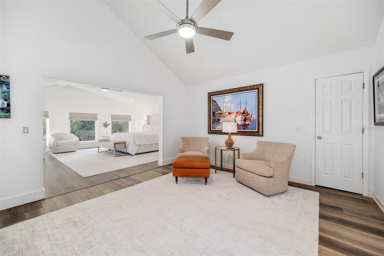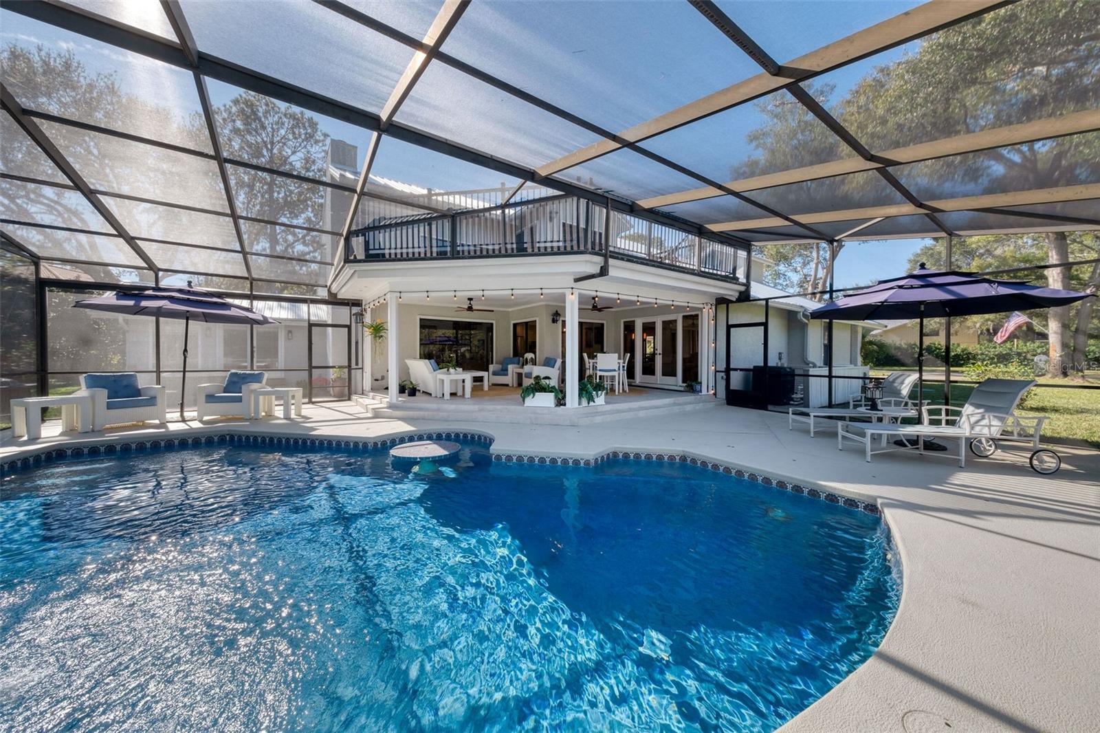 Newly renovated, this jewel on the Butler Chain of Lakes sits on over an acre within the golf cart zone of the sought-after Town of Windermere. In the mature community of Marina Bay Estates, this two-story home features a large circular driveway with a motor court, an oversized two-car garage, and a newly added golf cart garage for additional storage. The four-bedroom home spans almost 3,900 sqft, with ample room to expand on the 1.11-acre waterfront estate. Upon entering, you’re welcomed by a light, modern color palette and an abundance of natural light bouncing off the freshly painted interior and illuminating the new tile floors. The newly added master suite on the first floor enhances the home's appeal, providing convenience and luxury. Perfect for entertaining family and friends, the home has an excellent flow from the formal living room into the family room with its soaring, two-story ceiling, around the kitchen with casual dining, and a separate formal dining room. Both the formal living room and family room overlook the sparkling pool and covered lanai. With two bedrooms downstairs and two additional bedroom suites on the second floor, the property makes an attractive option as a vacation home. Listed among the numerous upgrades to the property, this home features a new metal roof, two new air conditioning units, all newly renovated bathrooms, all new flooring, a whole-house water softener system, and a private well. This property is a must-see!