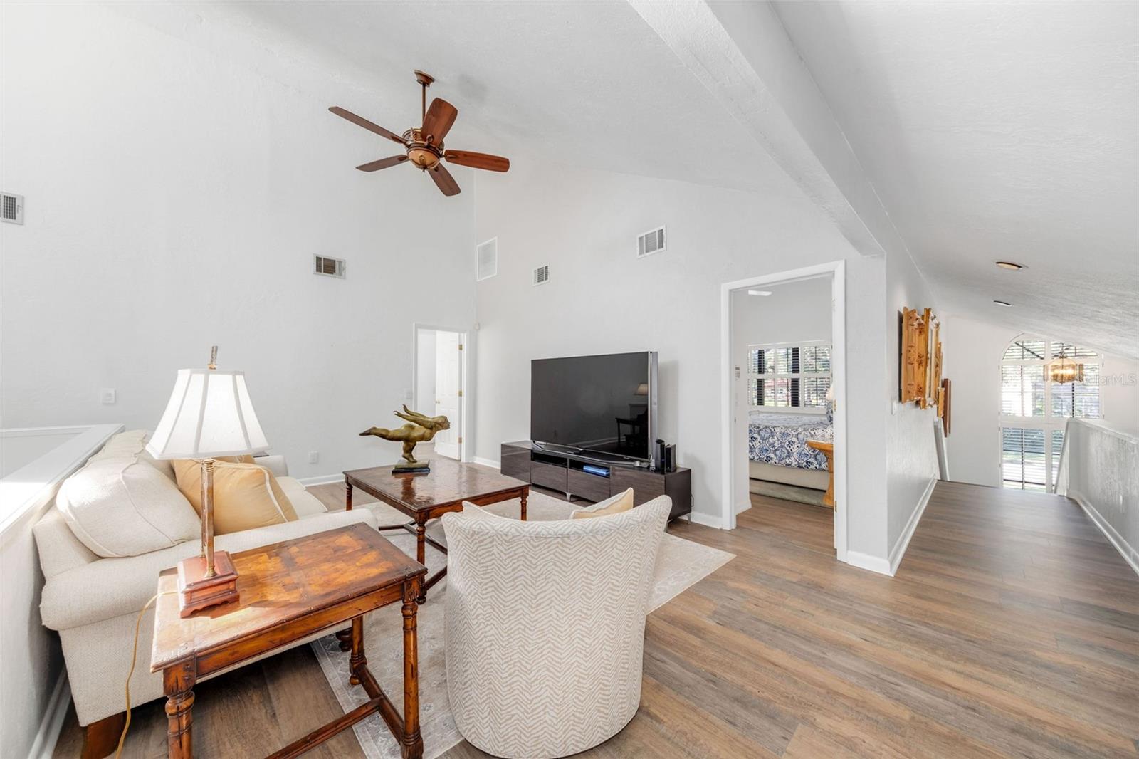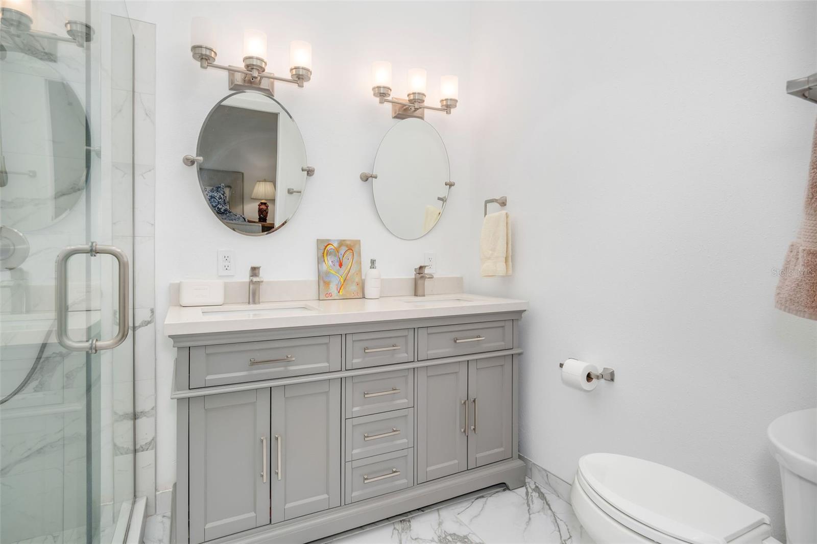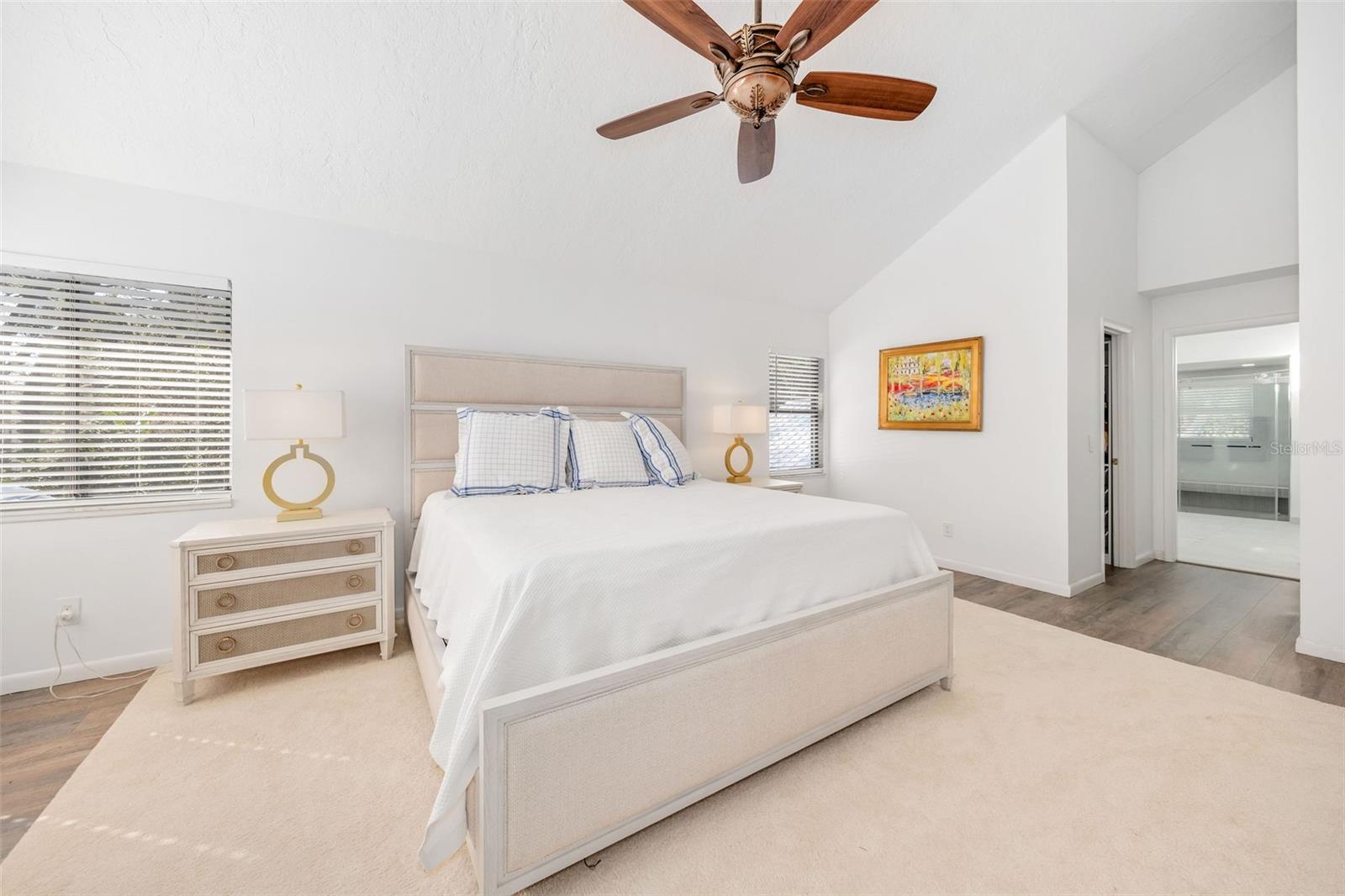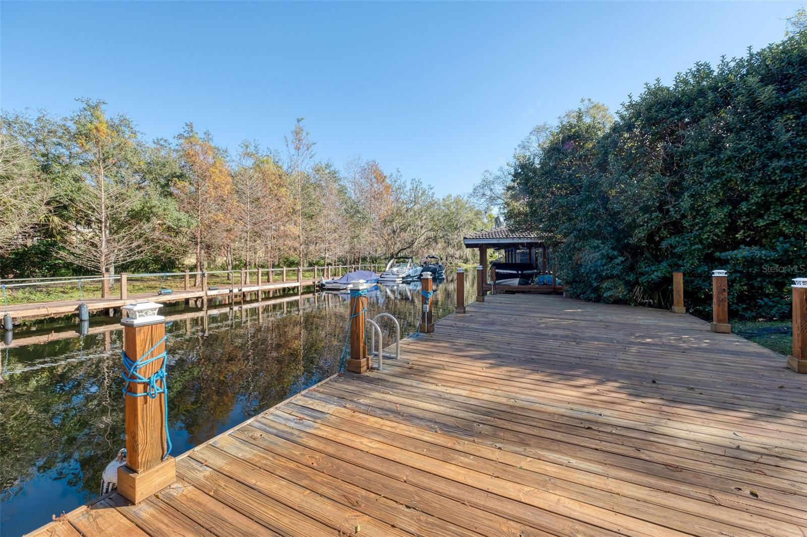 Newly renovated, this jewel on the Butler Chain of Lakes sits on over an acre within the golf cart zone of the sought-after Town of Windermere. In the mature community of Marina Bay Estates, this two-story home features a large circular driveway with a motor court, an oversized two-car garage, and a newly added golf cart garage for additional storage. The four-bedroom home spans almost 3,900 sqft, with ample room to expand on the 1.11-acre waterfront estate. Upon entering, you’re welcomed by a light, modern color palette and an abundance of natural light bouncing off the freshly painted interior and illuminating the new tile floors. The newly added master suite on the first floor enhances the home's appeal, providing convenience and luxury. Perfect for entertaining family and friends, the home has an excellent flow from the formal living room into the family room with its soaring, two-story ceiling, around the kitchen with casual dining, and a separate formal dining room. Both the formal living room and family room overlook the sparkling pool and covered lanai. With two bedrooms downstairs and two additional bedroom suites on the second floor, the property makes an attractive option as a vacation home. Listed among the numerous upgrades to the property, this home features a new metal roof, two new air conditioning units, all newly renovated bathrooms, all new flooring, a whole-house water softener system, and a private well. This property is a must-see!