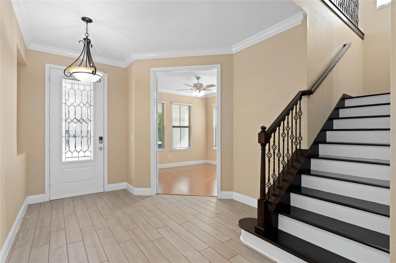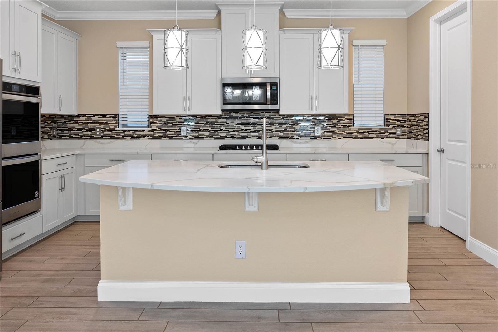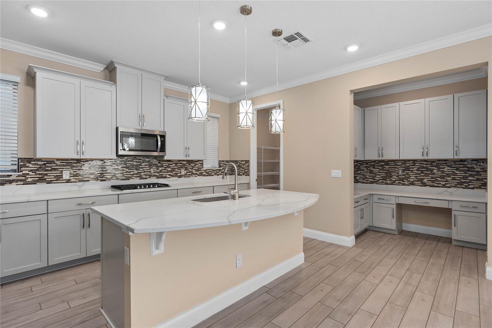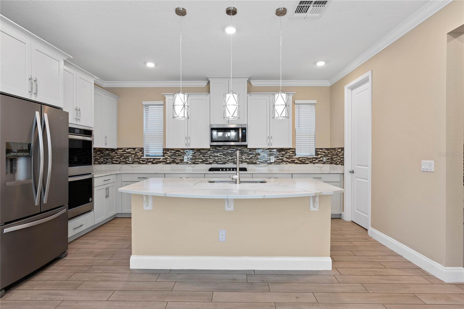 Stunning upgraded house in Windermere Isle in Gas community, NO Carpet in the house. Two downstairs bedrooms are perfect for a guest bedroom and a home office. Energy efficient home with Low Utility Bills. Tankless water heater. Beautiful engineer wood flooring and Ceiling fan with remote control in all rooms. Popular Designer fresh paint, crown molding, Chef kitchen, backsplash, stainless steel appliances with gas stove, walk-in pantry and Office Nook area. The huge Loft gives you an extra space for a secondary living area. The MASTER SUITE has a large double walk-in closet. Unwind from the day in your GARDEN BATH with soaking tub and semi-frameless glass shower with double shower head with rain showerhead. Another 2 bedrooms have jack and jill bathroom to share, Second floor laundry room with sink. Screen lanai with ceiling fan for enjoying outdoor living. New Epoxy garage floor paint. Windermere Isle offers residents a Community Pool, Cabana and Playground. HOA fee includes full lawn services. Top rated school, Located close to 429, Disney and Hamlin Shops. Backyard is large enough to build your private dream pool.