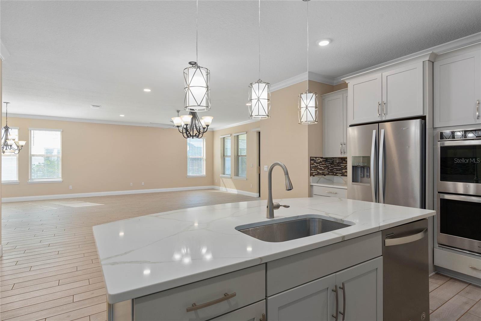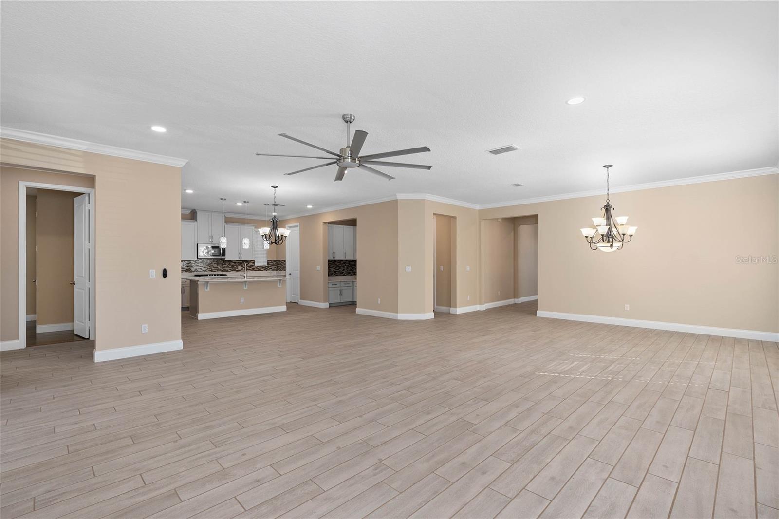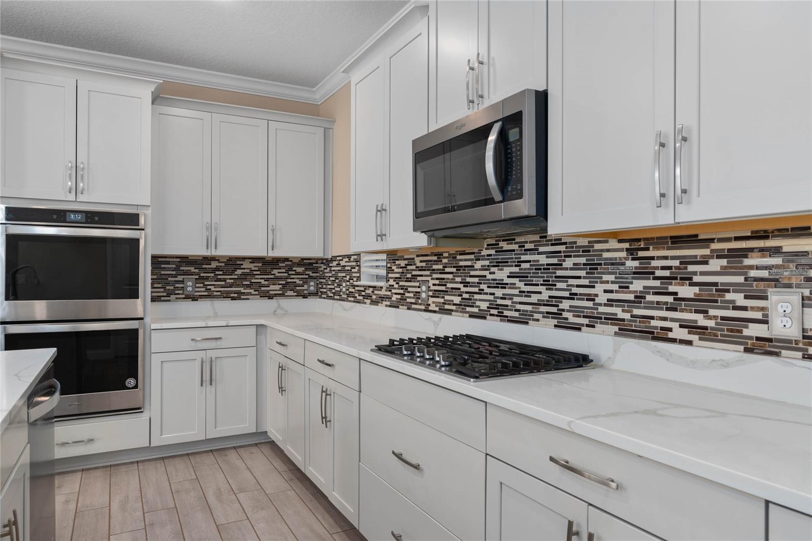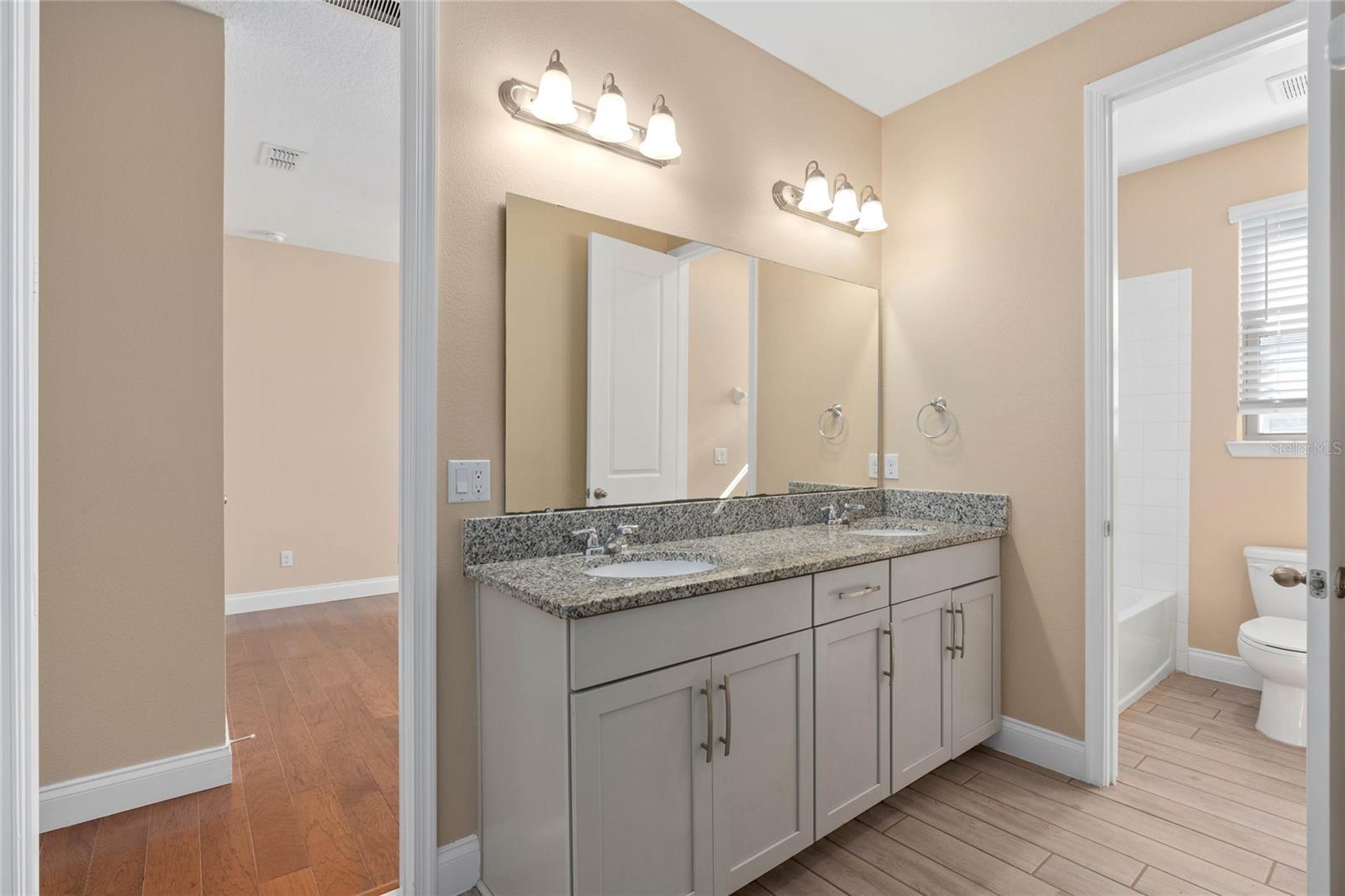Stunning upgraded house in Windermere Isle in Gas community, NO Carpet in the house. Two downstairs bedrooms are perfect for a guest bedroom and a home office. Energy efficient home with Low Utility Bills. Tankless water heater. Beautiful engineer wood flooring and Ceiling fan with remote control in all rooms. Popular Designer fresh paint, crown molding, Chef kitchen, backsplash, stainless steel appliances with gas stove, walk-in pantry and Office Nook area. The huge Loft gives you an extra space for a secondary living area. The MASTER SUITE has a large double walk-in closet. Unwind from the day in your GARDEN BATH with soaking tub and semi-frameless glass shower with double shower head with rain showerhead. Another 2 bedrooms have jack and jill bathroom to share, Second floor laundry room with sink. Screen lanai with ceiling fan for enjoying outdoor living. New Epoxy garage floor paint. Windermere Isle offers residents a Community Pool, Cabana and Playground. HOA fee includes full lawn services. Top rated school, Located close to 429, Disney and Hamlin Shops. Backyard is large enough to build your private dream pool.