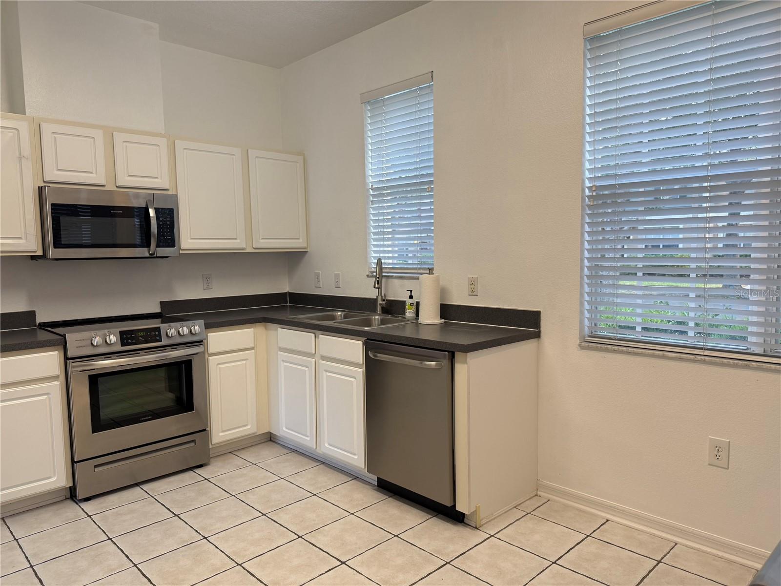 Located in the highly sought-after Lakes of Windermere – Lake Reams community. This beautifully maintained townhome offers two primary bedrooms, two and a half bathrooms, and is completely move-in ready with, a newer roof, AC, water heater and freshly painted. The main level of this desirable end unit features tiled floors, a spacious dining room, a convenient powder bath, a bright kitchen with stainless steel appliances, and an open floor plan living room which is the most poplar floor plan in the two bedroom models and opens to a large courtyard—perfect for entertaining. Upstairs, you’ll find two generously sized bedrooms, each with an en suite bathroom and oversized closets, along with a high-end LG washer and dryer with a steam function and a Nest programmable thermostat. The entire second floor is all upgraded laminate wood flooring. Additional highlights include a two-car garage with ample storage space and a long driveway for ample parking. There is street parking available also for guests. The entire community is currently in the process of exterior painting enhancing the curb appeal. Lakes of Windermere offers fantastic amenities, including a junior Olympic size pool, lawn care, and exterior maintenance which covers the roof, stucco, and paint, all covered by a low HOA. You will never have to mow trim shrubs, paint or reroof your home again. Conveniently located within a short drive to Disney's theme parks, shopping, dining, top-rated schools, and major highways, this is an opportunity you won’t want to miss. Schedule your showing today!