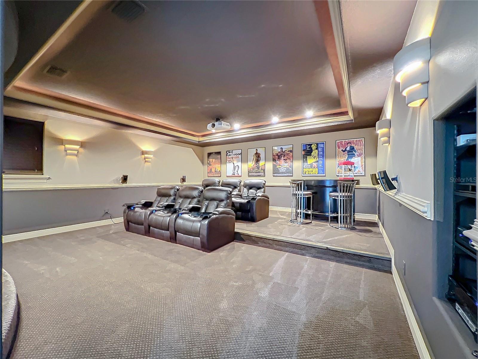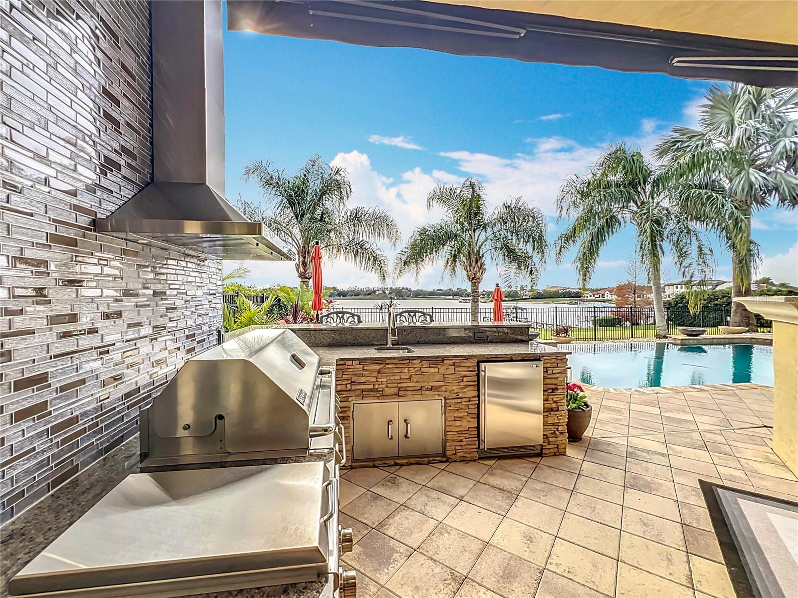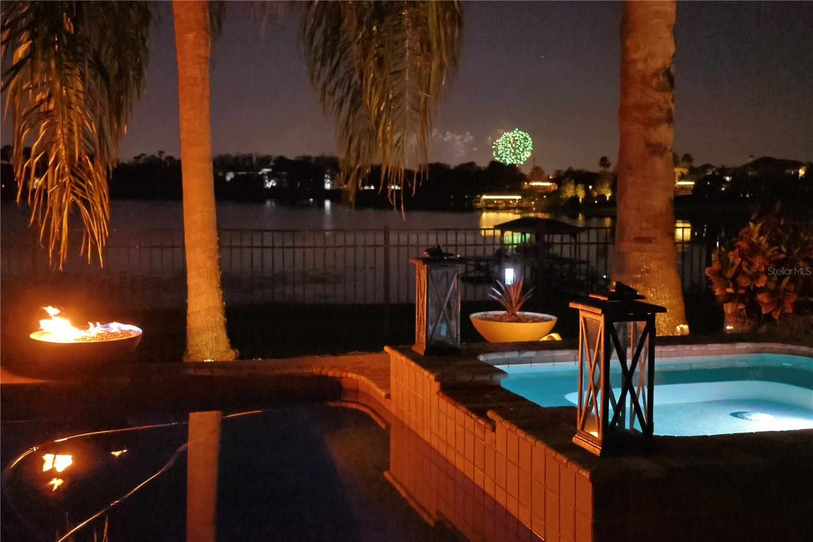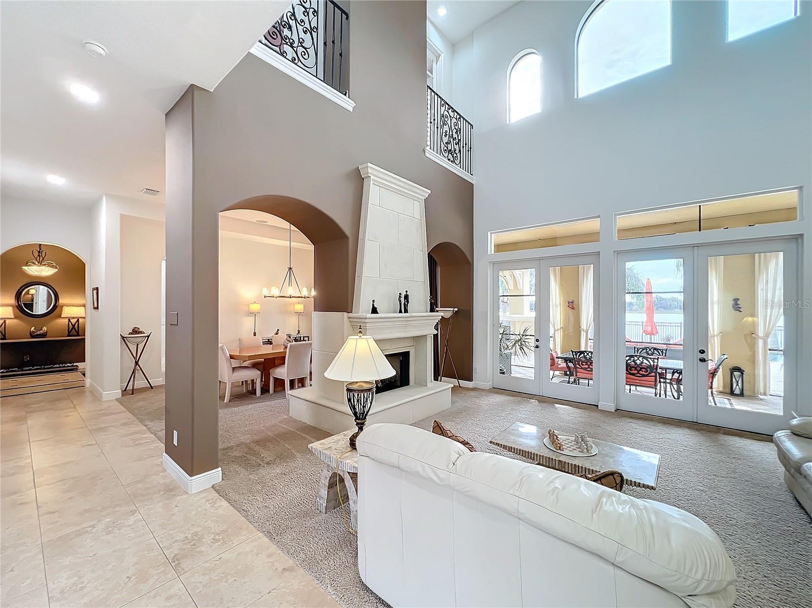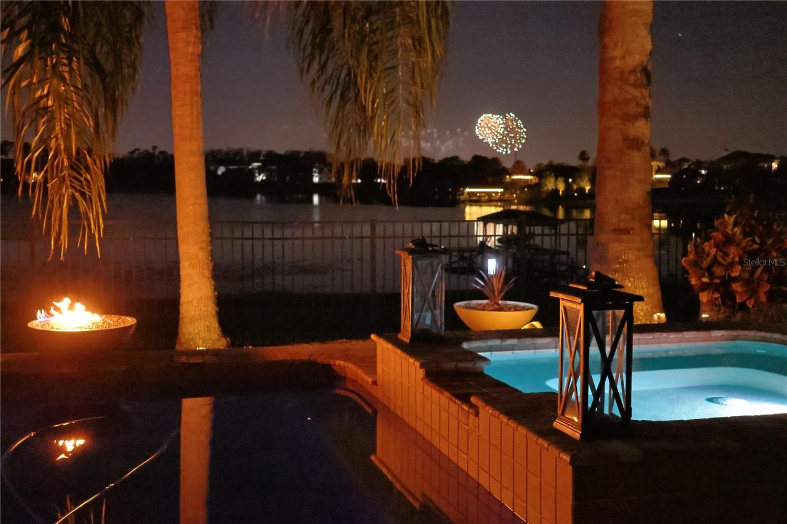 Discover unparalleled luxury and tranquility in this magnificent custom-built home, perfectly situated on a spacious lot within an exclusive guard-gated community. Boasting direct access to a pristine spring-fed lake that allows private boat docks, this property offers a lifestyle of relaxation and recreation. Step inside to a wonderfully designed open-concept family room and gourmet kitchen, featuring high-end appliances, a breakfast bar, an inviting eat-in space, and a convenient butler’s pantry. A nearby wine closet provides the perfect space to store your finest collection. Adjacent to the kitchen, a well-appointed guest room and laundry room add convenience to everyday living. The formal dining and living rooms share a cozy fireplace and breathtaking views of the lake, creating an elegant atmosphere for entertaining. A private office, a full pool bathroom, and a luxurious primary suite complete the first floor. The spacious primary suite includes an additional exercise room, while the spa-like en-suite bathroom features separate double sinks, dual walk-in closets, a garden tub, and a walk-through shower. A beautifully crafted wood and iron sweeping staircase leads to two generously sized bedrooms, each with its own private bathroom. The expansive game room provides direct access to a balcony with panoramic lake view. Movie nights will never be the same in the state-of-the-art home theater, complemented by a convenient half-bathroom nearby. Step outside to an entertainer’s dream, the expansive covered patio features a fireplace and a fully equipped outdoor kitchen. The sparkling pool, spa and open patio provide the perfect setting for hosting gatherings or simply unwinding in the serene surroundings and enjoying Disney's fireworks display. Completing this magnificent home is a spacious three-car garage, offering ample storage and parking for vehicles and recreational gear. Experience the ultimate in lakeside living with luxury, privacy, and breathtaking views. Schedule your private tour today!