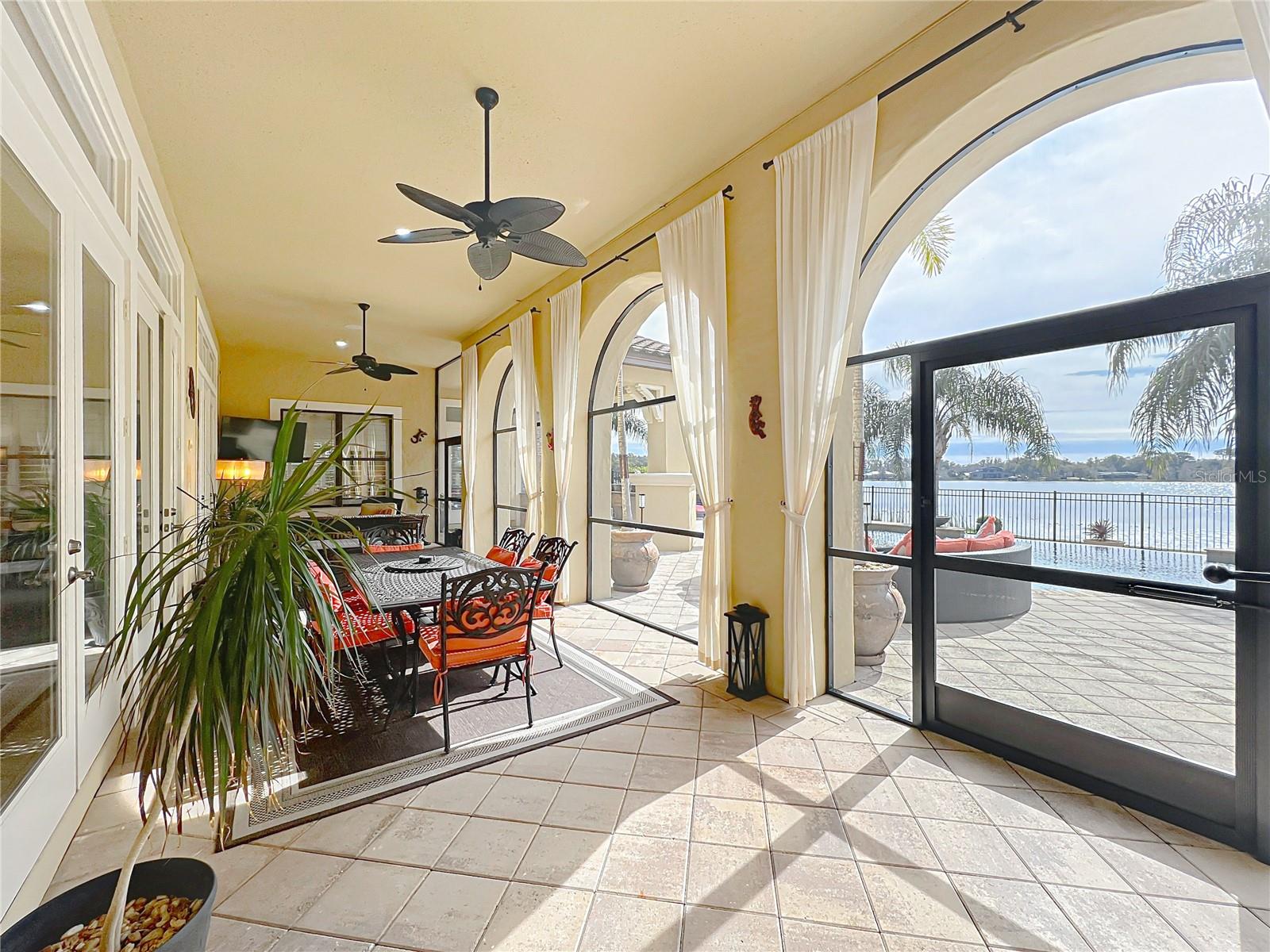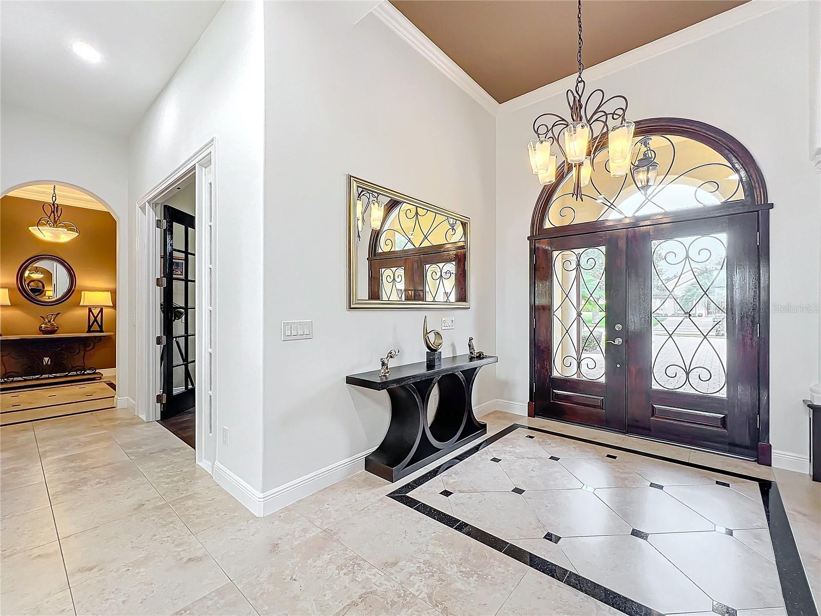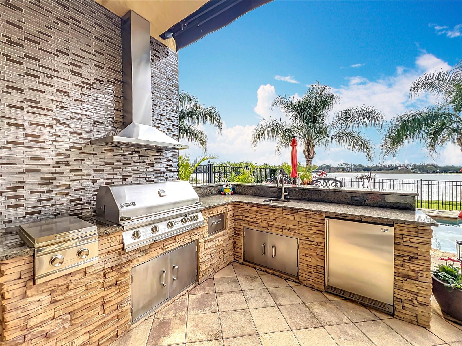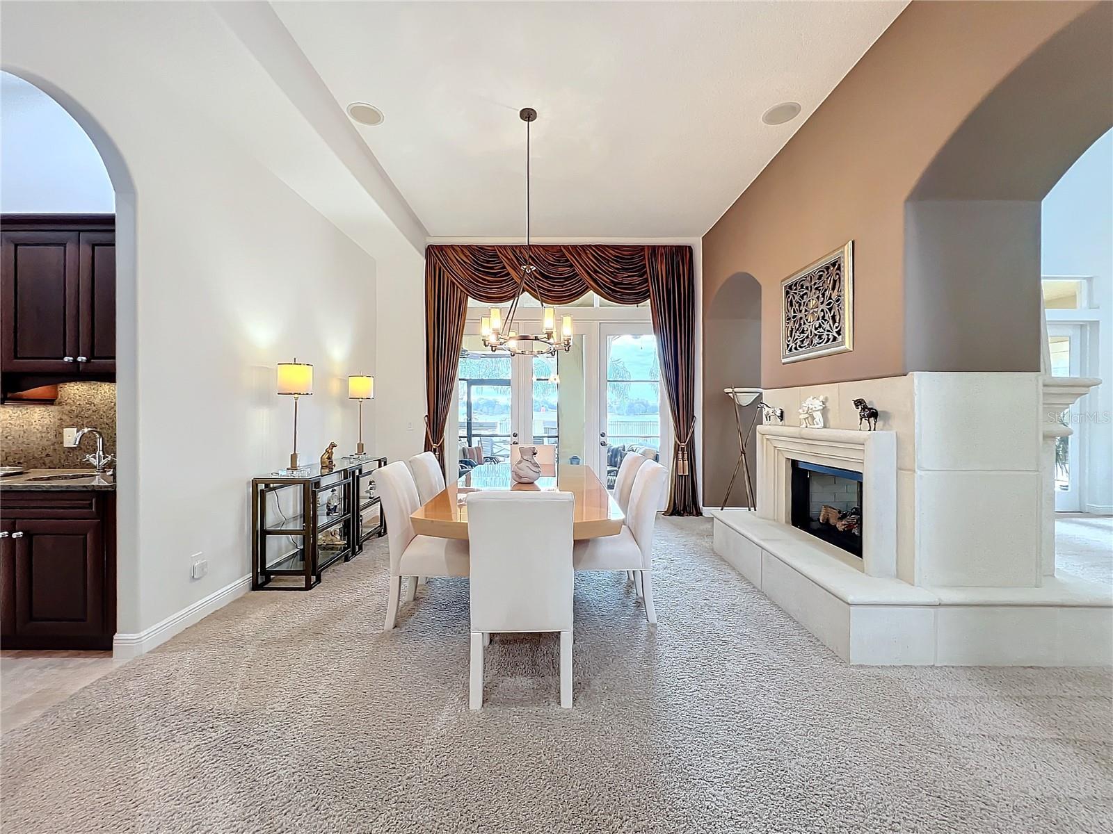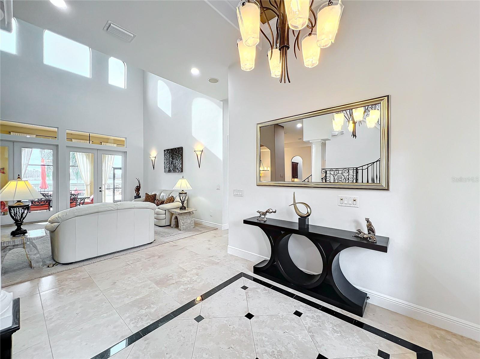Discover unparalleled luxury and tranquility in this magnificent custom-built home, perfectly situated on a spacious lot within an exclusive guard-gated community. Boasting direct access to a pristine spring-fed lake that allows private boat docks, this property offers a lifestyle of relaxation and recreation. Step inside to a wonderfully designed open-concept family room and gourmet kitchen, featuring high-end appliances, a breakfast bar, an inviting eat-in space, and a convenient butler’s pantry. A nearby wine closet provides the perfect space to store your finest collection. Adjacent to the kitchen, a well-appointed guest room and laundry room add convenience to everyday living. The formal dining and living rooms share a cozy fireplace and breathtaking views of the lake, creating an elegant atmosphere for entertaining. A private office, a full pool bathroom, and a luxurious primary suite complete the first floor. The spacious primary suite includes an additional exercise room, while the spa-like en-suite bathroom features separate double sinks, dual walk-in closets, a garden tub, and a walk-through shower. A beautifully crafted wood and iron sweeping staircase leads to two generously sized bedrooms, each with its own private bathroom. The expansive game room provides direct access to a balcony with panoramic lake view. Movie nights will never be the same in the state-of-the-art home theater, complemented by a convenient half-bathroom nearby. Step outside to an entertainer’s dream, the expansive covered patio features a fireplace and a fully equipped outdoor kitchen. The sparkling pool, spa and open patio provide the perfect setting for hosting gatherings or simply unwinding in the serene surroundings and enjoying Disney's fireworks display. Completing this magnificent home is a spacious three-car garage, offering ample storage and parking for vehicles and recreational gear. Experience the ultimate in lakeside living with luxury, privacy, and breathtaking views. Schedule your private tour today!