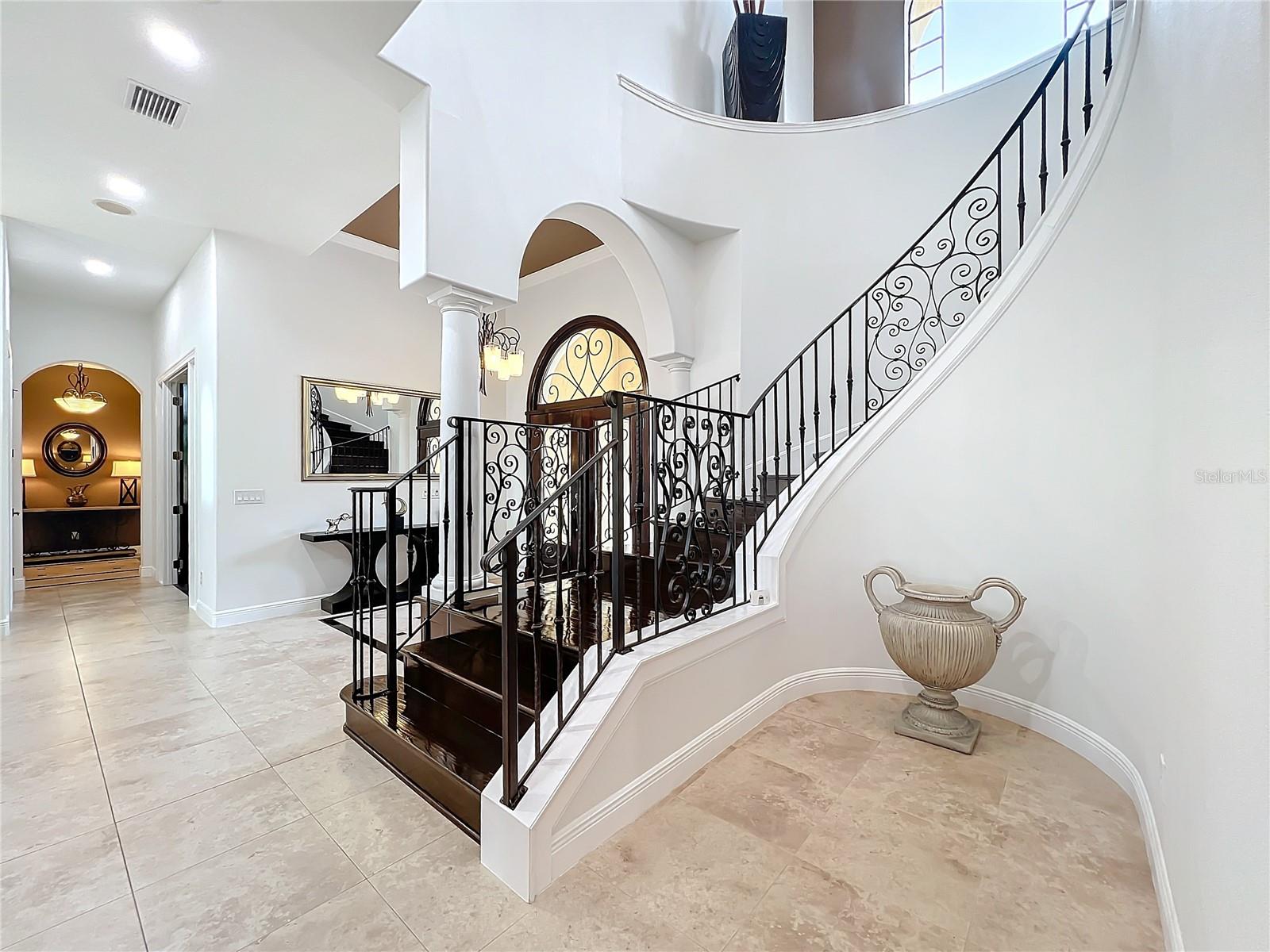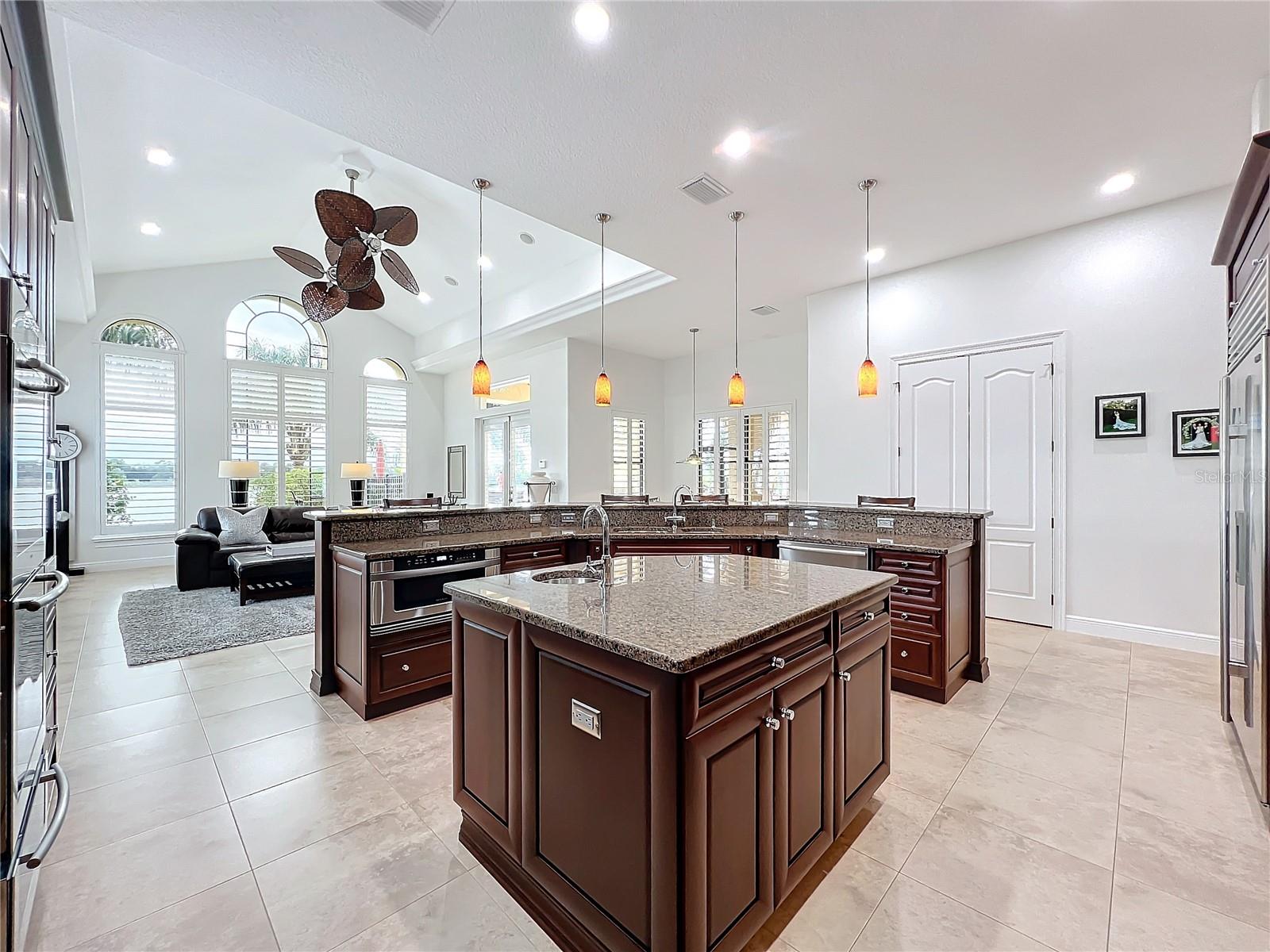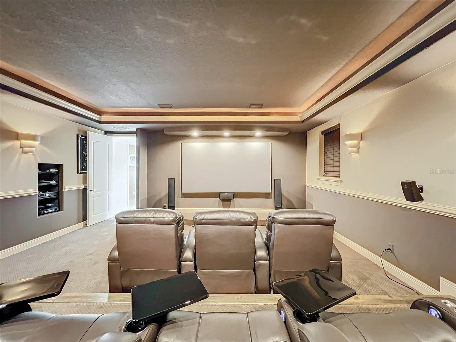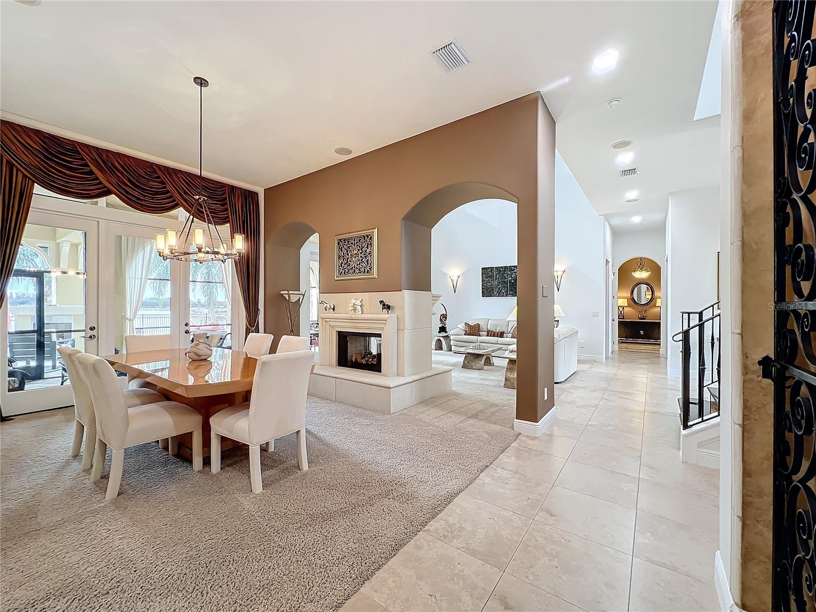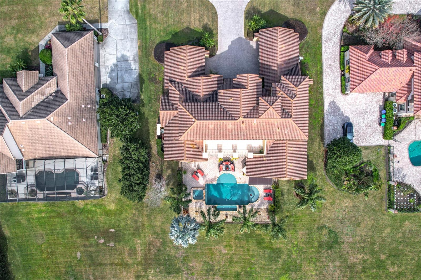 Discover unparalleled luxury and tranquility in this magnificent custom-built home, perfectly situated on a spacious lot within an exclusive guard-gated community. Boasting direct access to a pristine spring-fed lake that allows private boat docks, this property offers a lifestyle of relaxation and recreation. Step inside to a wonderfully designed open-concept family room and gourmet kitchen, featuring high-end appliances, a breakfast bar, an inviting eat-in space, and a convenient butler’s pantry. A nearby wine closet provides the perfect space to store your finest collection. Adjacent to the kitchen, a well-appointed guest room and laundry room add convenience to everyday living. The formal dining and living rooms share a cozy fireplace and breathtaking views of the lake, creating an elegant atmosphere for entertaining. A private office, a full pool bathroom, and a luxurious primary suite complete the first floor. The spacious primary suite includes an additional exercise room, while the spa-like en-suite bathroom features separate double sinks, dual walk-in closets, a garden tub, and a walk-through shower. A beautifully crafted wood and iron sweeping staircase leads to two generously sized bedrooms, each with its own private bathroom. The expansive game room provides direct access to a balcony with panoramic lake view. Movie nights will never be the same in the state-of-the-art home theater, complemented by a convenient half-bathroom nearby. Step outside to an entertainer’s dream, the expansive covered patio features a fireplace and a fully equipped outdoor kitchen. The sparkling pool, spa and open patio provide the perfect setting for hosting gatherings or simply unwinding in the serene surroundings and enjoying Disney's fireworks display. Completing this magnificent home is a spacious three-car garage, offering ample storage and parking for vehicles and recreational gear. Experience the ultimate in lakeside living with luxury, privacy, and breathtaking views. Schedule your private tour today!