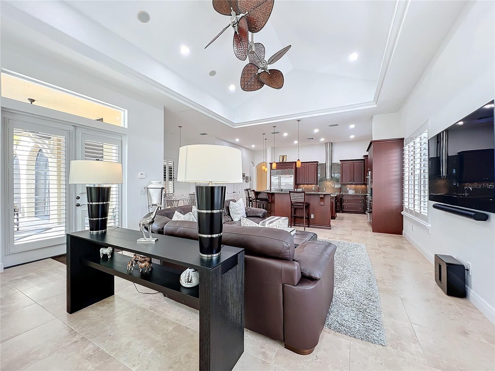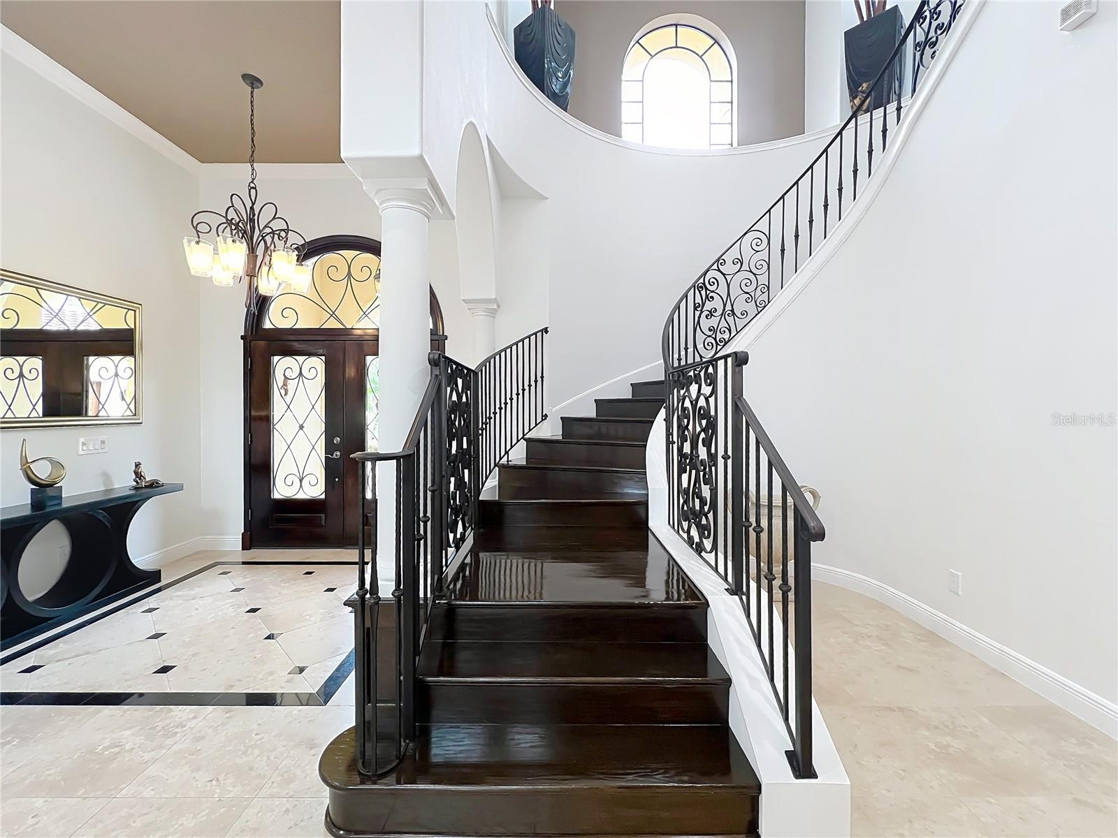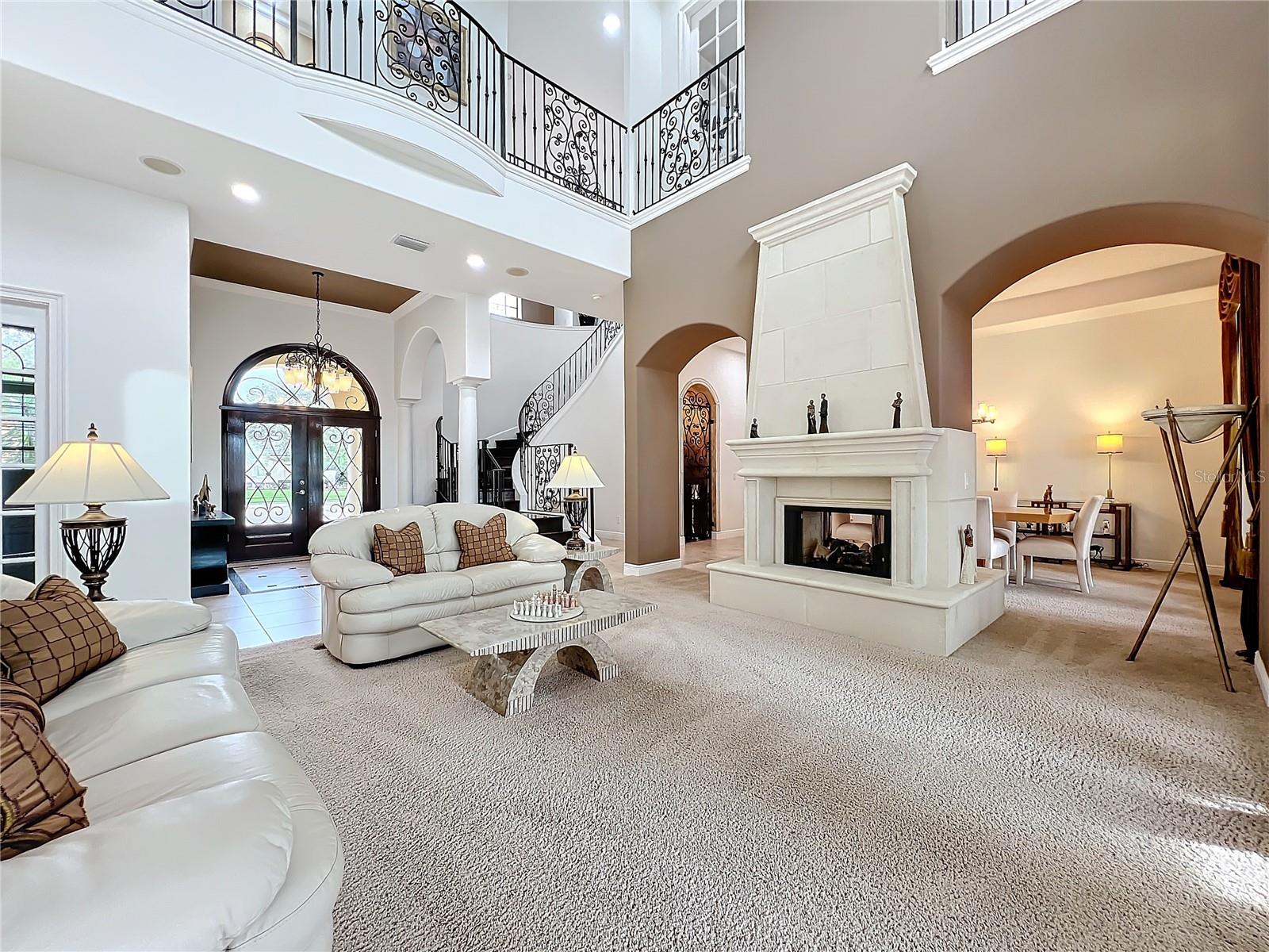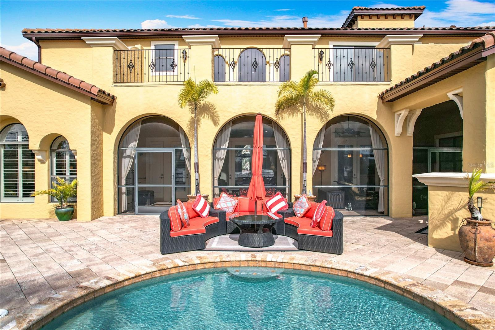 Discover unparalleled luxury and tranquility in this magnificent custom-built home, perfectly situated on a spacious lot within an exclusive guard-gated community. Boasting direct access to a pristine spring-fed lake that allows private boat docks, this property offers a lifestyle of relaxation and recreation. Step inside to a wonderfully designed open-concept family room and gourmet kitchen, featuring high-end appliances, a breakfast bar, an inviting eat-in space, and a convenient butler’s pantry. A nearby wine closet provides the perfect space to store your finest collection. Adjacent to the kitchen, a well-appointed guest room and laundry room add convenience to everyday living. The formal dining and living rooms share a cozy fireplace and breathtaking views of the lake, creating an elegant atmosphere for entertaining. A private office, a full pool bathroom, and a luxurious primary suite complete the first floor. The spacious primary suite includes an additional exercise room, while the spa-like en-suite bathroom features separate double sinks, dual walk-in closets, a garden tub, and a walk-through shower. A beautifully crafted wood and iron sweeping staircase leads to two generously sized bedrooms, each with its own private bathroom. The expansive game room provides direct access to a balcony with panoramic lake view. Movie nights will never be the same in the state-of-the-art home theater, complemented by a convenient half-bathroom nearby. Step outside to an entertainer’s dream, the expansive covered patio features a fireplace and a fully equipped outdoor kitchen. The sparkling pool, spa and open patio provide the perfect setting for hosting gatherings or simply unwinding in the serene surroundings and enjoying Disney's fireworks display. Completing this magnificent home is a spacious three-car garage, offering ample storage and parking for vehicles and recreational gear. Experience the ultimate in lakeside living with luxury, privacy, and breathtaking views. Schedule your private tour today!