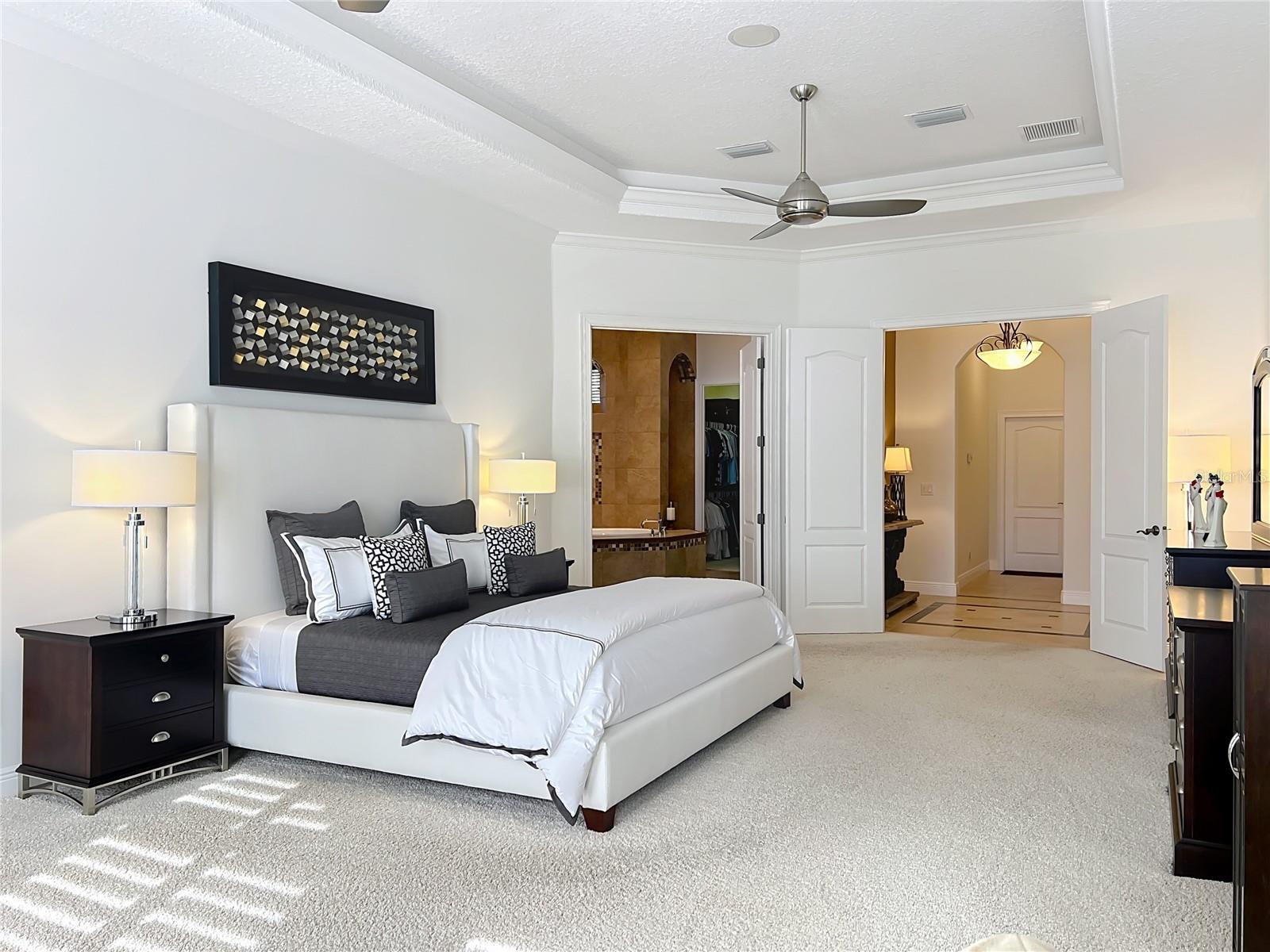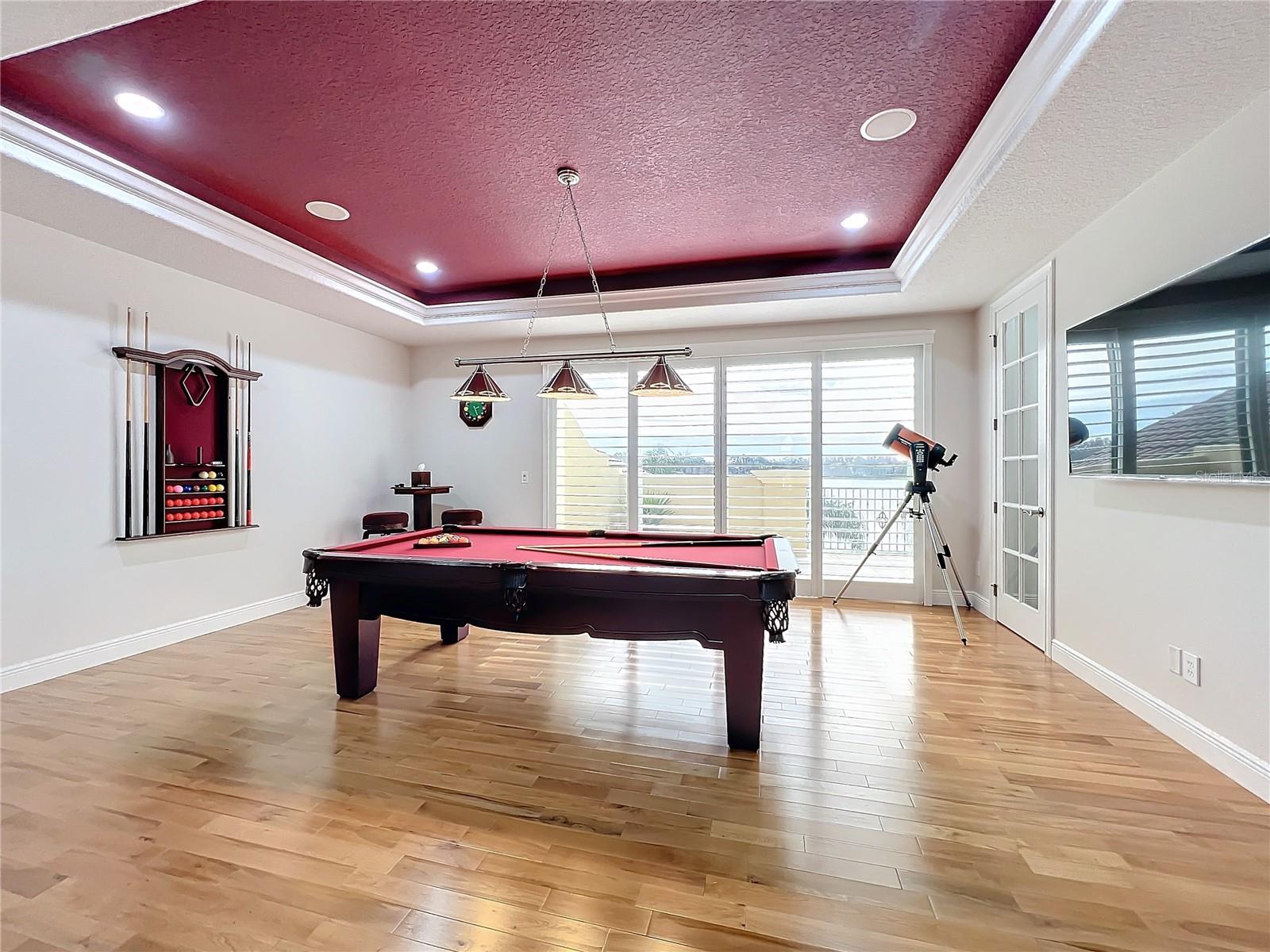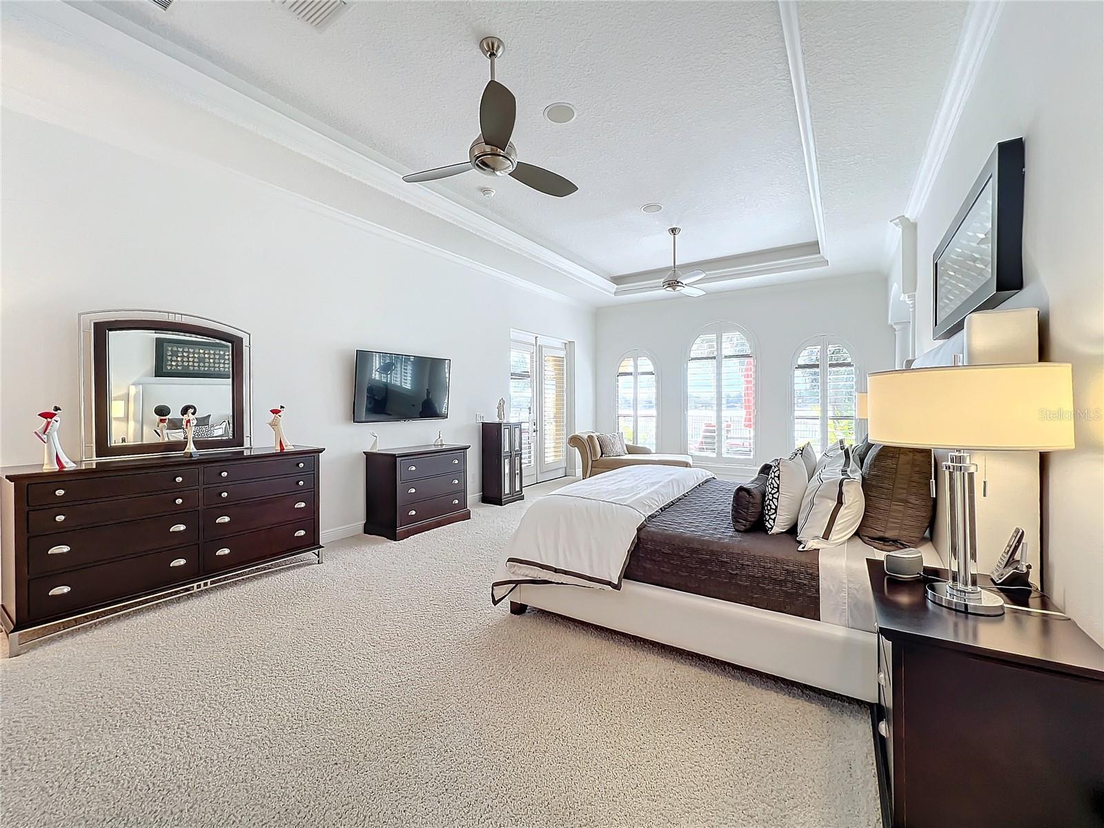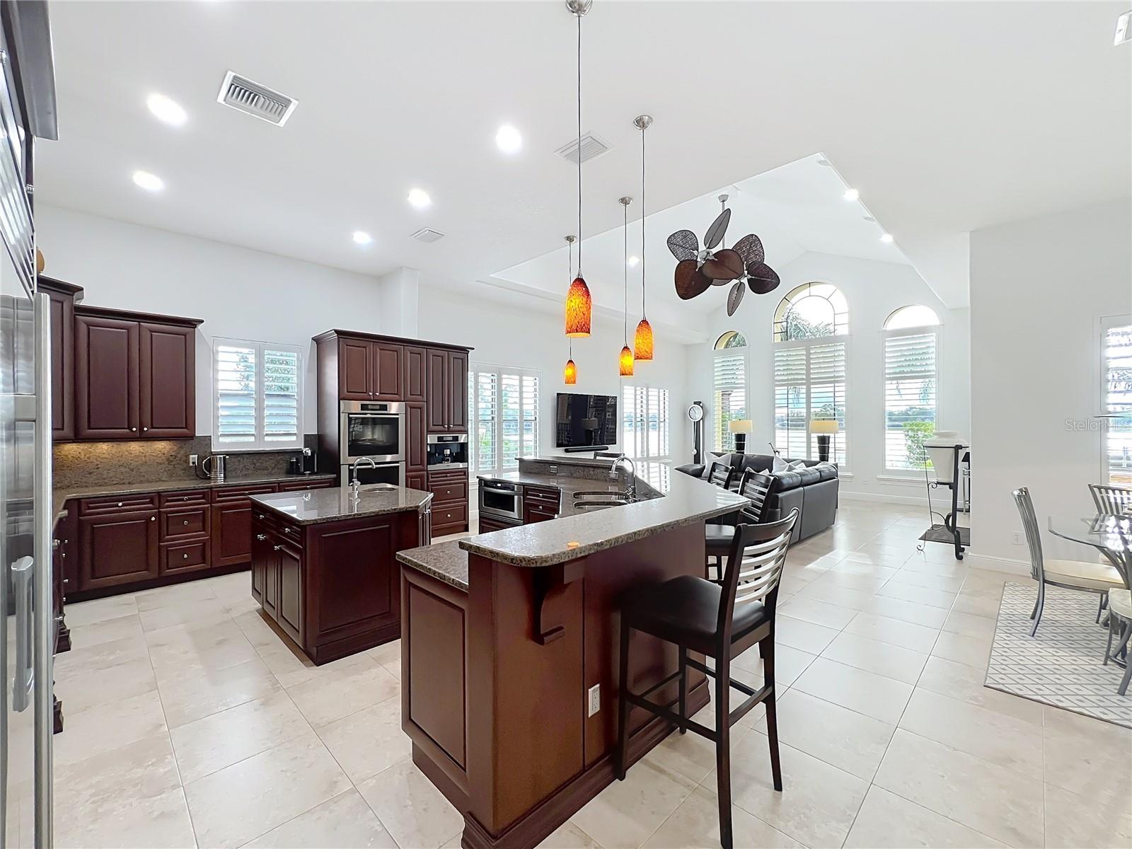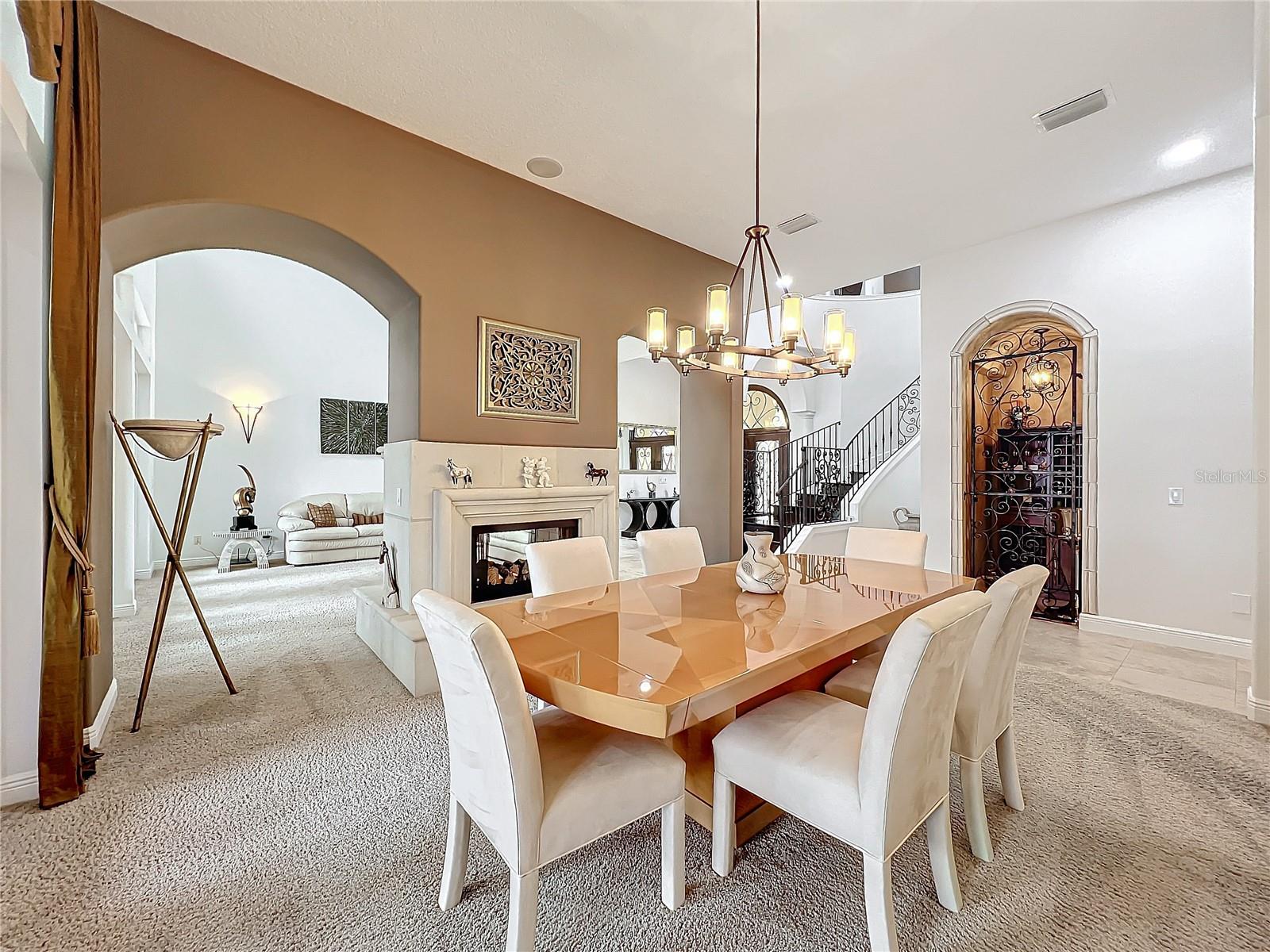 Discover unparalleled luxury and tranquility in this magnificent custom-built home, perfectly situated on a spacious lot within an exclusive guard-gated community. Boasting direct access to a pristine spring-fed lake that allows private boat docks, this property offers a lifestyle of relaxation and recreation. Step inside to a wonderfully designed open-concept family room and gourmet kitchen, featuring high-end appliances, a breakfast bar, an inviting eat-in space, and a convenient butler’s pantry. A nearby wine closet provides the perfect space to store your finest collection. Adjacent to the kitchen, a well-appointed guest room and laundry room add convenience to everyday living. The formal dining and living rooms share a cozy fireplace and breathtaking views of the lake, creating an elegant atmosphere for entertaining. A private office, a full pool bathroom, and a luxurious primary suite complete the first floor. The spacious primary suite includes an additional exercise room, while the spa-like en-suite bathroom features separate double sinks, dual walk-in closets, a garden tub, and a walk-through shower. A beautifully crafted wood and iron sweeping staircase leads to two generously sized bedrooms, each with its own private bathroom. The expansive game room provides direct access to a balcony with panoramic lake view. Movie nights will never be the same in the state-of-the-art home theater, complemented by a convenient half-bathroom nearby. Step outside to an entertainer’s dream, the expansive covered patio features a fireplace and a fully equipped outdoor kitchen. The sparkling pool, spa and open patio provide the perfect setting for hosting gatherings or simply unwinding in the serene surroundings and enjoying Disney's fireworks display. Completing this magnificent home is a spacious three-car garage, offering ample storage and parking for vehicles and recreational gear. Experience the ultimate in lakeside living with luxury, privacy, and breathtaking views. Schedule your private tour today!