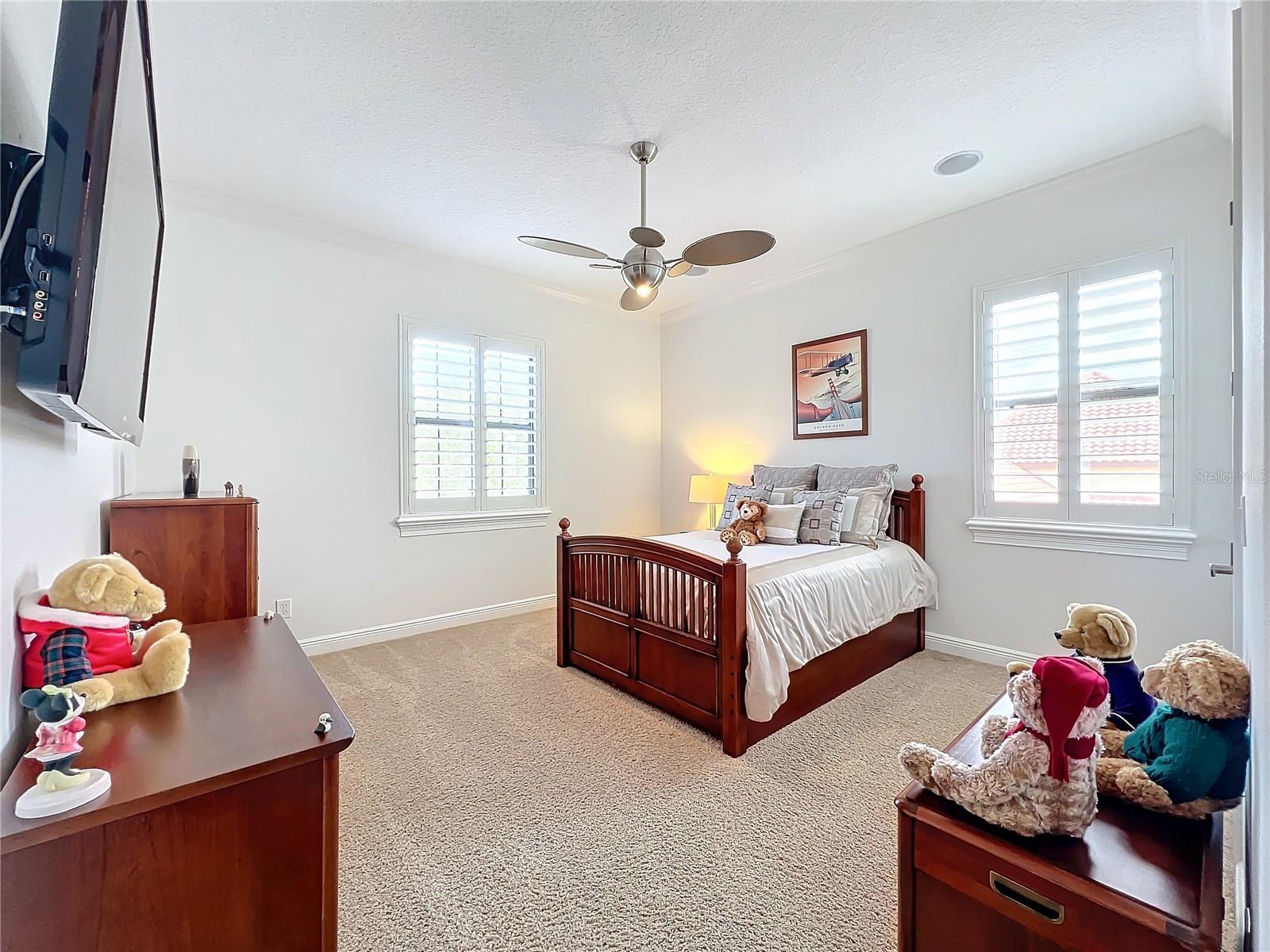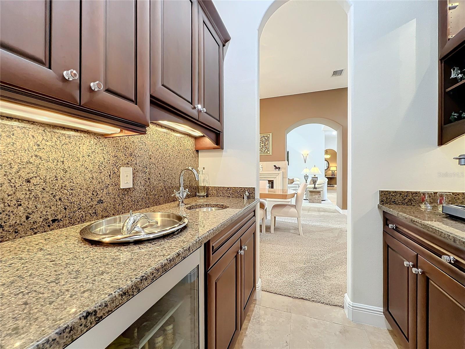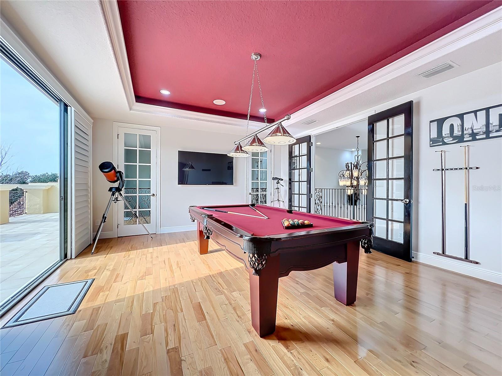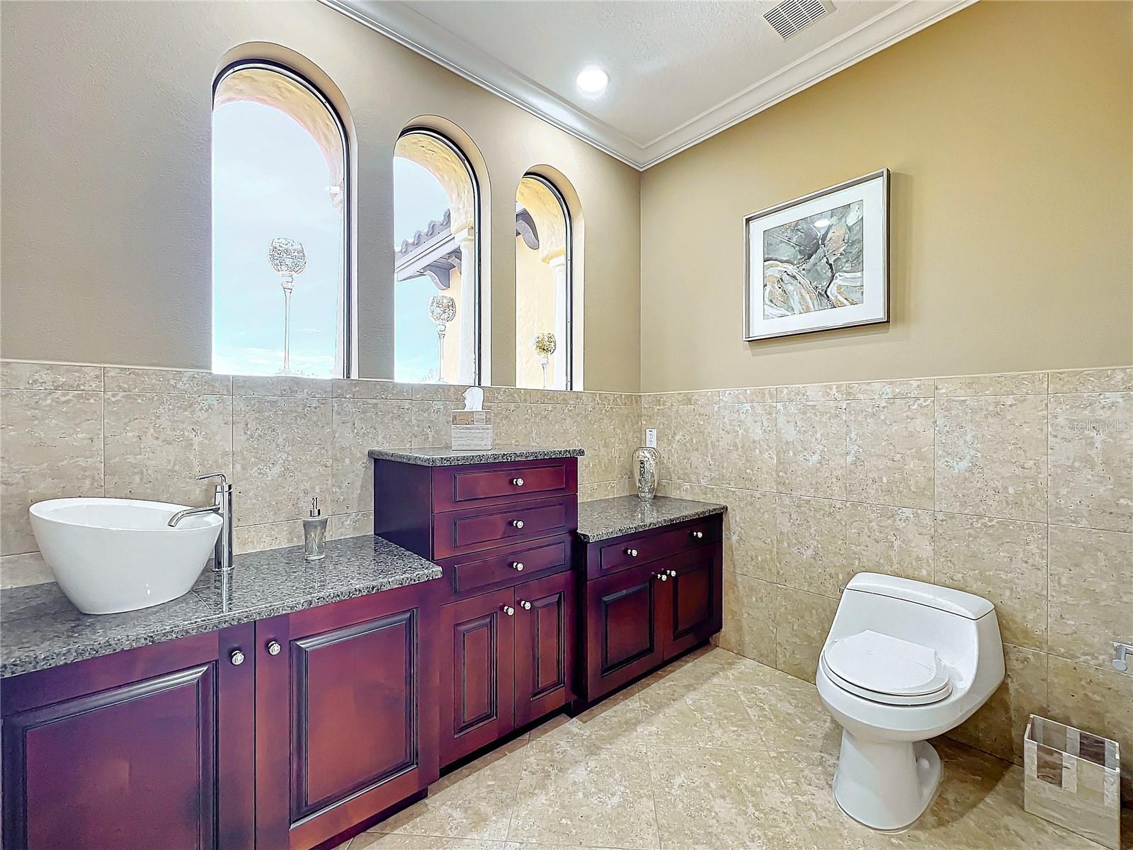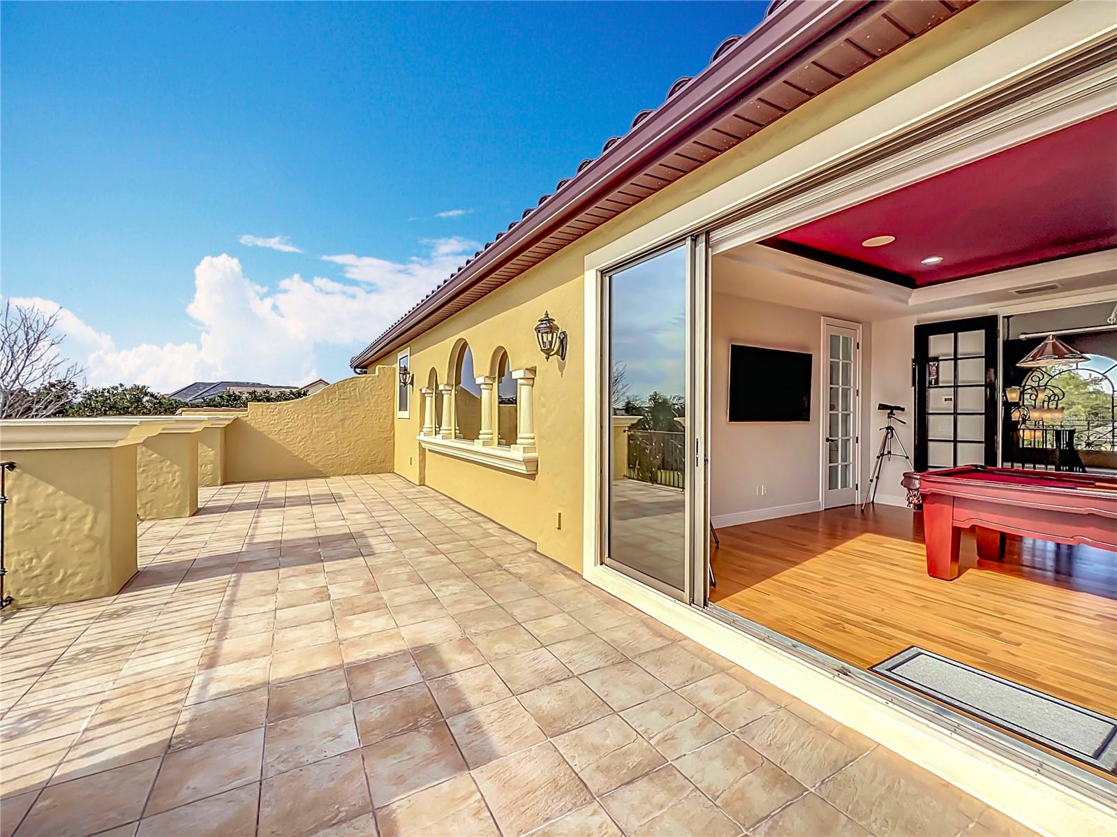 Discover unparalleled luxury and tranquility in this magnificent custom-built home, perfectly situated on a spacious lot within an exclusive guard-gated community. Boasting direct access to a pristine spring-fed lake that allows private boat docks, this property offers a lifestyle of relaxation and recreation. Step inside to a wonderfully designed open-concept family room and gourmet kitchen, featuring high-end appliances, a breakfast bar, an inviting eat-in space, and a convenient butler’s pantry. A nearby wine closet provides the perfect space to store your finest collection. Adjacent to the kitchen, a well-appointed guest room and laundry room add convenience to everyday living. The formal dining and living rooms share a cozy fireplace and breathtaking views of the lake, creating an elegant atmosphere for entertaining. A private office, a full pool bathroom, and a luxurious primary suite complete the first floor. The spacious primary suite includes an additional exercise room, while the spa-like en-suite bathroom features separate double sinks, dual walk-in closets, a garden tub, and a walk-through shower. A beautifully crafted wood and iron sweeping staircase leads to two generously sized bedrooms, each with its own private bathroom. The expansive game room provides direct access to a balcony with panoramic lake view. Movie nights will never be the same in the state-of-the-art home theater, complemented by a convenient half-bathroom nearby. Step outside to an entertainer’s dream, the expansive covered patio features a fireplace and a fully equipped outdoor kitchen. The sparkling pool, spa and open patio provide the perfect setting for hosting gatherings or simply unwinding in the serene surroundings and enjoying Disney's fireworks display. Completing this magnificent home is a spacious three-car garage, offering ample storage and parking for vehicles and recreational gear. Experience the ultimate in lakeside living with luxury, privacy, and breathtaking views. Schedule your private tour today!