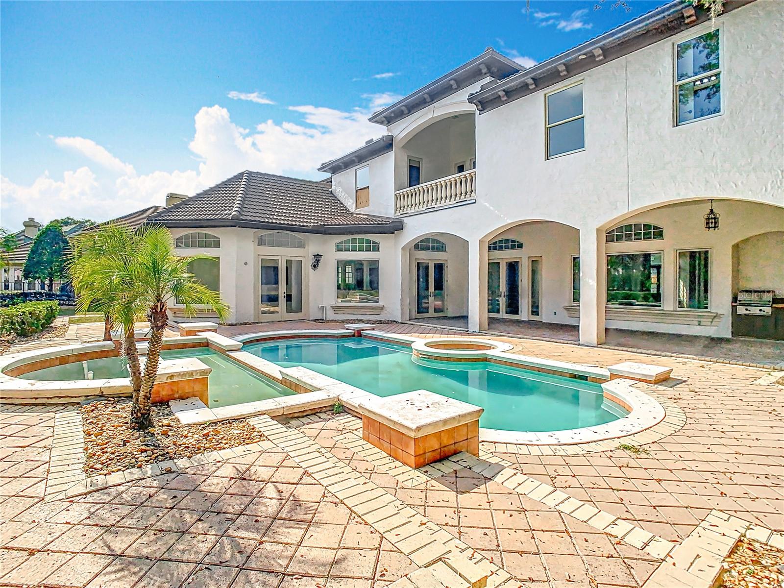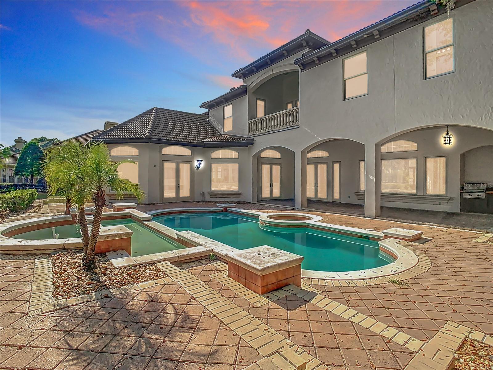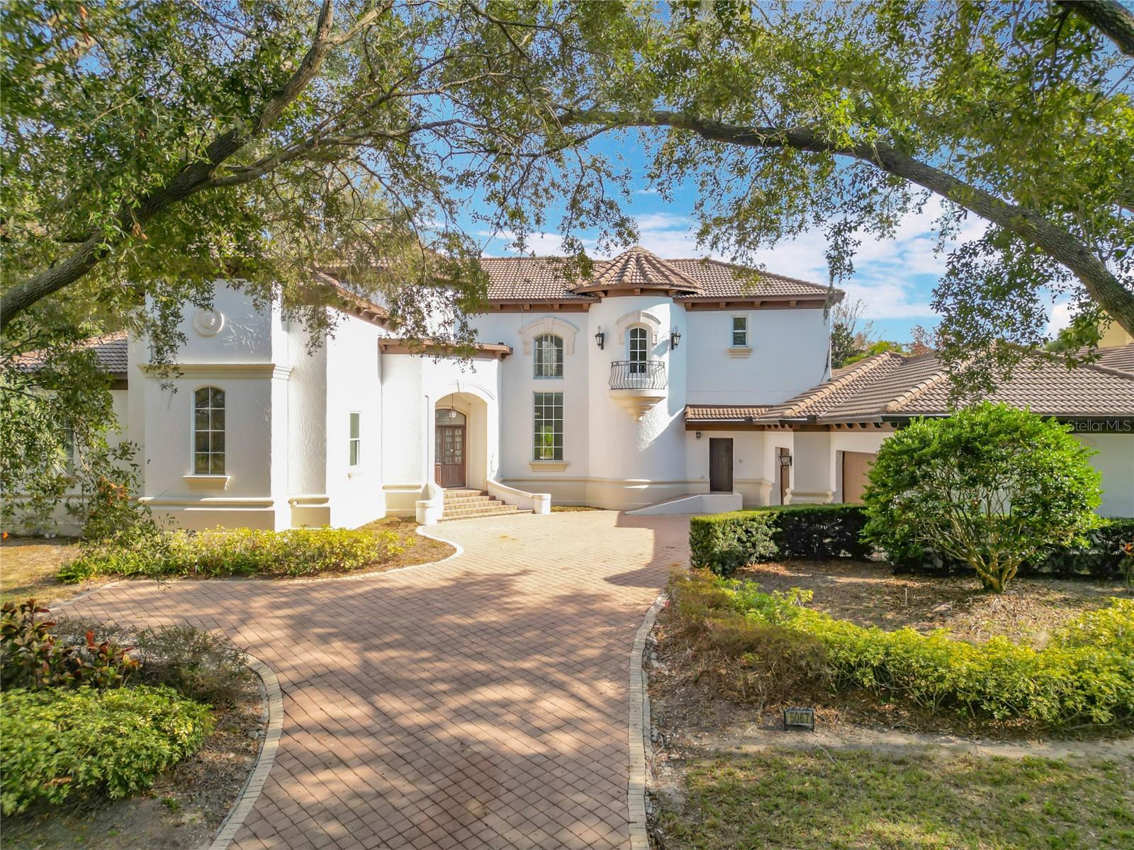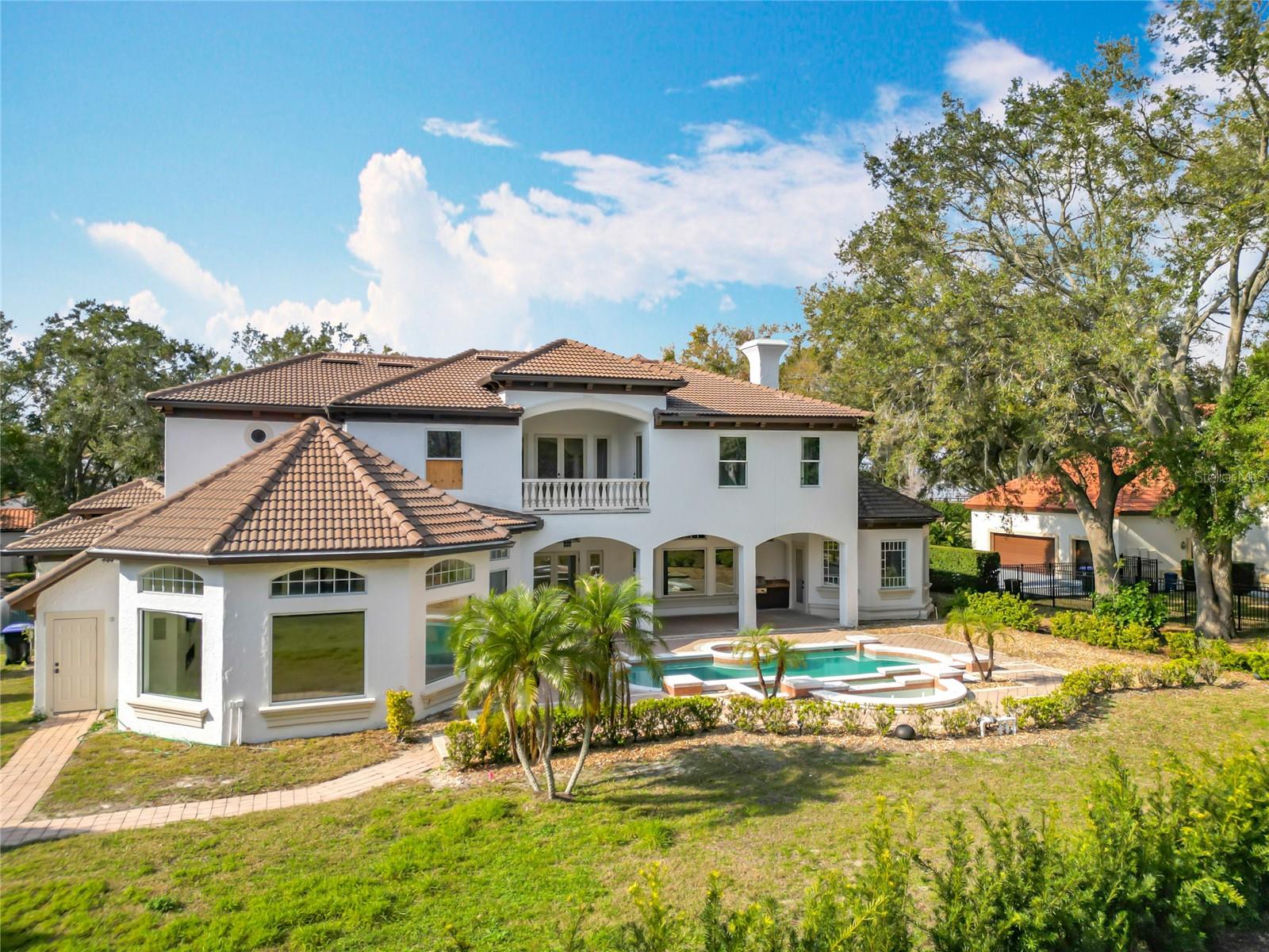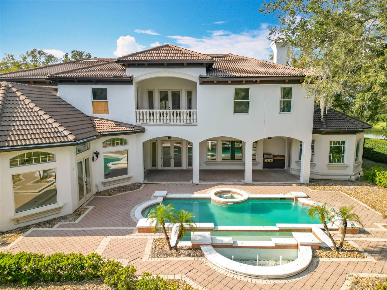 One or more photo(s) has been virtually staged. Nestled within the sought after Isleworth community, this exquisite Mediterranean-inspired golf-front villa offers an unparalleled blend of elegance and opportunity. Recently refreshed with a new roof and fresh paint inside and out, this home is poised for a discerning buyer to complete its vision of luxury and priced accordingly. Grand wooden doors welcome you into a breathtaking two-story living room adorned with a stately fireplace, setting the tone for refined living. The magnificent two-story study, wrapped in rich wood paneling and accessed via an intricate wrought iron staircase, exudes sophistication. Throughout the first floor, travertine flooring enhances the seamless, opulent design. Plenty of bedrooms in this home where the first floor has an expansive primary suite, featuring a lavish spa-like bathroom and a generously sized custom closet. You can ascend the grand staircase to the second-floor loft and entertainment space, where three en-suite bedrooms offer both comfort and privacy. For the culinary enthusiast, the kitchen presents an opportunity to craft a gourmet masterpiece, complemented by a butler’s pantry and/or bar area, ideal for the wine connoisseur. Towering ceilings amplify the home's sense of grandeur and light, creating an inviting yet majestic ambiance. Additional bedroom near the laundry room allows for the completion of another bath, adding to the home’s versatility. Priced to sell, this exceptional residence awaits its next owner to infuse it with their personal touch and elevate it to its full luxurious potential to complement the lush surroundings of this gated, golf course community.