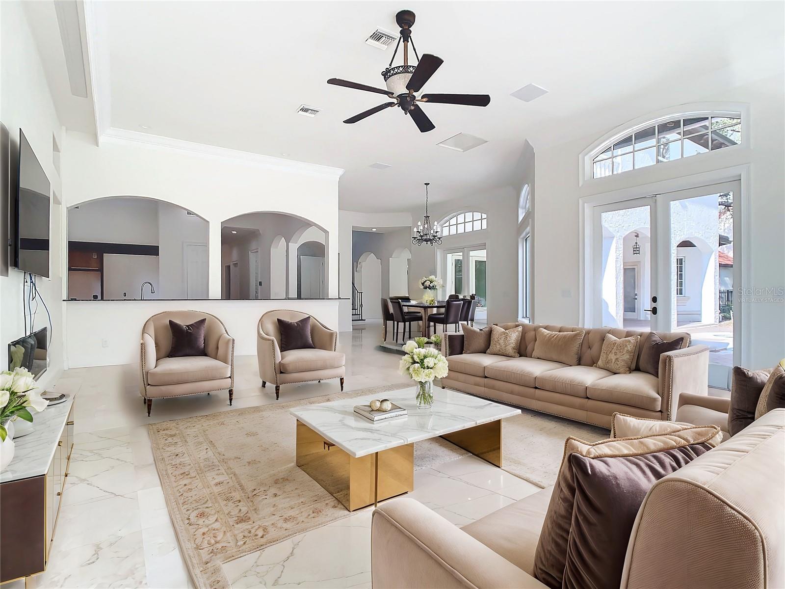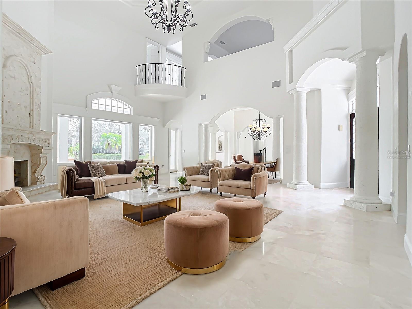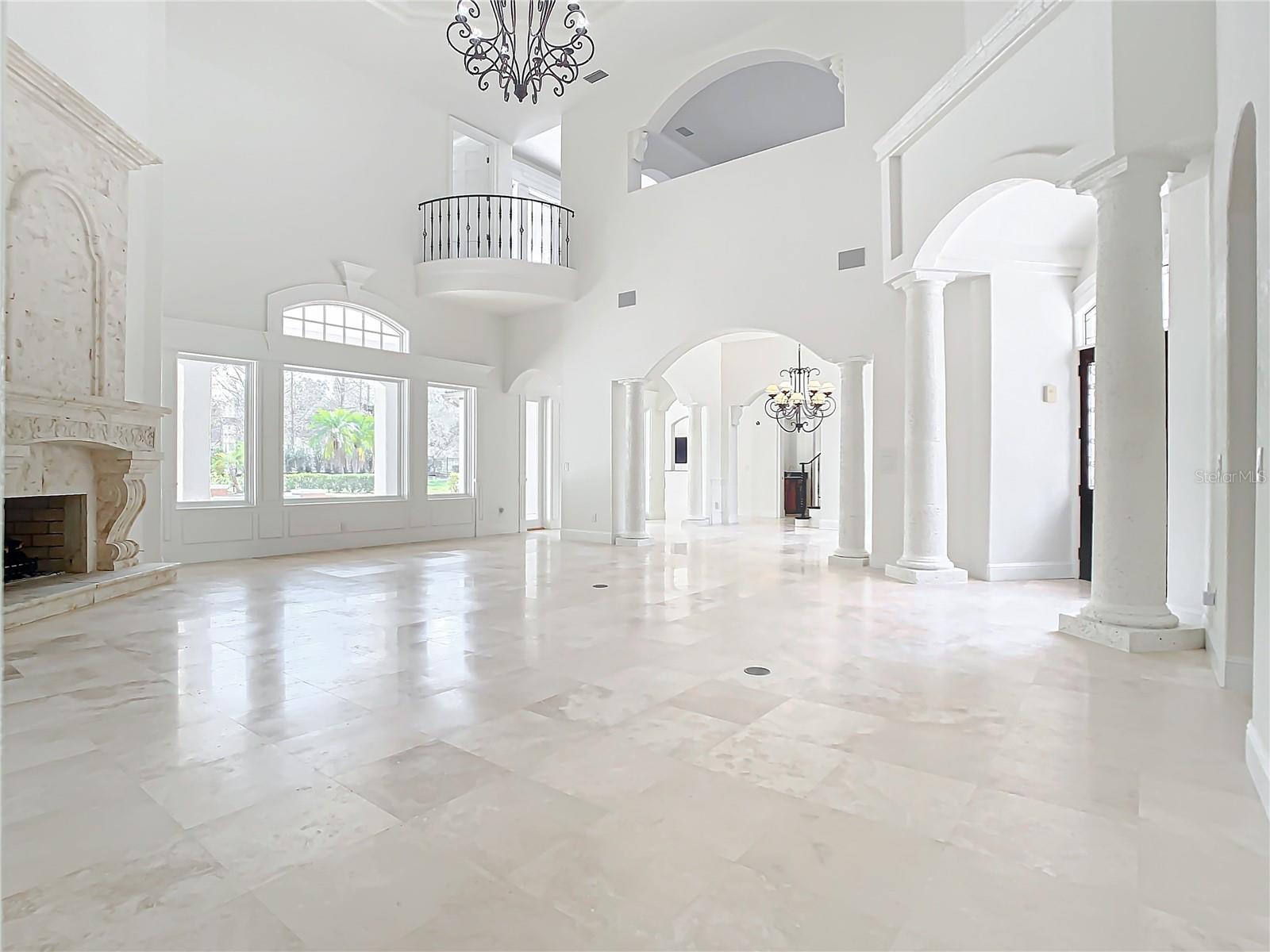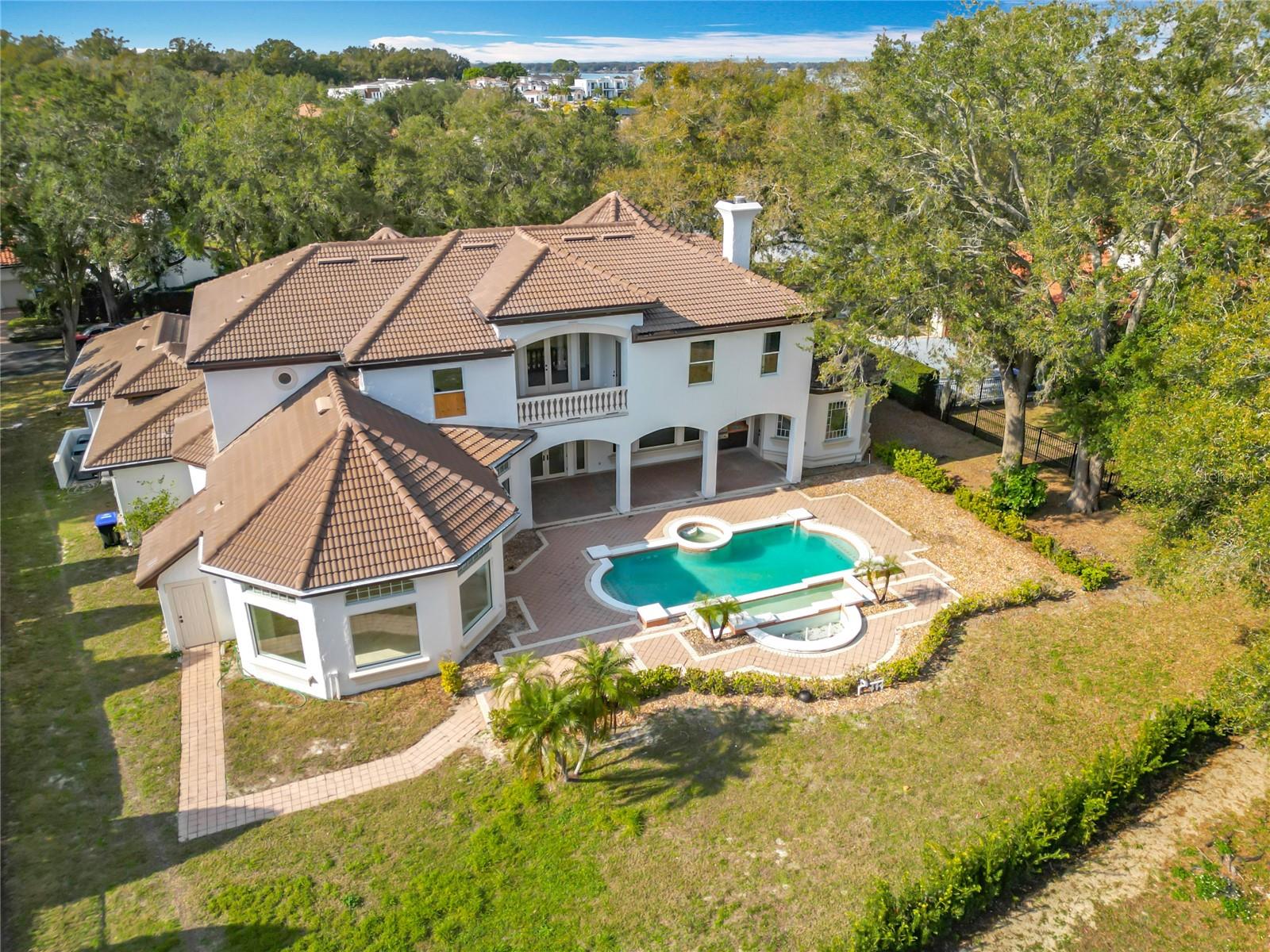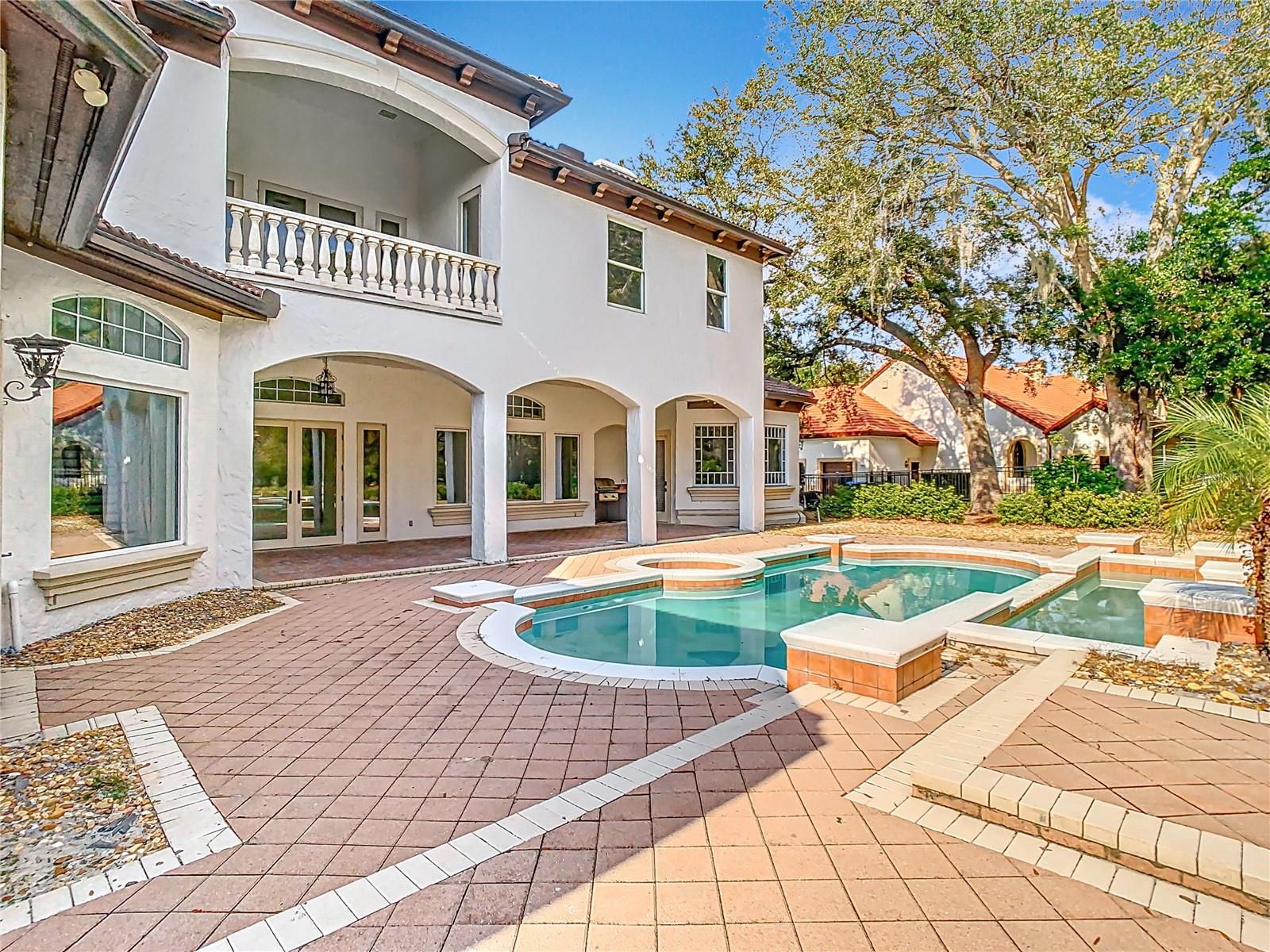 One or more photo(s) has been virtually staged. Nestled within the sought after Isleworth community, this exquisite Mediterranean-inspired golf-front villa offers an unparalleled blend of elegance and opportunity. Recently refreshed with a new roof and fresh paint inside and out, this home is poised for a discerning buyer to complete its vision of luxury and priced accordingly. Grand wooden doors welcome you into a breathtaking two-story living room adorned with a stately fireplace, setting the tone for refined living. The magnificent two-story study, wrapped in rich wood paneling and accessed via an intricate wrought iron staircase, exudes sophistication. Throughout the first floor, travertine flooring enhances the seamless, opulent design. Plenty of bedrooms in this home where the first floor has an expansive primary suite, featuring a lavish spa-like bathroom and a generously sized custom closet. You can ascend the grand staircase to the second-floor loft and entertainment space, where three en-suite bedrooms offer both comfort and privacy. For the culinary enthusiast, the kitchen presents an opportunity to craft a gourmet masterpiece, complemented by a butler’s pantry and/or bar area, ideal for the wine connoisseur. Towering ceilings amplify the home's sense of grandeur and light, creating an inviting yet majestic ambiance. Additional bedroom near the laundry room allows for the completion of another bath, adding to the home’s versatility. Priced to sell, this exceptional residence awaits its next owner to infuse it with their personal touch and elevate it to its full luxurious potential to complement the lush surroundings of this gated, golf course community.