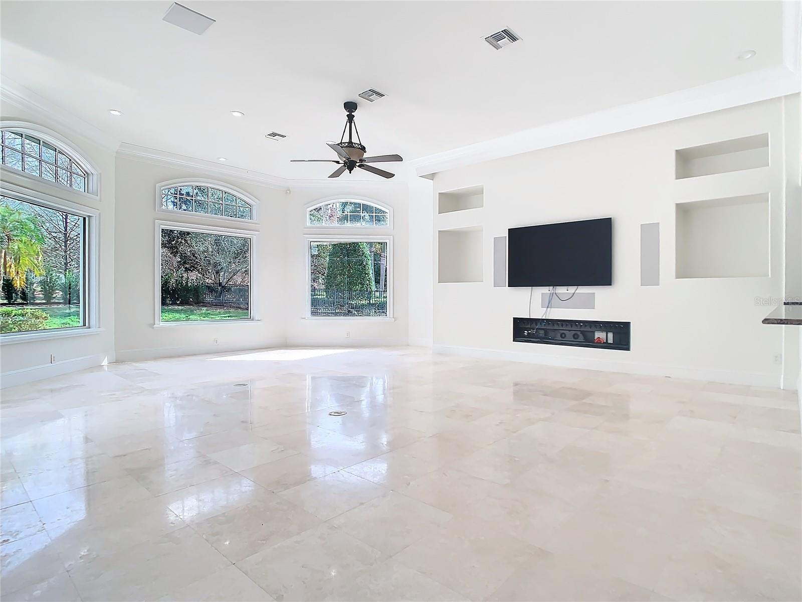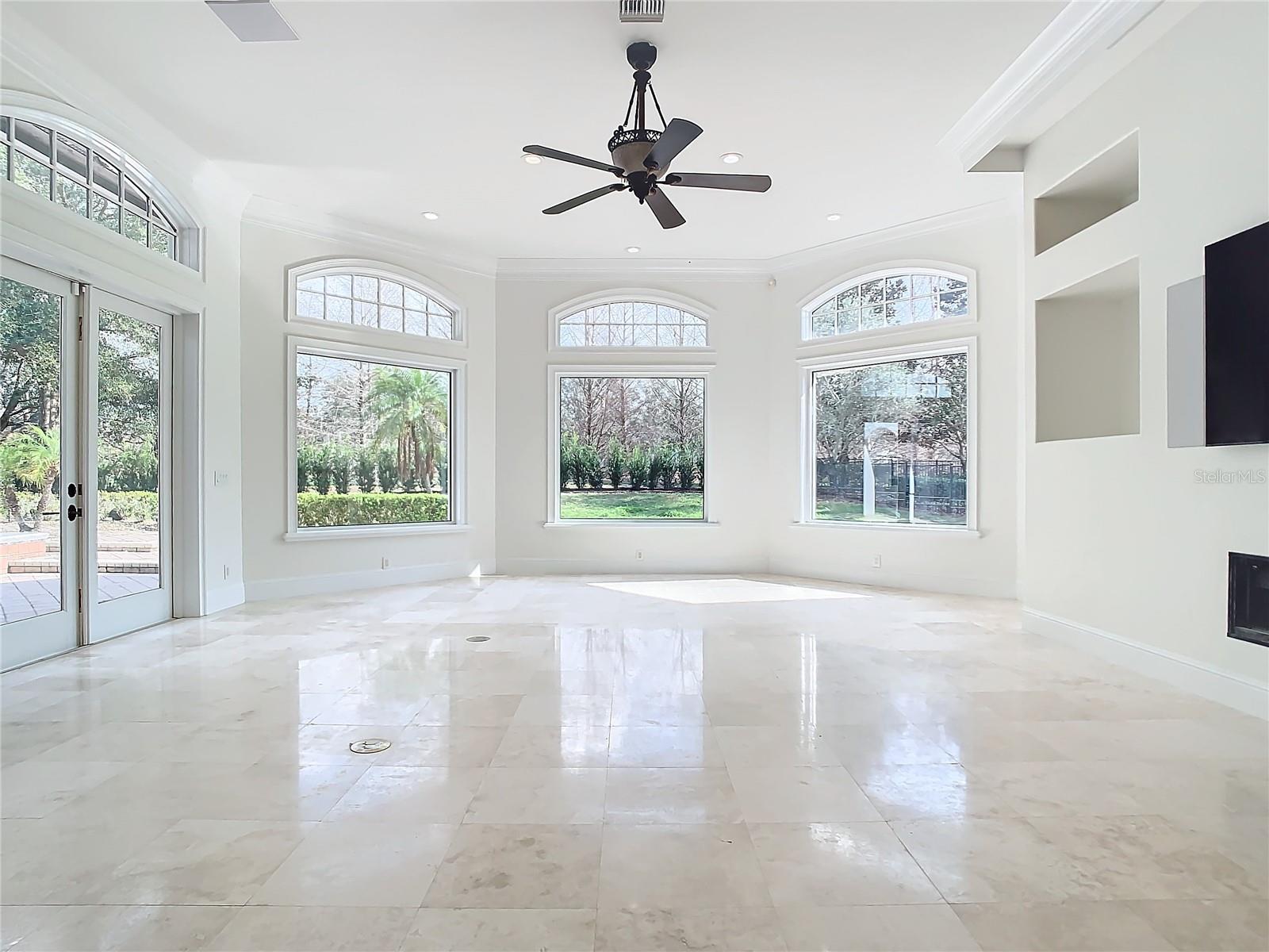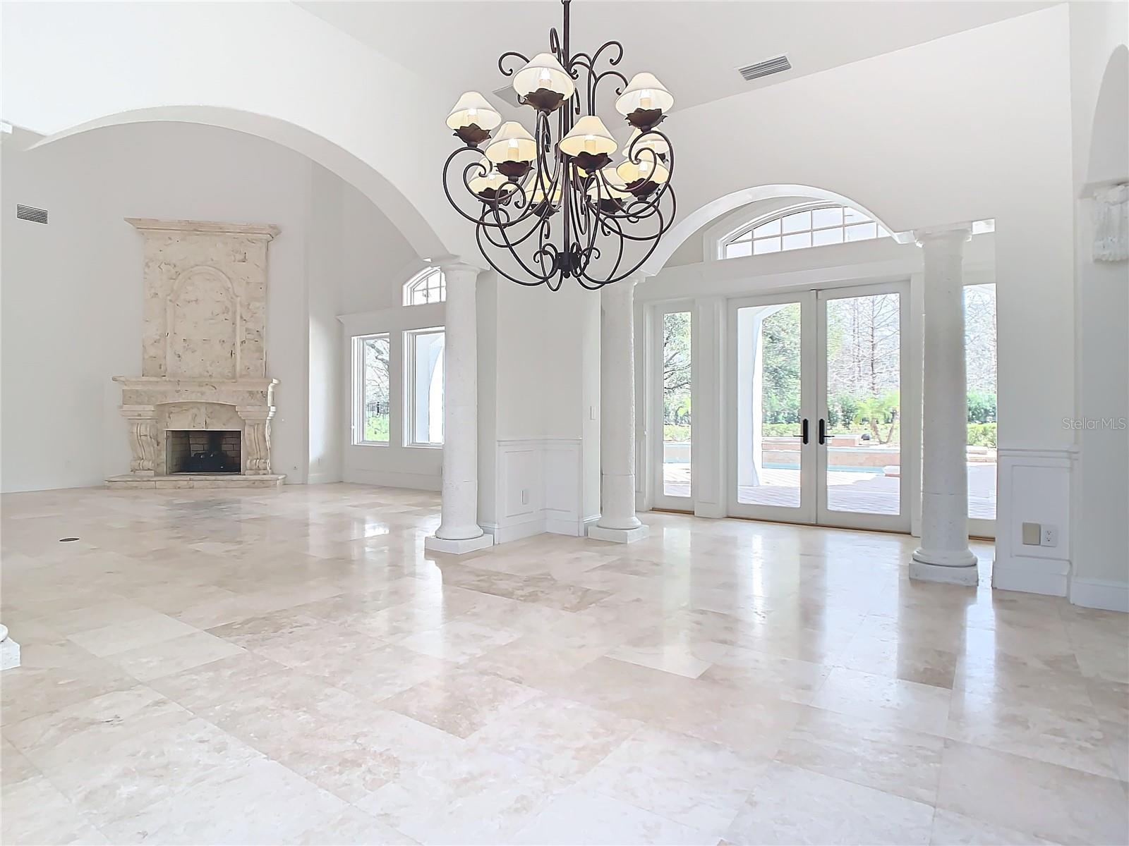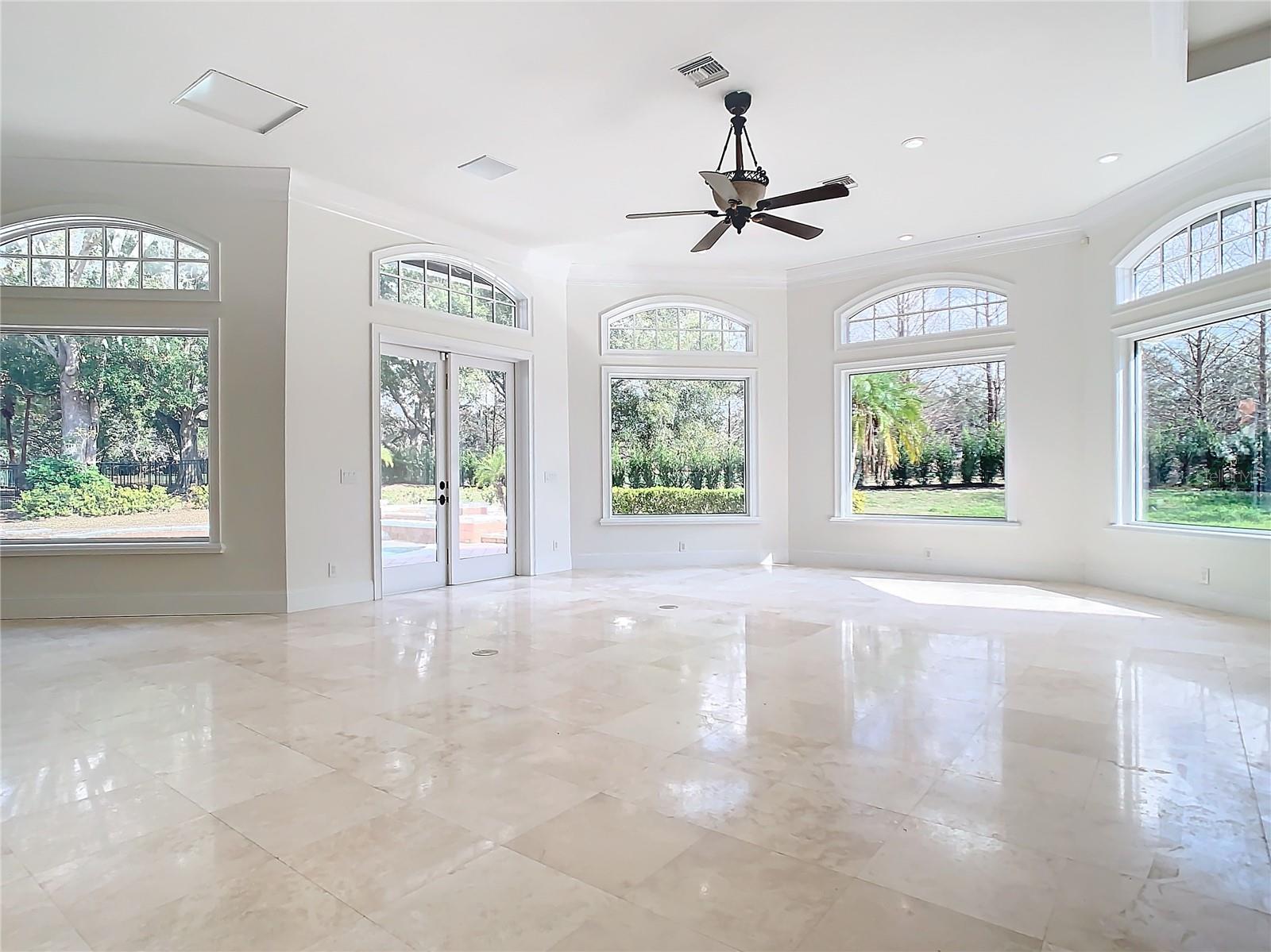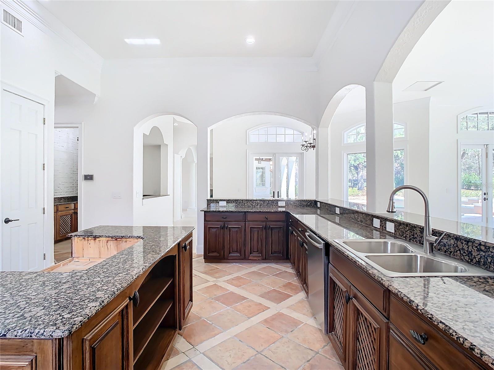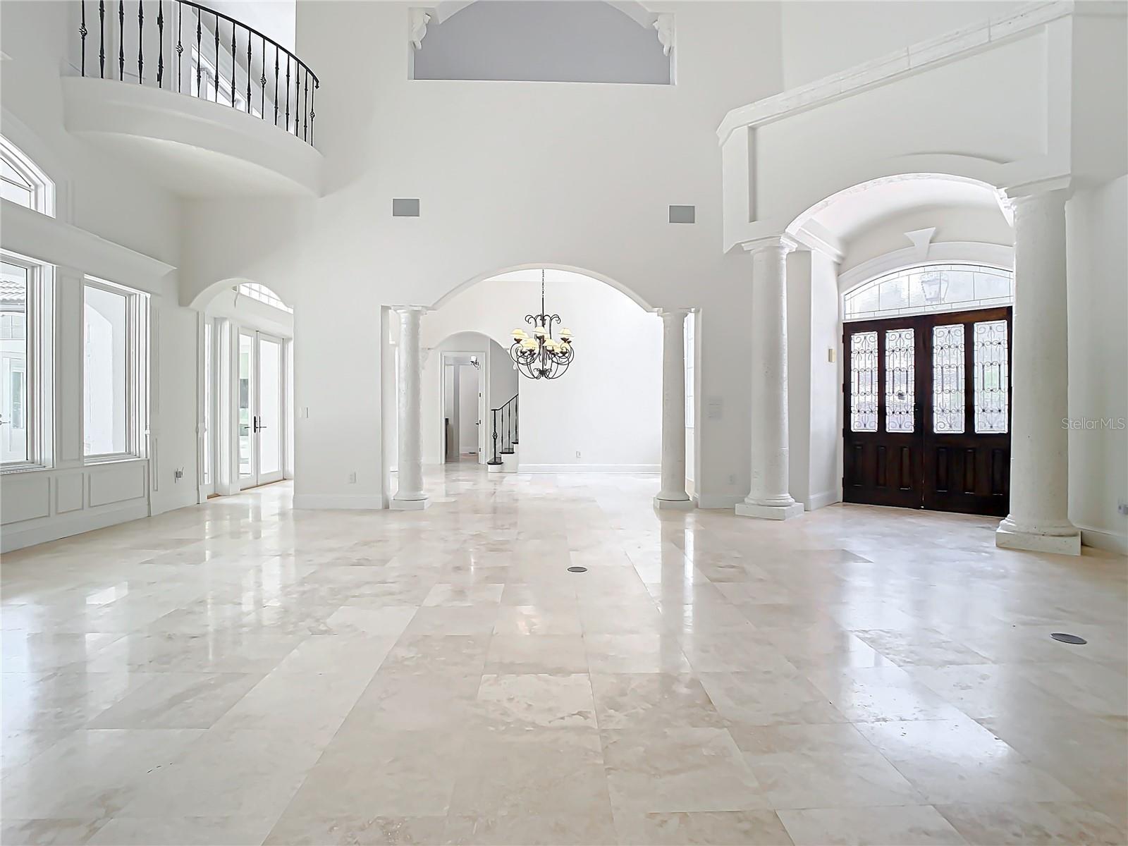 One or more photo(s) has been virtually staged. Nestled within the sought after Isleworth community, this exquisite Mediterranean-inspired golf-front villa offers an unparalleled blend of elegance and opportunity. Recently refreshed with a new roof and fresh paint inside and out, this home is poised for a discerning buyer to complete its vision of luxury and priced accordingly. Grand wooden doors welcome you into a breathtaking two-story living room adorned with a stately fireplace, setting the tone for refined living. The magnificent two-story study, wrapped in rich wood paneling and accessed via an intricate wrought iron staircase, exudes sophistication. Throughout the first floor, travertine flooring enhances the seamless, opulent design. Plenty of bedrooms in this home where the first floor has an expansive primary suite, featuring a lavish spa-like bathroom and a generously sized custom closet. You can ascend the grand staircase to the second-floor loft and entertainment space, where three en-suite bedrooms offer both comfort and privacy. For the culinary enthusiast, the kitchen presents an opportunity to craft a gourmet masterpiece, complemented by a butler’s pantry and/or bar area, ideal for the wine connoisseur. Towering ceilings amplify the home's sense of grandeur and light, creating an inviting yet majestic ambiance. Additional bedroom near the laundry room allows for the completion of another bath, adding to the home’s versatility. Priced to sell, this exceptional residence awaits its next owner to infuse it with their personal touch and elevate it to its full luxurious potential to complement the lush surroundings of this gated, golf course community.