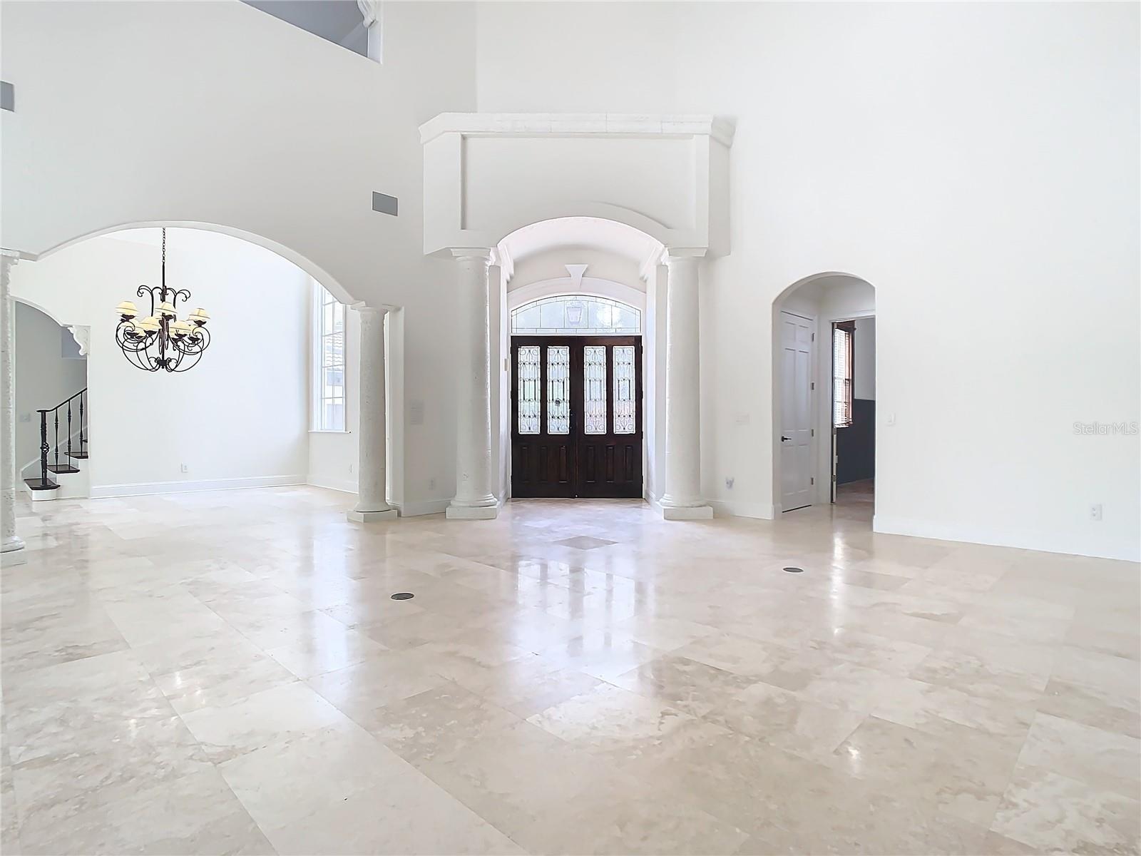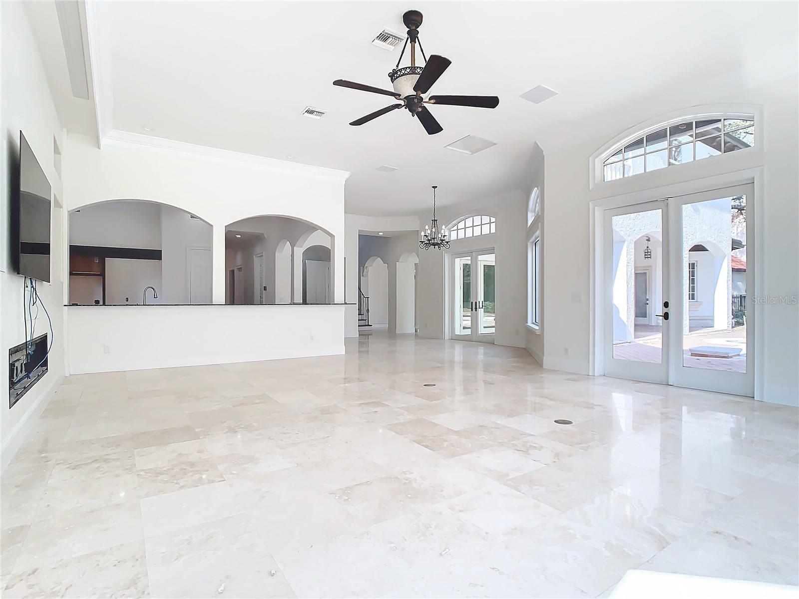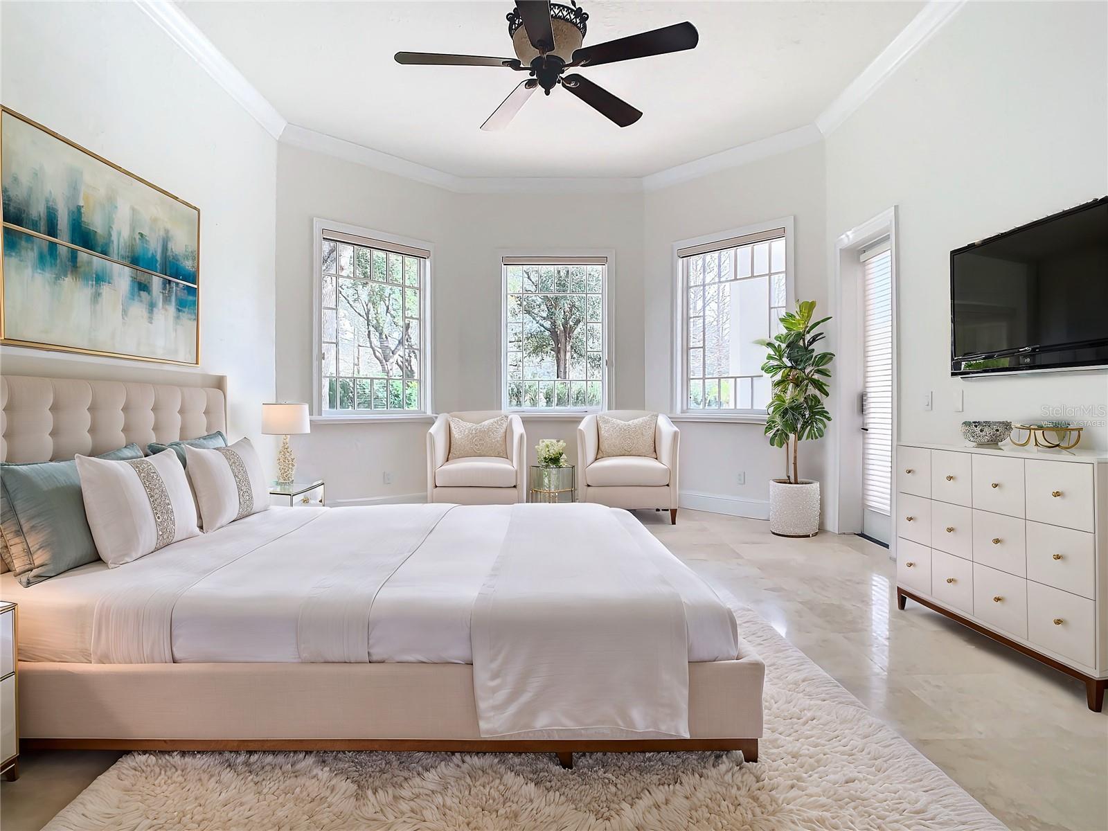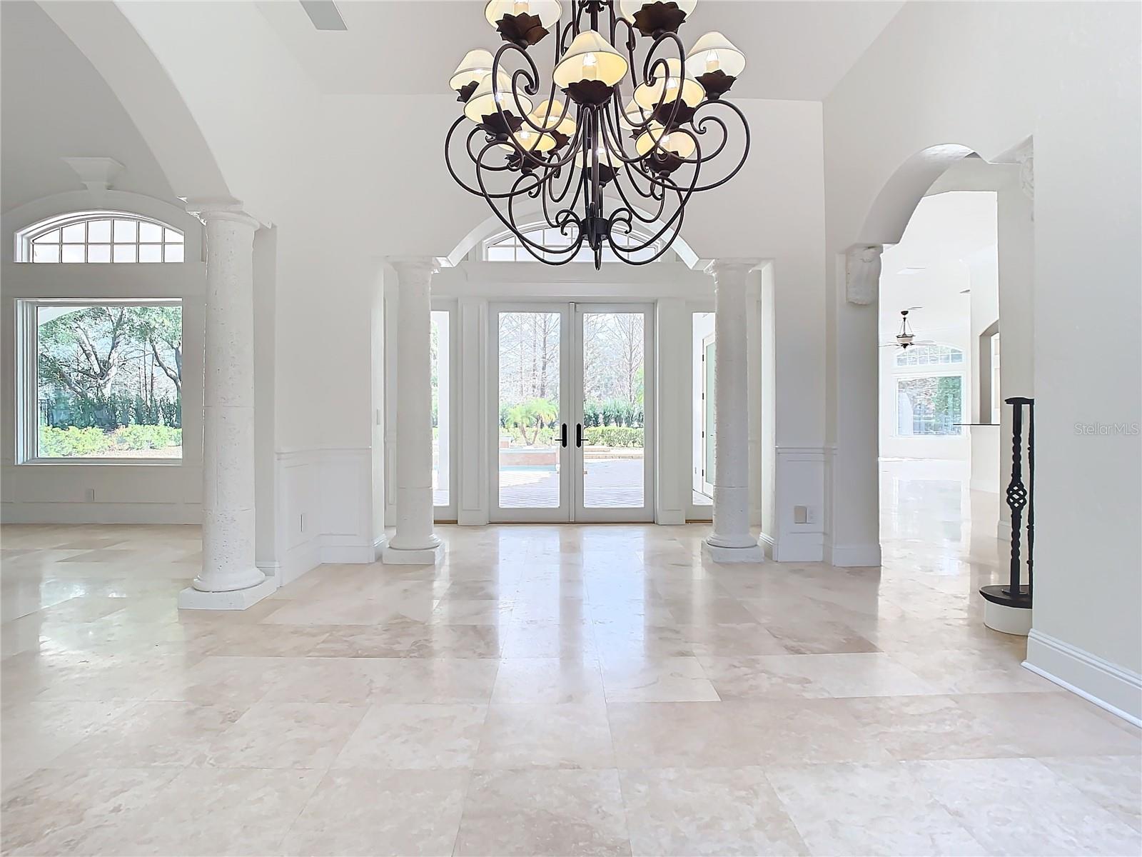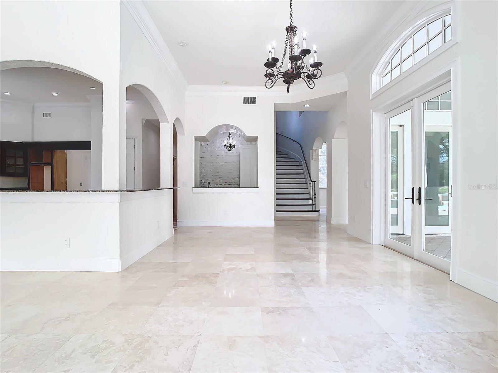 One or more photo(s) has been virtually staged. Nestled within the sought after Isleworth community, this exquisite Mediterranean-inspired golf-front villa offers an unparalleled blend of elegance and opportunity. Recently refreshed with a new roof and fresh paint inside and out, this home is poised for a discerning buyer to complete its vision of luxury and priced accordingly. Grand wooden doors welcome you into a breathtaking two-story living room adorned with a stately fireplace, setting the tone for refined living. The magnificent two-story study, wrapped in rich wood paneling and accessed via an intricate wrought iron staircase, exudes sophistication. Throughout the first floor, travertine flooring enhances the seamless, opulent design. Plenty of bedrooms in this home where the first floor has an expansive primary suite, featuring a lavish spa-like bathroom and a generously sized custom closet. You can ascend the grand staircase to the second-floor loft and entertainment space, where three en-suite bedrooms offer both comfort and privacy. For the culinary enthusiast, the kitchen presents an opportunity to craft a gourmet masterpiece, complemented by a butler’s pantry and/or bar area, ideal for the wine connoisseur. Towering ceilings amplify the home's sense of grandeur and light, creating an inviting yet majestic ambiance. Additional bedroom near the laundry room allows for the completion of another bath, adding to the home’s versatility. Priced to sell, this exceptional residence awaits its next owner to infuse it with their personal touch and elevate it to its full luxurious potential to complement the lush surroundings of this gated, golf course community.