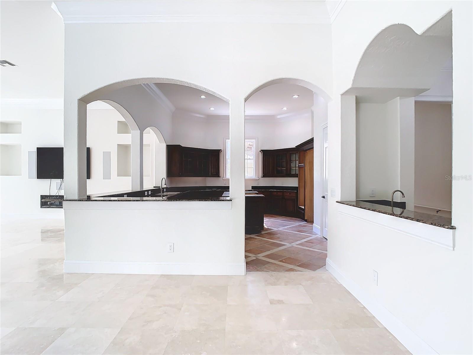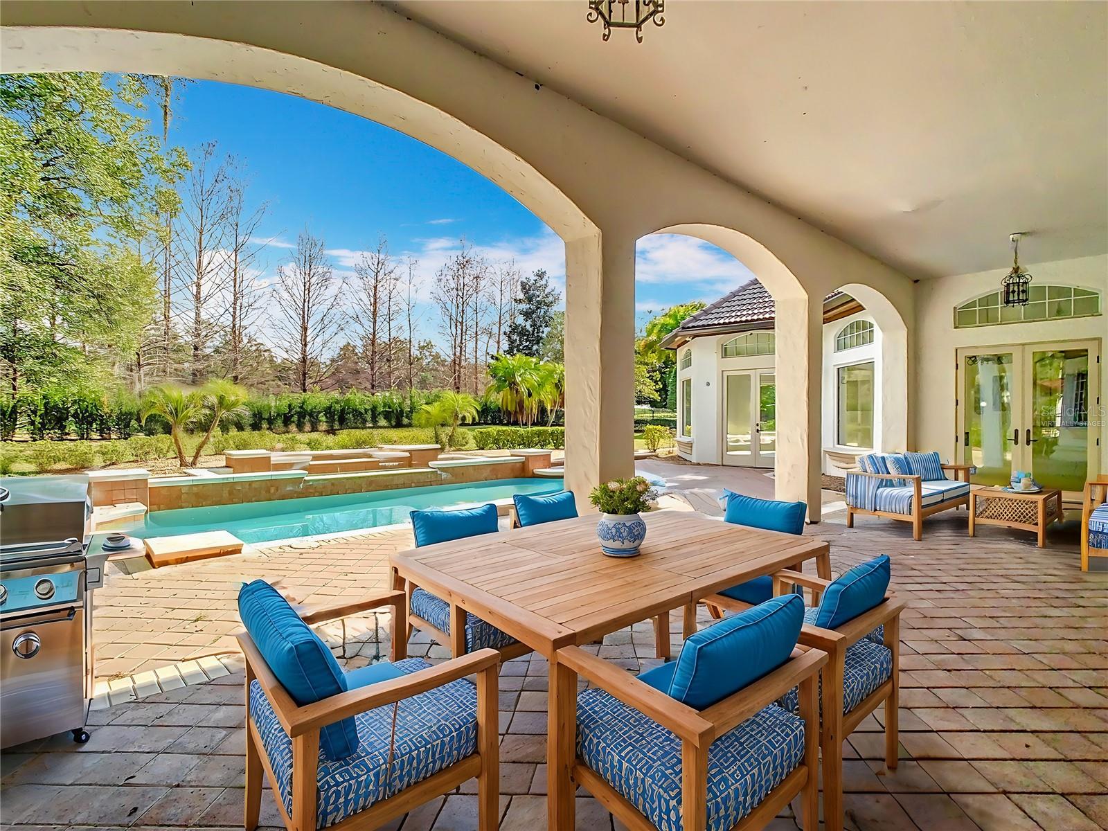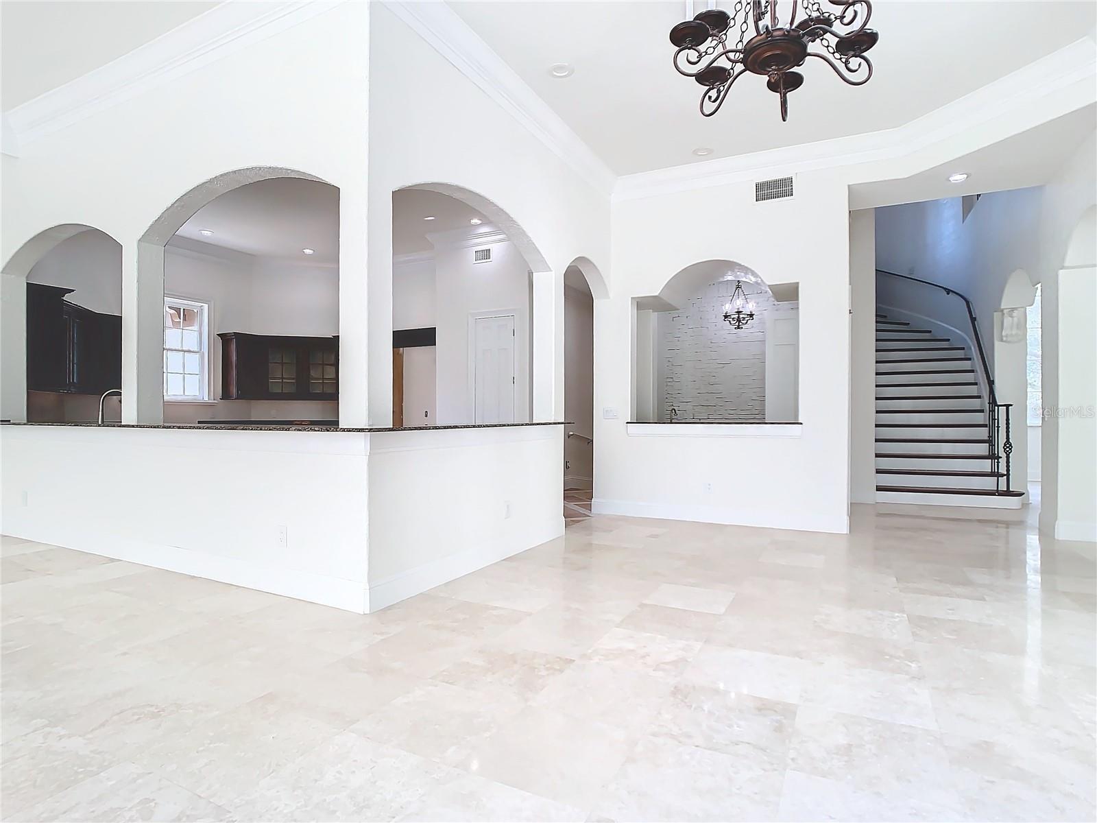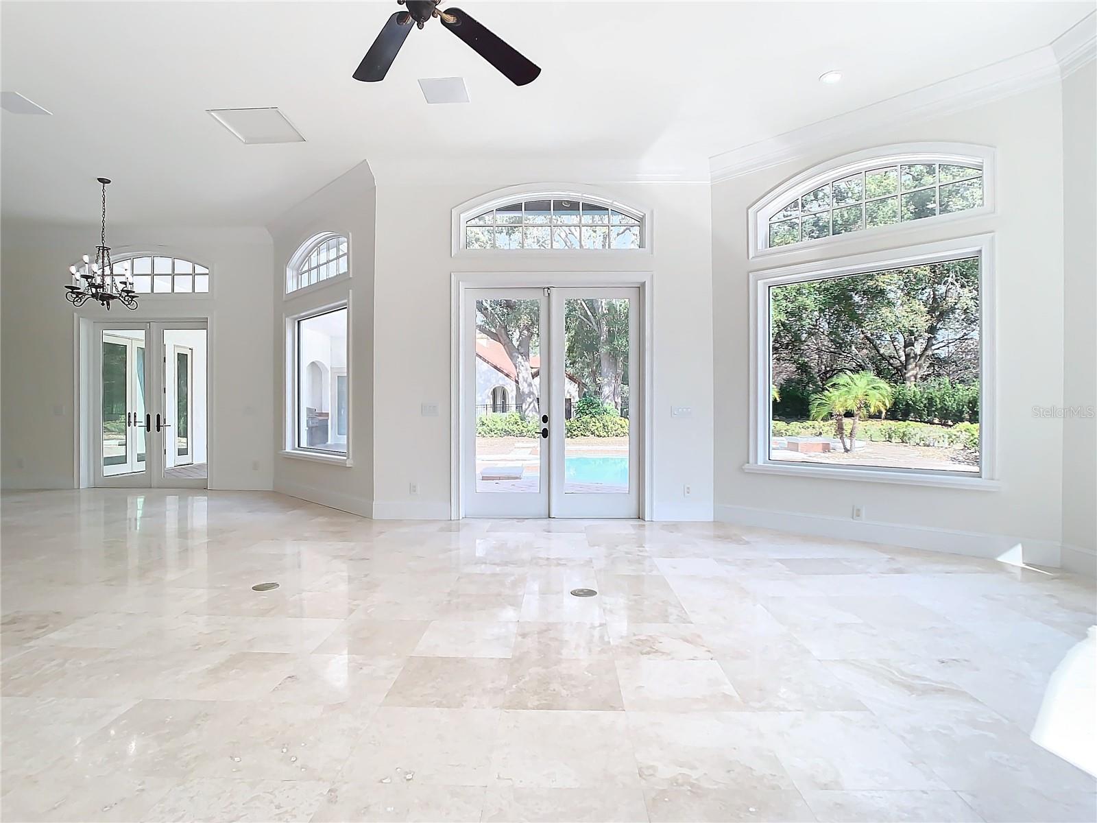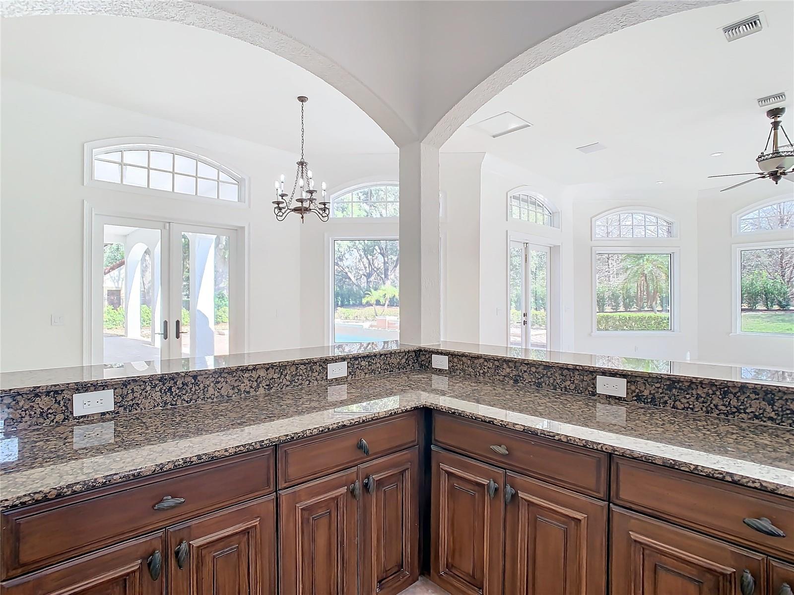 One or more photo(s) has been virtually staged. Nestled within the sought after Isleworth community, this exquisite Mediterranean-inspired golf-front villa offers an unparalleled blend of elegance and opportunity. Recently refreshed with a new roof and fresh paint inside and out, this home is poised for a discerning buyer to complete its vision of luxury and priced accordingly. Grand wooden doors welcome you into a breathtaking two-story living room adorned with a stately fireplace, setting the tone for refined living. The magnificent two-story study, wrapped in rich wood paneling and accessed via an intricate wrought iron staircase, exudes sophistication. Throughout the first floor, travertine flooring enhances the seamless, opulent design. Plenty of bedrooms in this home where the first floor has an expansive primary suite, featuring a lavish spa-like bathroom and a generously sized custom closet. You can ascend the grand staircase to the second-floor loft and entertainment space, where three en-suite bedrooms offer both comfort and privacy. For the culinary enthusiast, the kitchen presents an opportunity to craft a gourmet masterpiece, complemented by a butler’s pantry and/or bar area, ideal for the wine connoisseur. Towering ceilings amplify the home's sense of grandeur and light, creating an inviting yet majestic ambiance. Additional bedroom near the laundry room allows for the completion of another bath, adding to the home’s versatility. Priced to sell, this exceptional residence awaits its next owner to infuse it with their personal touch and elevate it to its full luxurious potential to complement the lush surroundings of this gated, golf course community.