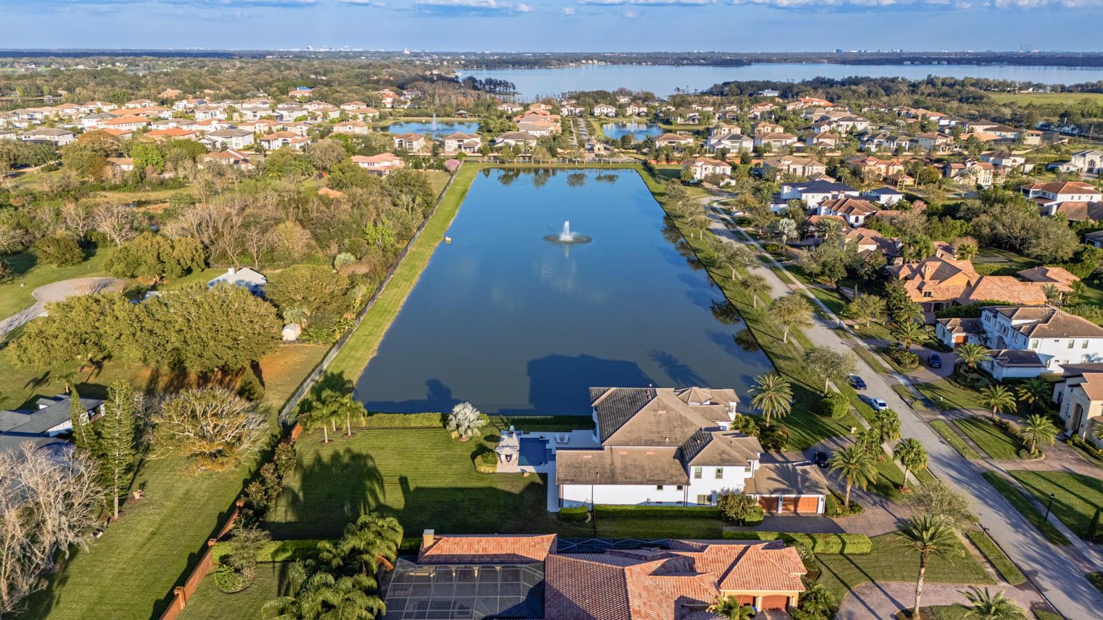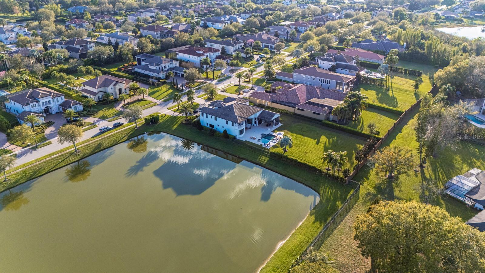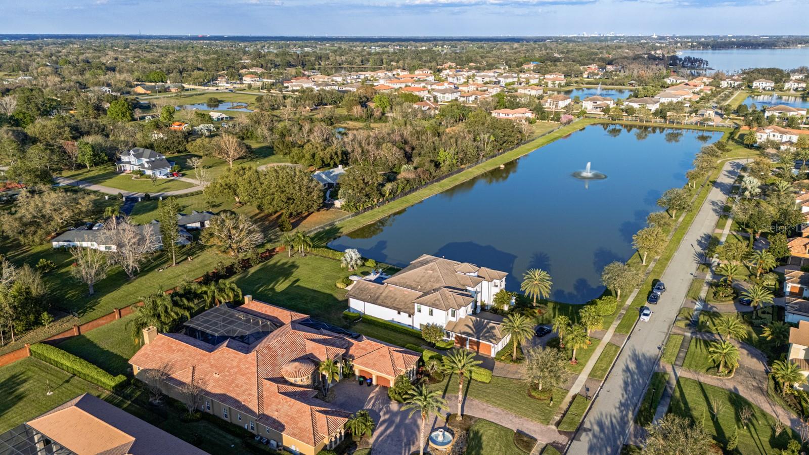 In the gated Bellaria community, featuring six expansive bedrooms, including two primary suites and four en suites, this residence is an ideal blend of privacy and convenience with a beautiful lake view. Enjoy your private cinema, this Toll Brothers estate blends luxury and comfort with dramatic ceilings, an open floor plan, and travertine marble flooring on main areas. The chef's kitchen features top-tier appliances, custom cabinetry, and an oversized island flowing into a spacious great room with a statement fireplace and abundant natural light. The resort-style lanai boasts a summer kitchen, covered seating and a sparkling pool surrounded by lush landscaping. The primary suite offers a spa-like bath with a soaking tub, oversized shower and dual vanities. Additional highlights include custom built-ins, high-end finishes, and a thoughtfully designed layout. Minutes from world-class golf, fine dining and luxury shopping. Schedule your private tour today!
