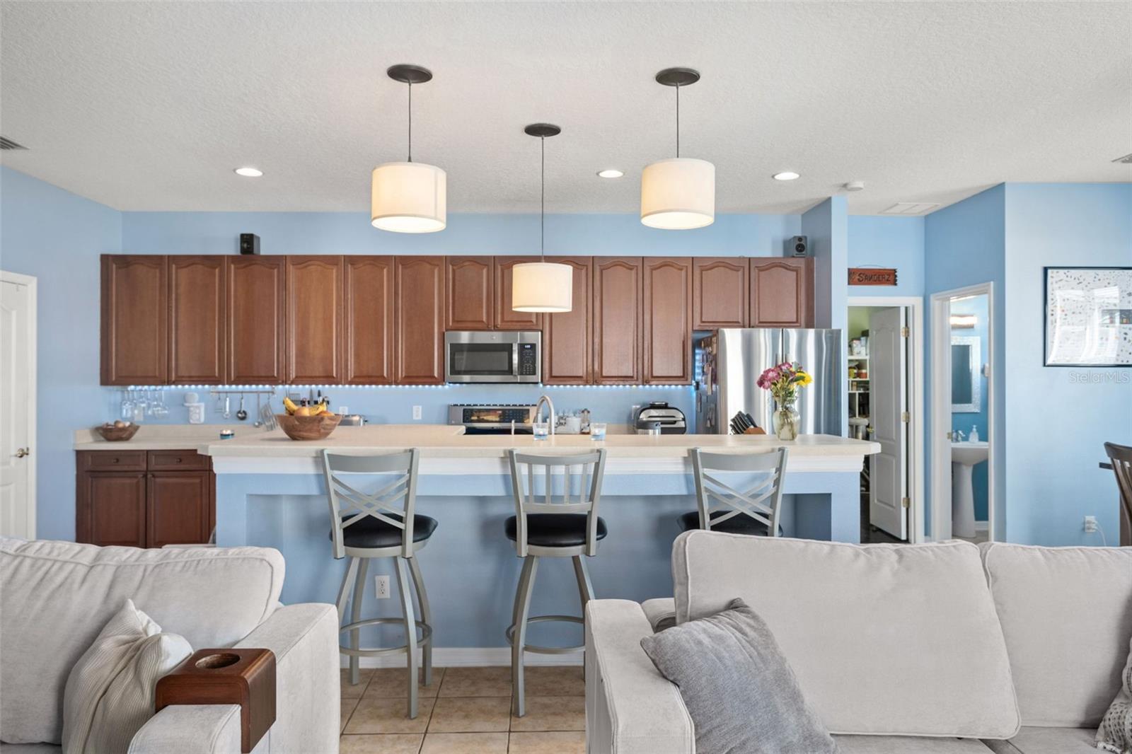 **This property qualifies for a closing cost credit up to $8,700 through the Seller’s preferred lender.**Welcome home to this beautiful 3-bedroom, 2.5-bathroom home located in the highly desirable community of Lakes of Windermere. The curb appeal will draw you in with vibrant landscaping up front and a charming front porch. At the front you’ll find the secondary bedrooms with a full bathroom in the hallway. Continue into the home to find the formal dining room with the oversized windows drawing in the natural light. The custom built in wine rack creates the perfect entertainment space for dinner parties year-round. At the back of the home is the open concept kitchen, living room, and dinette. The kitchen features breakfast bar seating, stainless steel appliances, with plenty of storage throughout the cabinetry. The living room features wainscotting with views directly out back. The primary bedroom tucked up on the left side of the home is a spacious room with an ensuite offering a double sink vanity, soaking tub, and separate stand-up shower with a walk-in closet. To top this home off, at the back by the dinette you’ll find a bonus room that is perfect for an at home office space with a half bath as well. Step out back to your screened porch overlooking your backyard with no rear neighbors! During the day you can see the brand new community park, and at night you can see Magic Kingdom fireworks! The community offers tennis courts, a playground, and a community pool, and is conveniently located near theme parks, shopping centers, restaurants, and major highways. Schedule your private showing today!